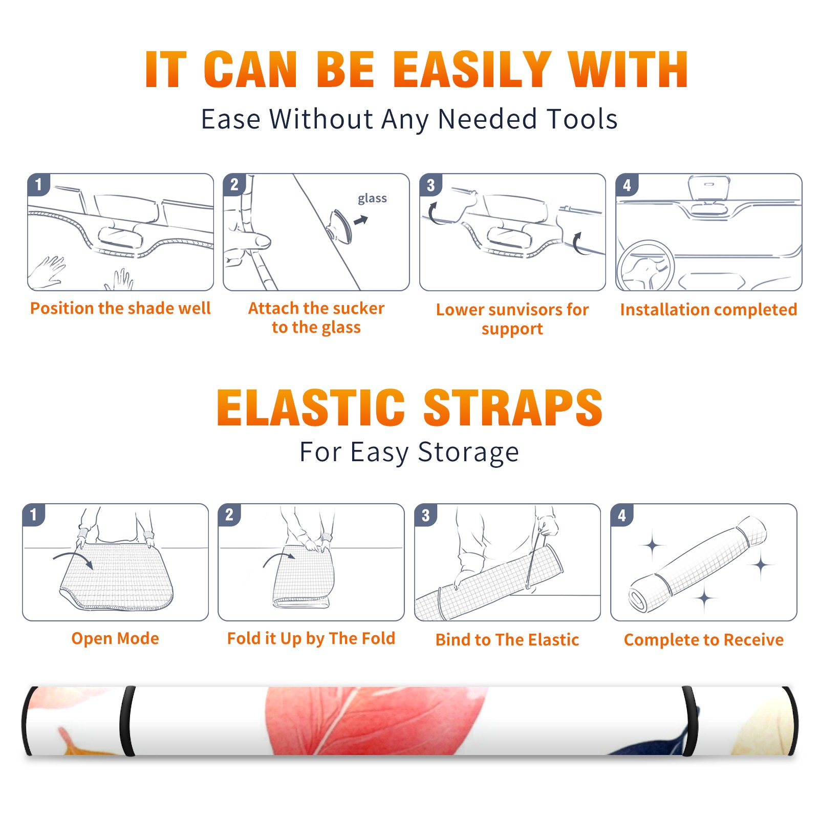 • <p><b>Foldable Premium Car Windshield Sunshade is your great solution to reduce your car’s interior temperature dramatically! This is definitely a must-have item for your summer travel!</b></p><p><b>【Precision Fit, Stylish Protection】</b></p><p>55"x30" (140x76cm) universal size with 3cm flexible margins fits curved windshields of most sedans/SUVs.</p><p><b>【Blocking Uv Rays &amp; Heat Insulation】</b></p><p>Our vehicle sunshade provides effective UV, sun, and summer heat protection, preventing leather fading and plastic cracking to keep your car interior pristine.</p><p><b>【Zero-Mark Installation &amp; Space-Saving】</b></p><p>Equipped with dual scratch-free silicone suction cups + adjustable straps: Medical-grade silicone cups hold firmly yet remove cleanly. Folds to A3 size (42x30cm x &lt;2cm thick), tucks discreetly into glove compartments or door pockets.&nbsp;</p>