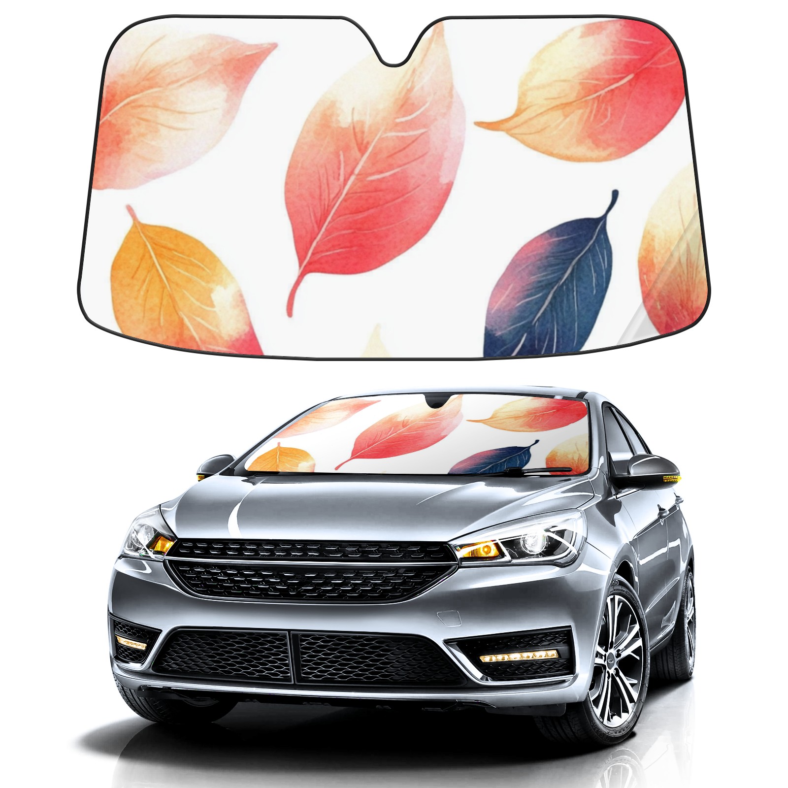 Leaves4 Car Sun Shade UV Protection Foldable Sunshade for Windshield Heat Insulation Portable Sun Shield for Car Interior Protection Automotive Window Protector