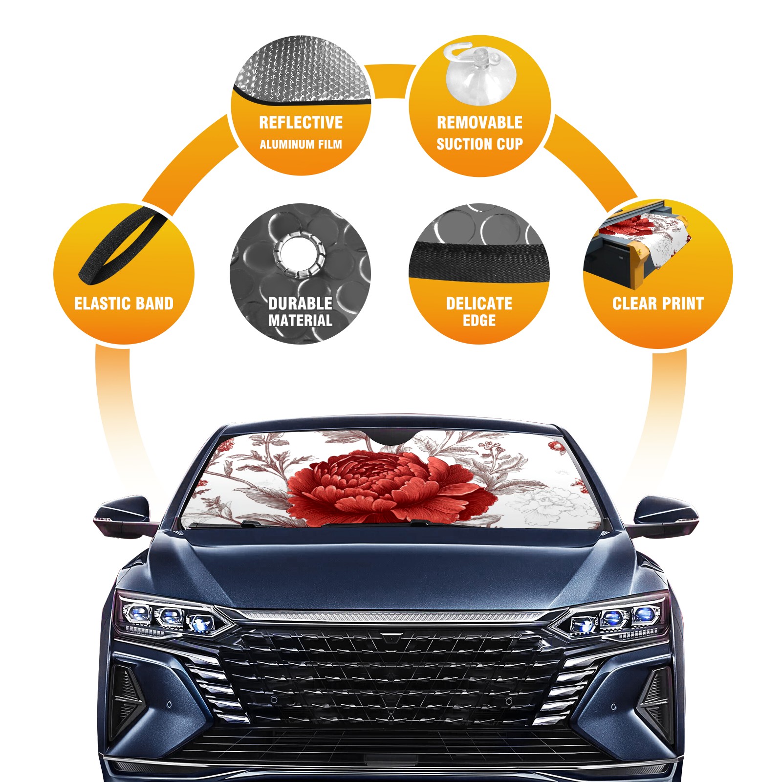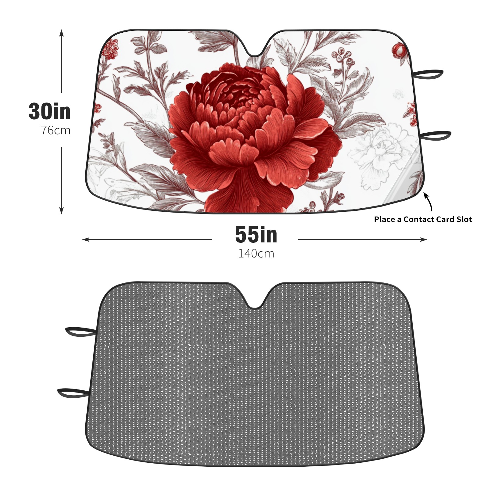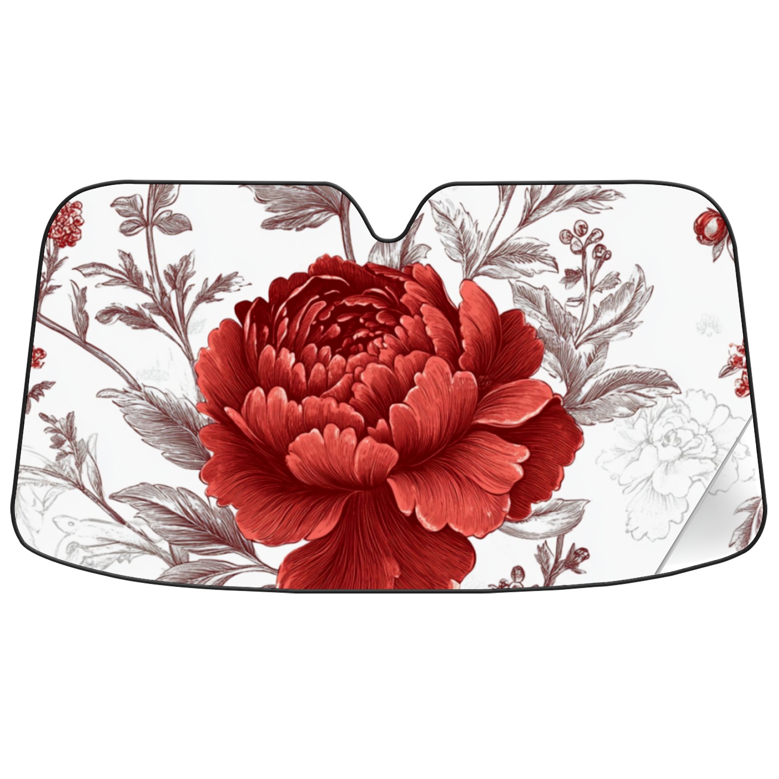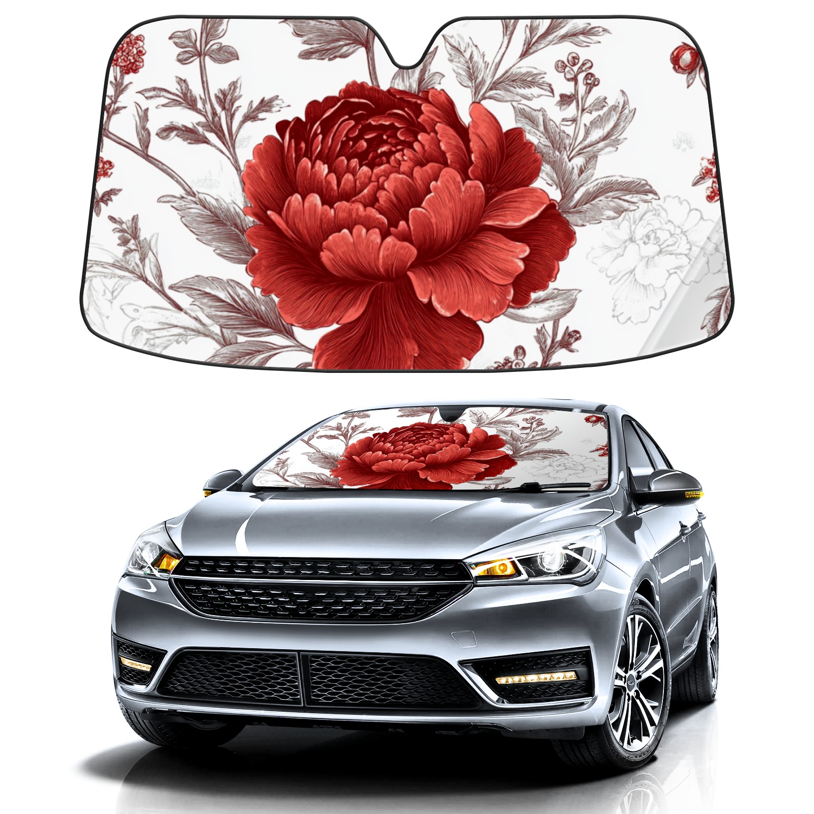 Red Flower Car Sun Shade UV Protection Foldable Sunshade for Windshield Heat Insulation Portable Sun Shield for Car Interior Protection Automotive Window Protector