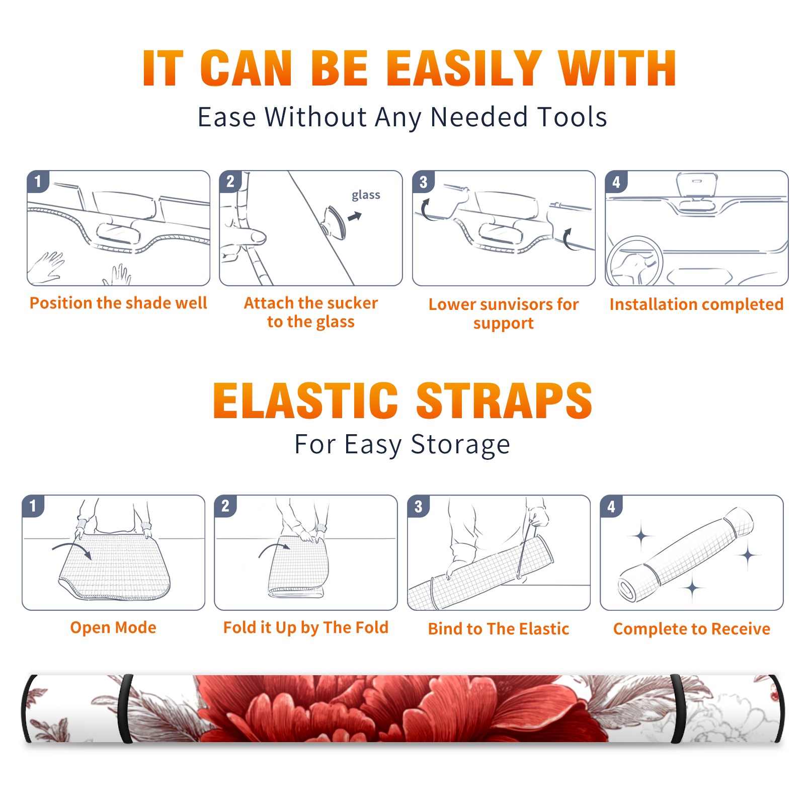• <p><b>Foldable Premium Car Windshield Sunshade is your great solution to reduce your car’s interior temperature dramatically! This is definitely a must-have item for your summer travel!</b></p><p><b>【Precision Fit, Stylish Protection】</b></p><p>55"x30" (140x76cm) universal size with 3cm flexible margins fits curved windshields of most sedans/SUVs.</p><p><b>【Blocking Uv Rays &amp; Heat Insulation】</b></p><p>Our vehicle sunshade provides effective UV, sun, and summer heat protection, preventing leather fading and plastic cracking to keep your car interior pristine.</p><p><b>【Zero-Mark Installation &amp; Space-Saving】</b></p><p>Equipped with dual scratch-free silicone suction cups + adjustable straps: Medical-grade silicone cups hold firmly yet remove cleanly. Folds to A3 size (42x30cm x &lt;2cm thick), tucks discreetly into glove compartments or door pockets.&nbsp;</p>