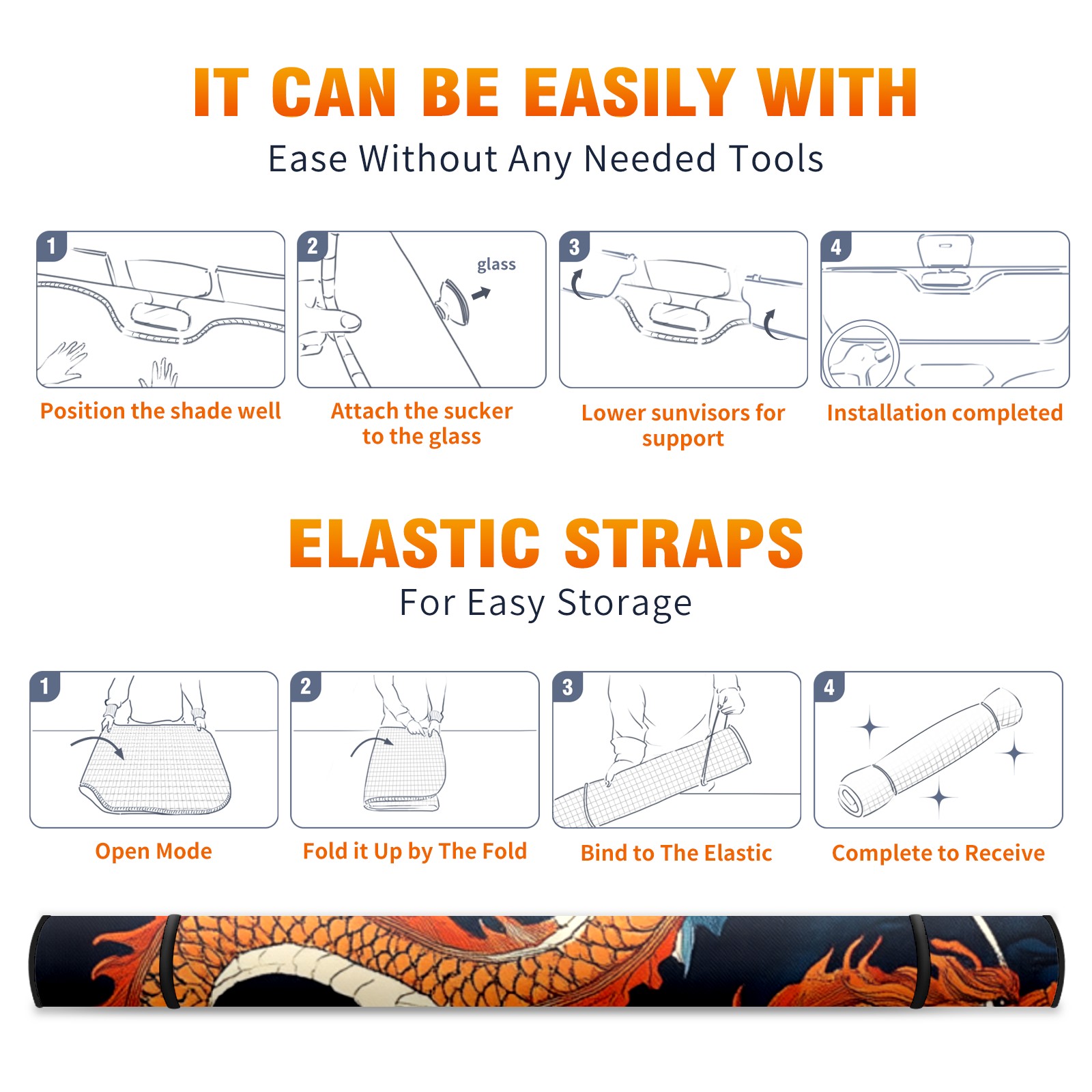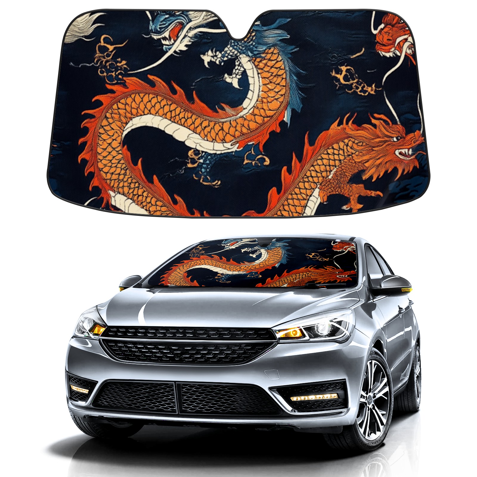 Dragons Car Sun Shade UV Protection Foldable Sunshade for Windshield Heat Insulation Portable Sun Shield for Car Interior Protection Automotive Window Protector