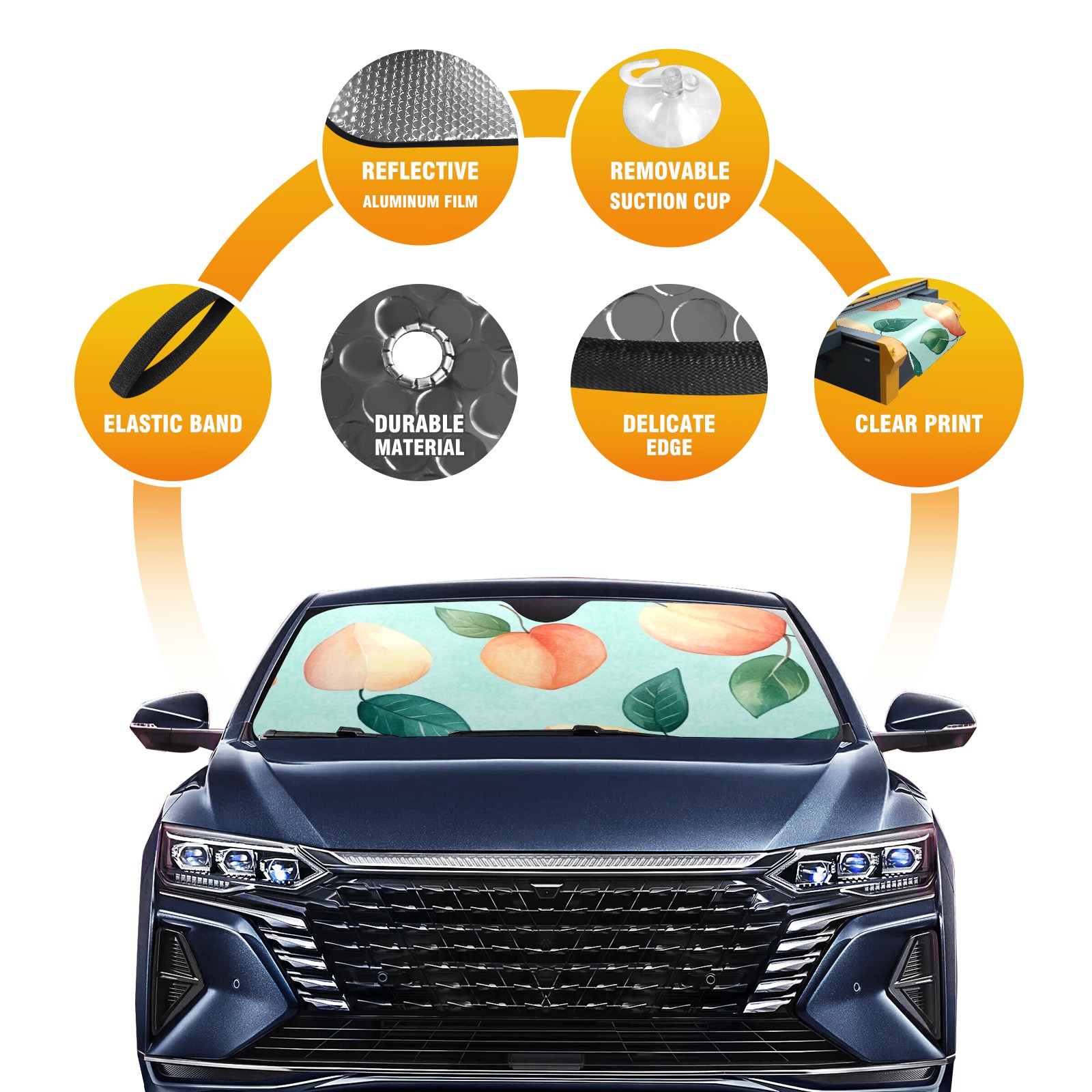 Peach Car Sun Shade UV Protection Foldable Sunshade for Windshield Heat Insulation Portable Sun Shield for Car Interior Protection Automotive Window Protector