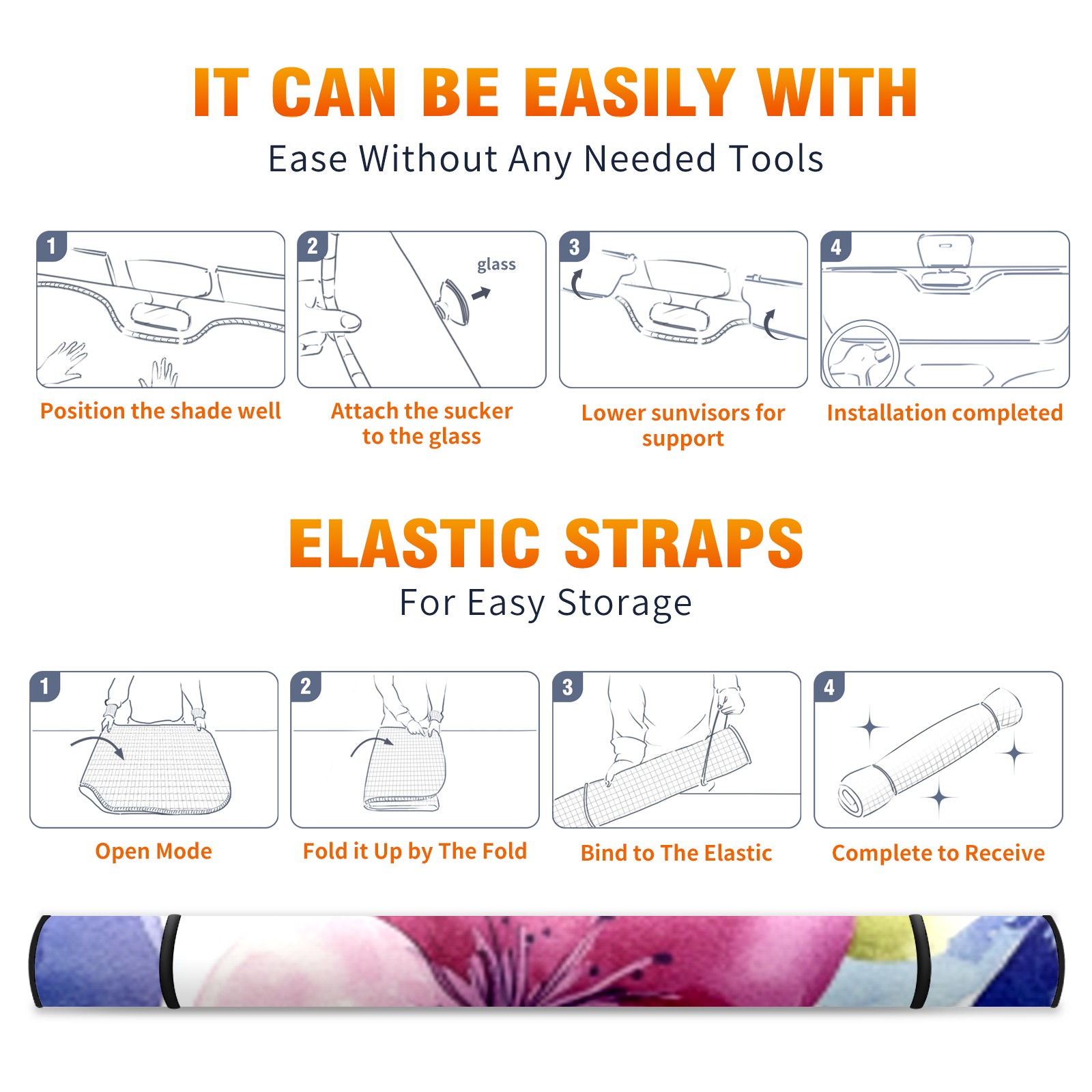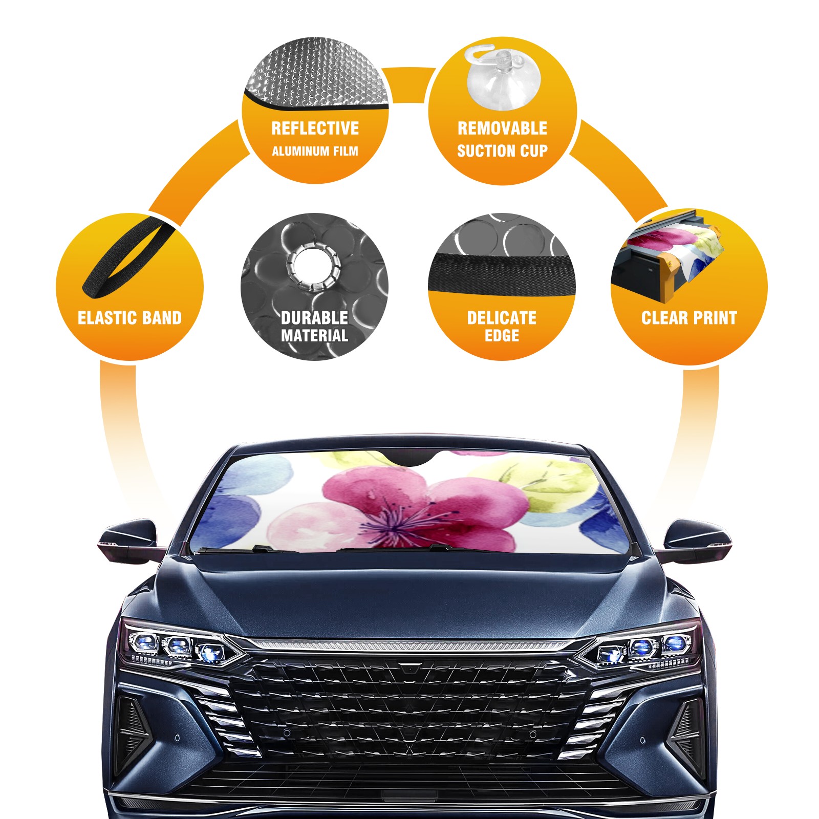 • <p><b>Foldable Premium Car Windshield Sunshade is your great solution to reduce your car’s interior temperature dramatically! This is definitely a must-have item for your summer travel!</b></p><p><b>【Precision Fit, Stylish Protection】</b></p><p>55"x30" (140x76cm) universal size with 3cm flexible margins fits curved windshields of most sedans/SUVs.</p><p><b>【Blocking Uv Rays &amp; Heat Insulation】</b></p><p>Our vehicle sunshade provides effective UV, sun, and summer heat protection, preventing leather fading and plastic cracking to keep your car interior pristine.</p><p><b>【Zero-Mark Installation &amp; Space-Saving】</b></p><p>Equipped with dual scratch-free silicone suction cups + adjustable straps: Medical-grade silicone cups hold firmly yet remove cleanly. Folds to A3 size (42x30cm x &lt;2cm thick), tucks discreetly into glove compartments or door pockets.&nbsp;</p>