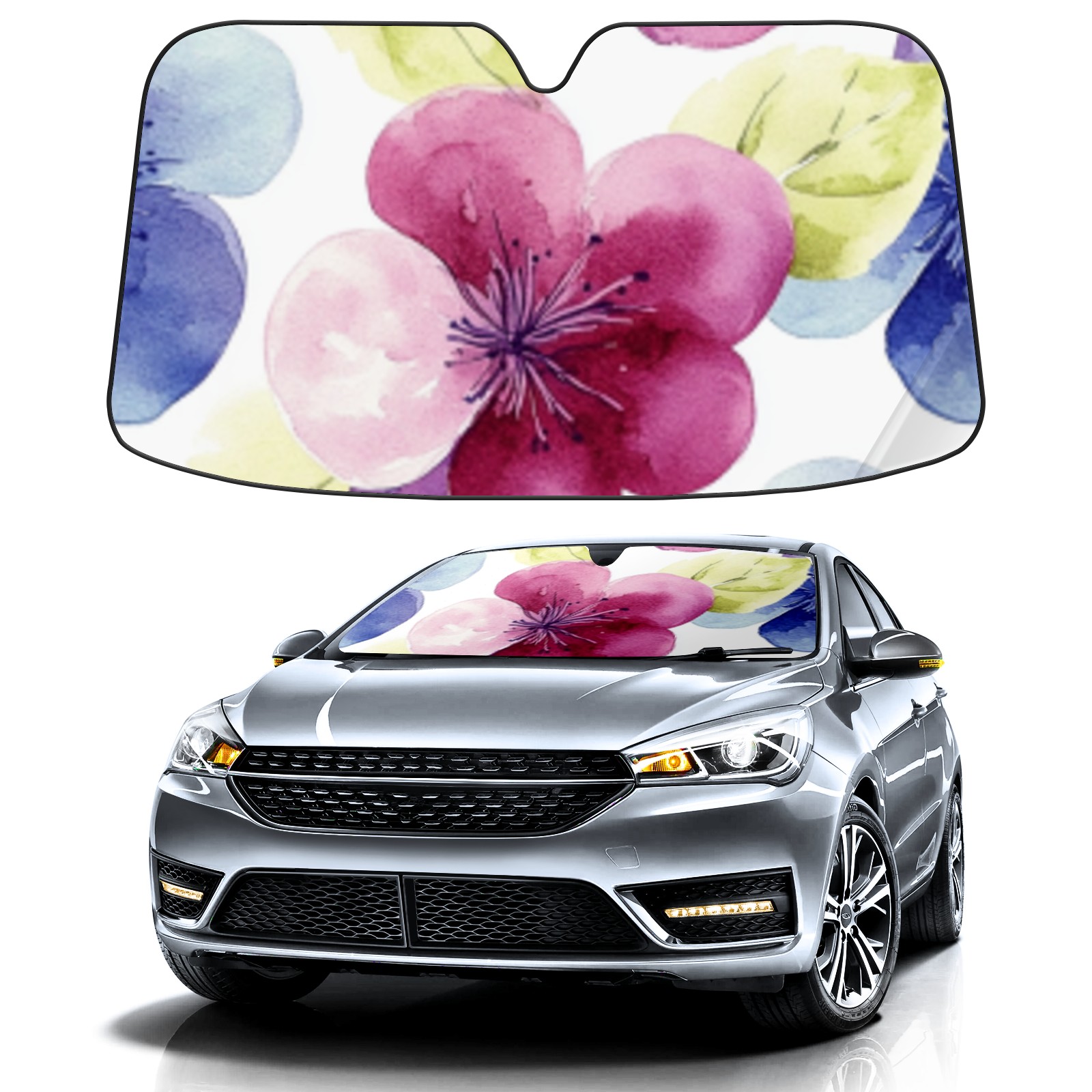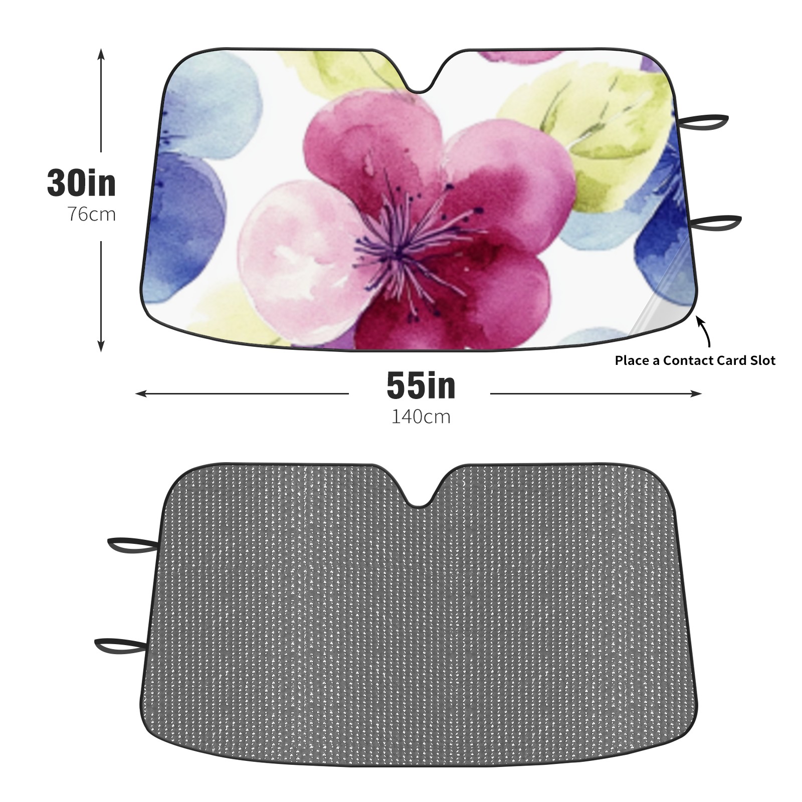 Blue Flower Car Sun Shade UV Protection Foldable Sunshade for Windshield Heat Insulation Portable Sun Shield for Car Interior Protection Automotive Window Protector