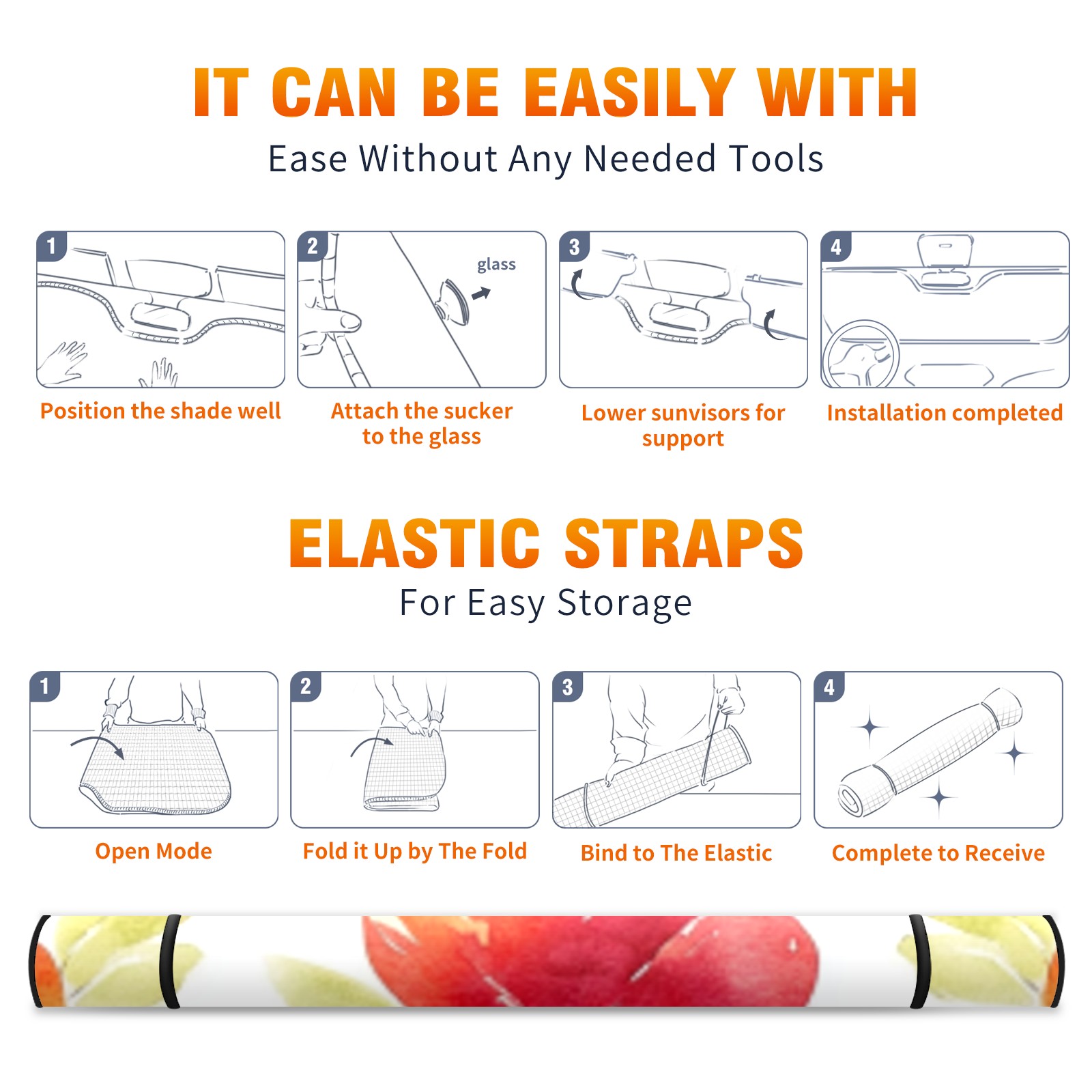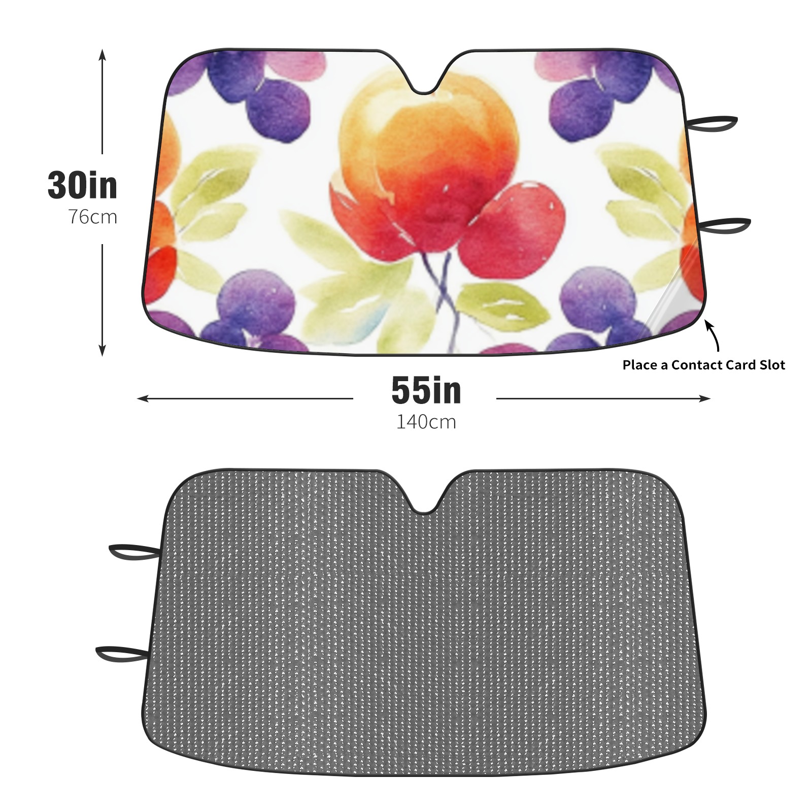 • <p><b>Foldable Premium Car Windshield Sunshade is your great solution to reduce your car’s interior temperature dramatically! This is definitely a must-have item for your summer travel!</b></p><p><b>【Precision Fit, Stylish Protection】</b></p><p>55"x30" (140x76cm) universal size with 3cm flexible margins fits curved windshields of most sedans/SUVs.</p><p><b>【Blocking Uv Rays &amp; Heat Insulation】</b></p><p>Our vehicle sunshade provides effective UV, sun, and summer heat protection, preventing leather fading and plastic cracking to keep your car interior pristine.</p><p><b>【Zero-Mark Installation &amp; Space-Saving】</b></p><p>Equipped with dual scratch-free silicone suction cups + adjustable straps: Medical-grade silicone cups hold firmly yet remove cleanly. Folds to A3 size (42x30cm x &lt;2cm thick), tucks discreetly into glove compartments or door pockets.&nbsp;</p>