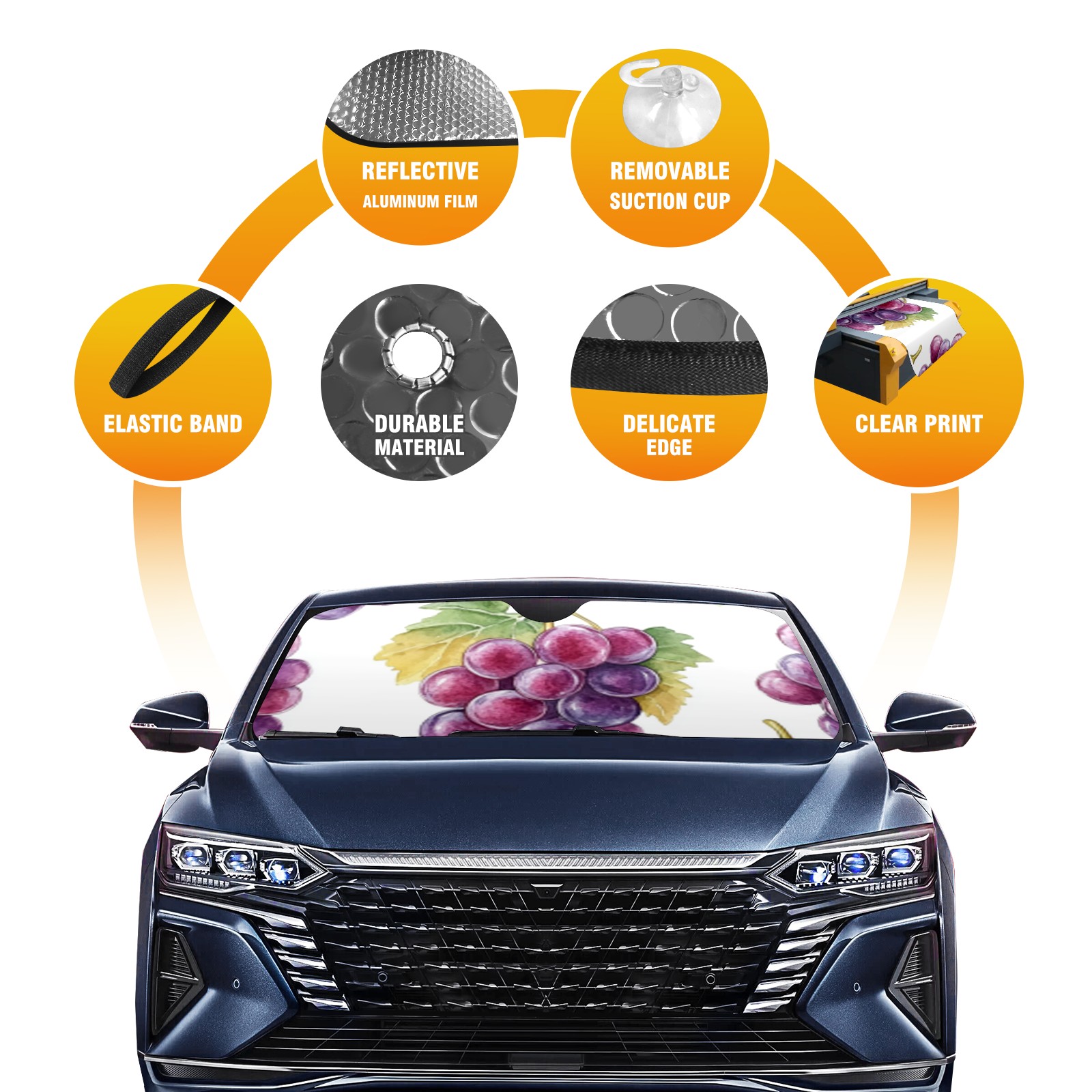 Grape1 Car Sun Shade UV Protection Foldable Sunshade for Windshield Heat Insulation Portable Sun Shield for Car Interior Protection Automotive Window Protector