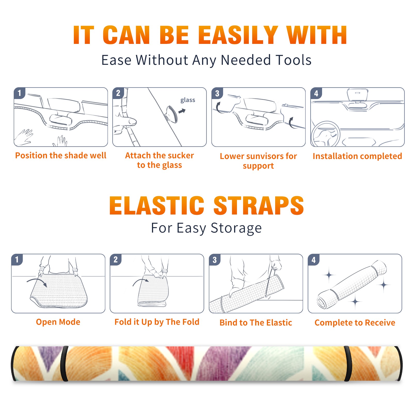 • <p><b>Foldable Premium Car Windshield Sunshade is your great solution to reduce your car’s interior temperature dramatically! This is definitely a must-have item for your summer travel!</b></p><p><b>【Precision Fit, Stylish Protection】</b></p><p>55"x30" (140x76cm) universal size with 3cm flexible margins fits curved windshields of most sedans/SUVs.</p><p><b>【Blocking Uv Rays &amp; Heat Insulation】</b></p><p>Our vehicle sunshade provides effective UV, sun, and summer heat protection, preventing leather fading and plastic cracking to keep your car interior pristine.</p><p><b>【Zero-Mark Installation &amp; Space-Saving】</b></p><p>Equipped with dual scratch-free silicone suction cups + adjustable straps: Medical-grade silicone cups hold firmly yet remove cleanly. Folds to A3 size (42x30cm x &lt;2cm thick), tucks discreetly into glove compartments or door pockets.&nbsp;</p>
