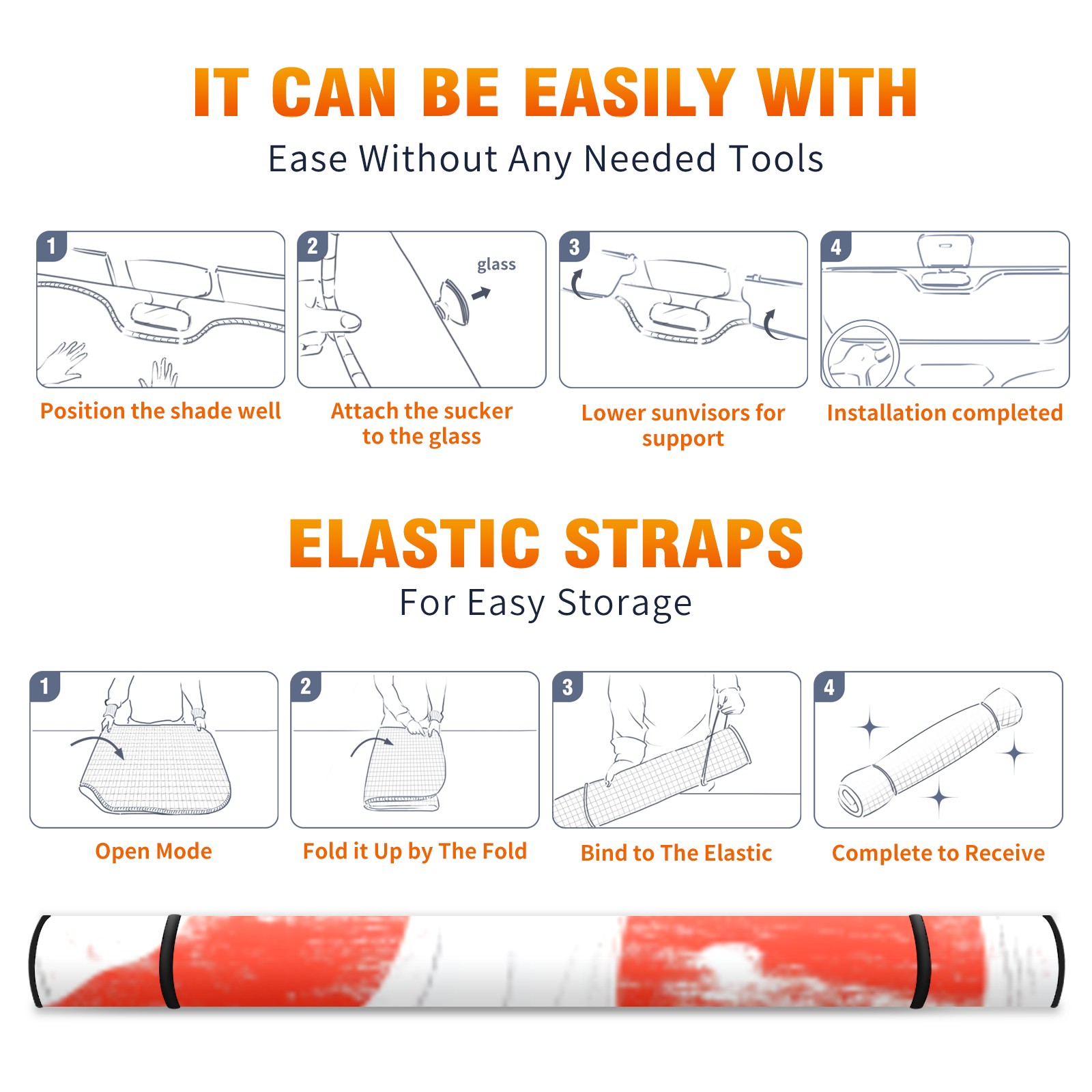• <p><b>Foldable Premium Car Windshield Sunshade is your great solution to reduce your car’s interior temperature dramatically! This is definitely a must-have item for your summer travel!</b></p><p><b>【Precision Fit, Stylish Protection】</b></p><p>55"x30" (140x76cm) universal size with 3cm flexible margins fits curved windshields of most sedans/SUVs.</p><p><b>【Blocking Uv Rays &amp; Heat Insulation】</b></p><p>Our vehicle sunshade provides effective UV, sun, and summer heat protection, preventing leather fading and plastic cracking to keep your car interior pristine.</p><p><b>【Zero-Mark Installation &amp; Space-Saving】</b></p><p>Equipped with dual scratch-free silicone suction cups + adjustable straps: Medical-grade silicone cups hold firmly yet remove cleanly. Folds to A3 size (42x30cm x &lt;2cm thick), tucks discreetly into glove compartments or door pockets.&nbsp;</p>