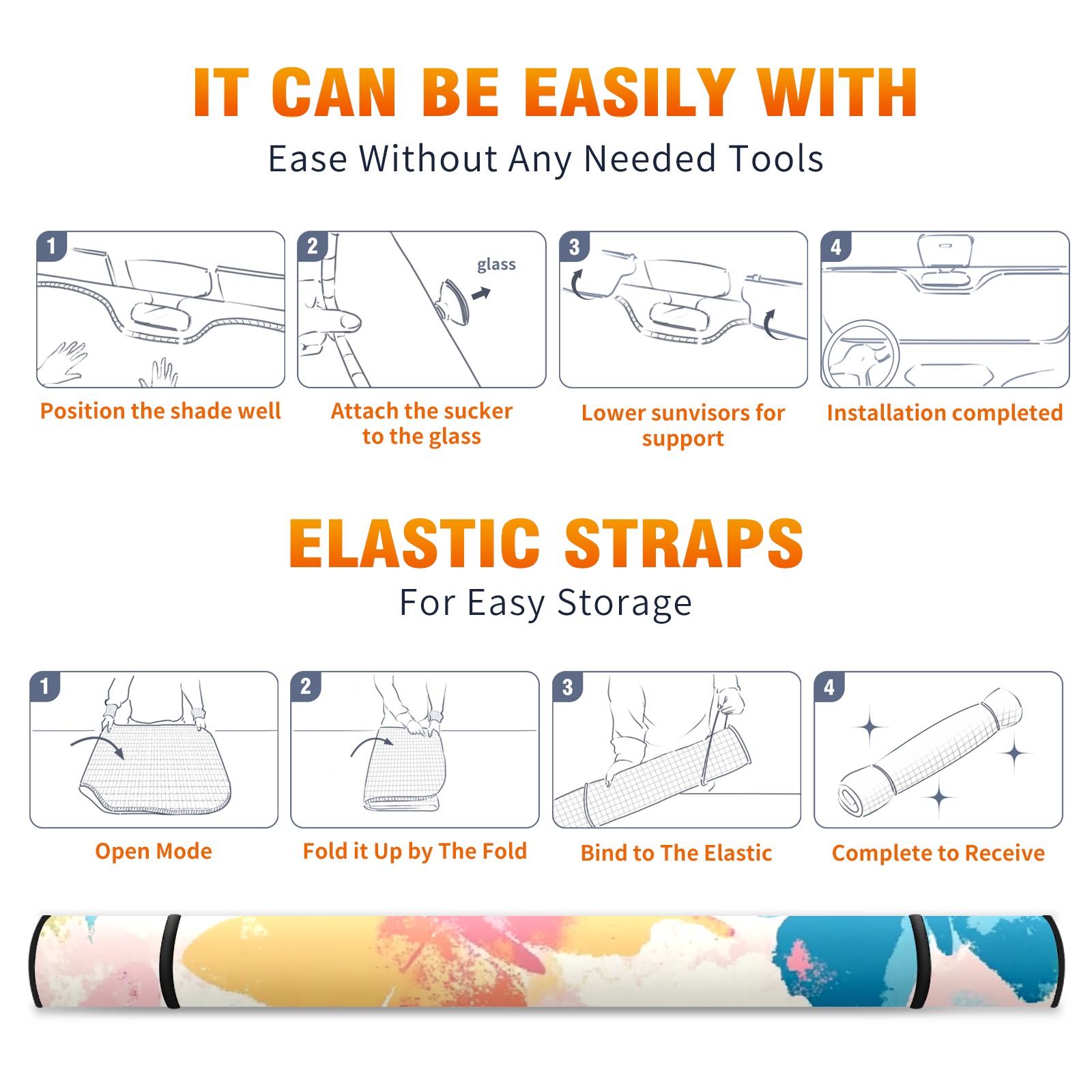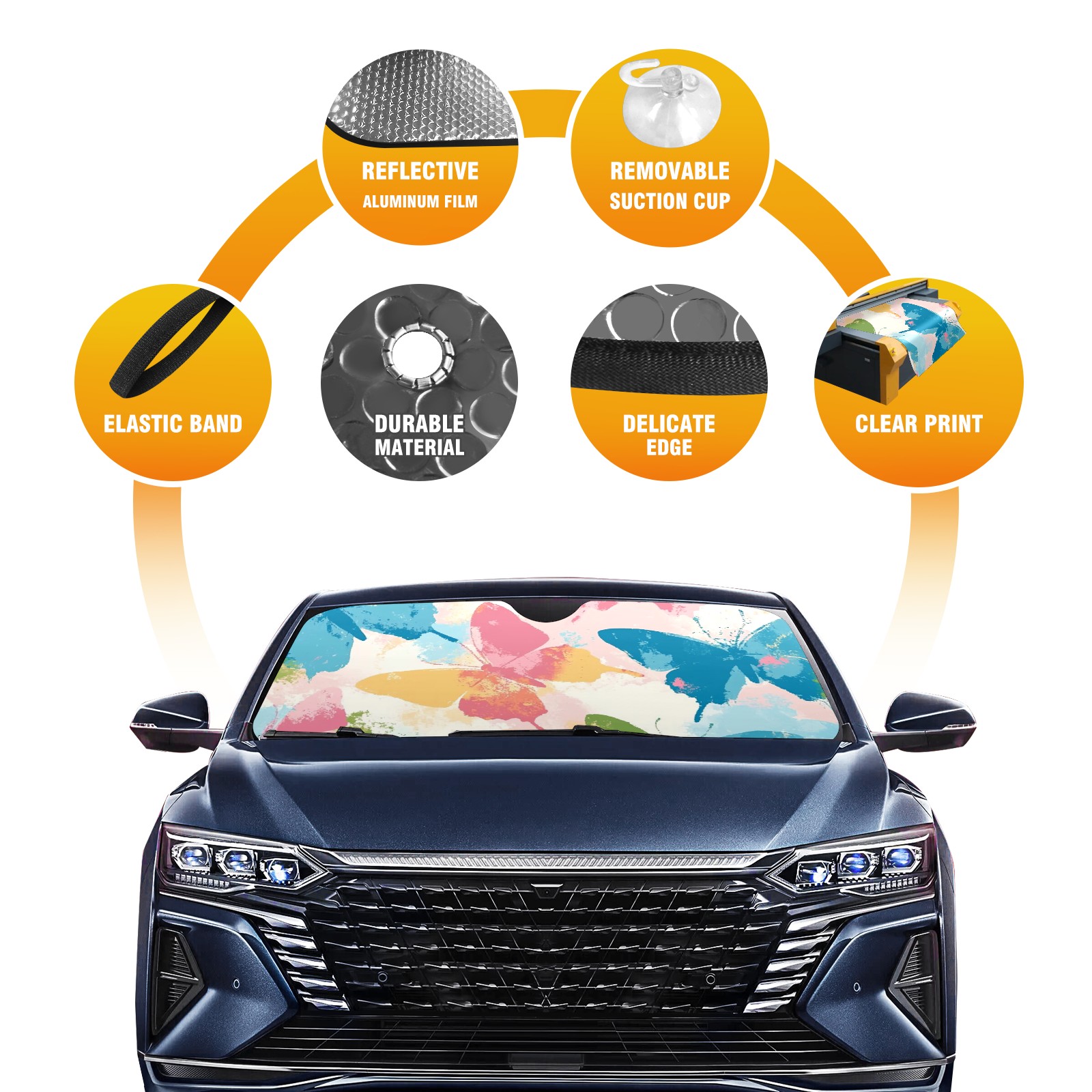 • <p><b>Foldable Premium Car Windshield Sunshade is your great solution to reduce your car’s interior temperature dramatically! This is definitely a must-have item for your summer travel!</b></p><p><b>【Precision Fit, Stylish Protection】</b></p><p>55"x30" (140x76cm) universal size with 3cm flexible margins fits curved windshields of most sedans/SUVs.</p><p><b>【Blocking Uv Rays &amp; Heat Insulation】</b></p><p>Our vehicle sunshade provides effective UV, sun, and summer heat protection, preventing leather fading and plastic cracking to keep your car interior pristine.</p><p><b>【Zero-Mark Installation &amp; Space-Saving】</b></p><p>Equipped with dual scratch-free silicone suction cups + adjustable straps: Medical-grade silicone cups hold firmly yet remove cleanly. Folds to A3 size (42x30cm x &lt;2cm thick), tucks discreetly into glove compartments or door pockets.&nbsp;</p>