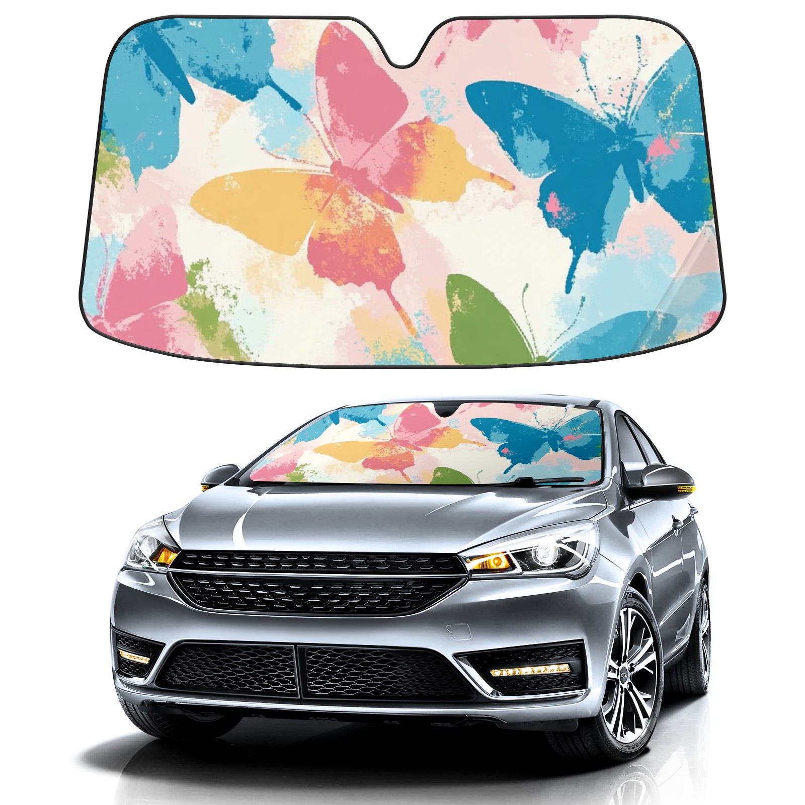 Butterflies In Pastel Colors Car Sun Shade UV Protection Foldable Sunshade for Windshield Heat Insulation Portable Sun Shield for Car Interior Protection Automotive Window Protector