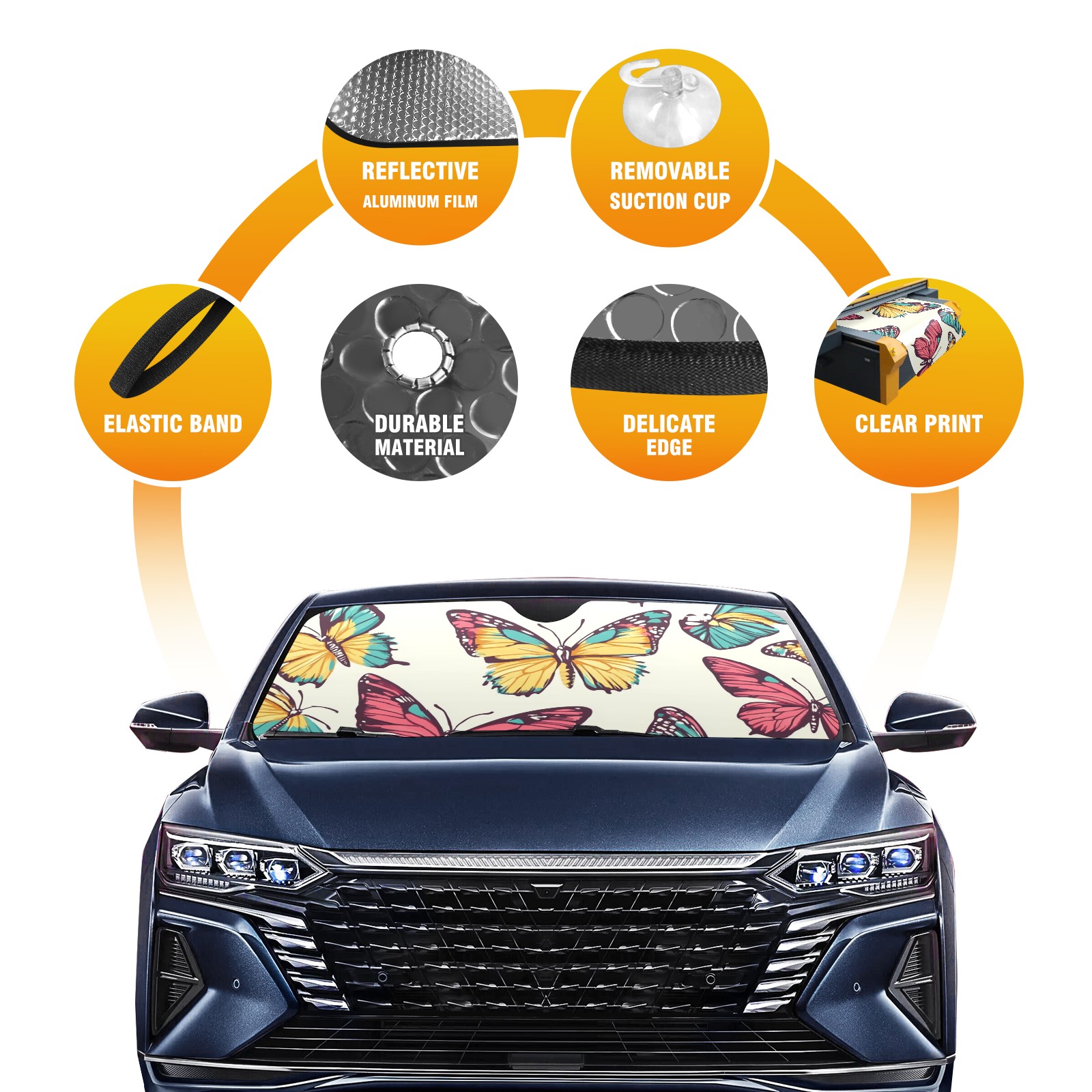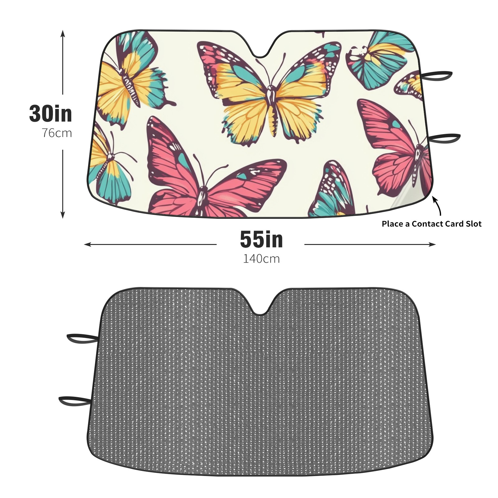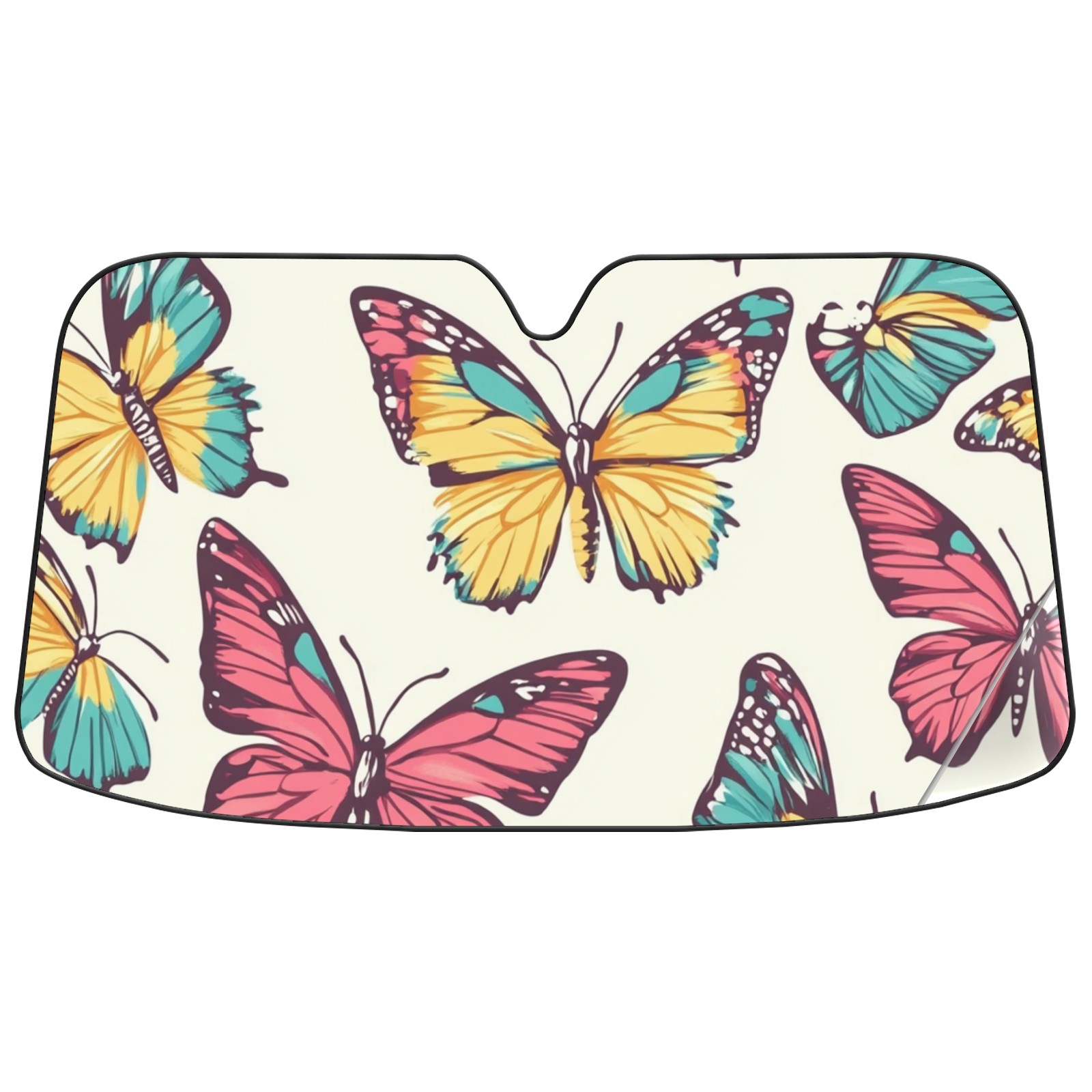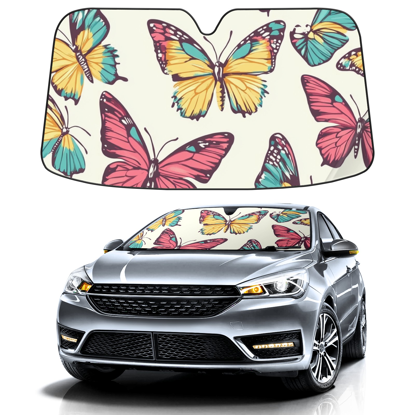 Colorful Butterflies Car Sun Shade UV Protection Foldable Sunshade for Windshield Heat Insulation Portable Sun Shield for Car Interior Protection Automotive Window Protector