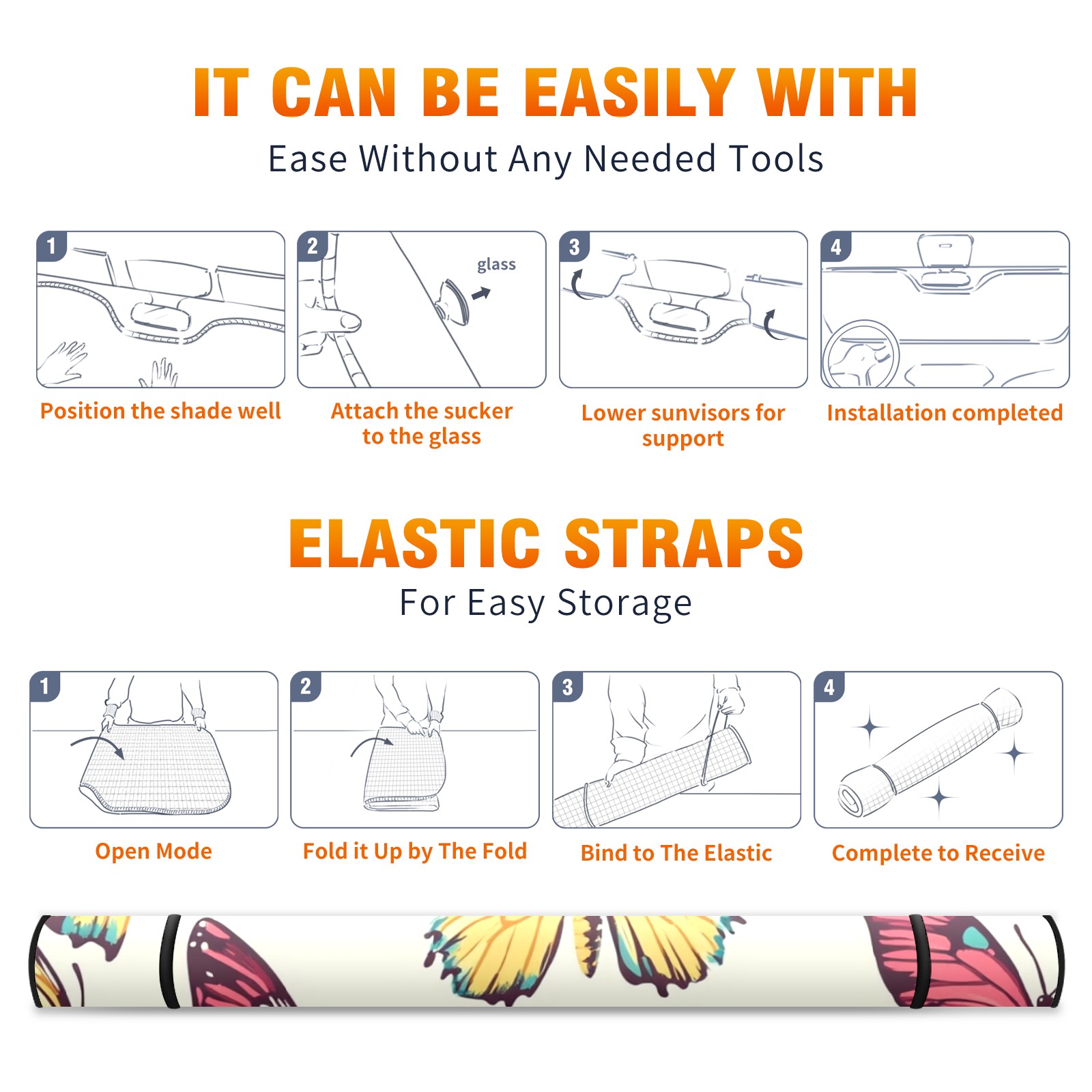• <p><b>Foldable Premium Car Windshield Sunshade is your great solution to reduce your car’s interior temperature dramatically! This is definitely a must-have item for your summer travel!</b></p><p><b>【Precision Fit, Stylish Protection】</b></p><p>55"x30" (140x76cm) universal size with 3cm flexible margins fits curved windshields of most sedans/SUVs.</p><p><b>【Blocking Uv Rays &amp; Heat Insulation】</b></p><p>Our vehicle sunshade provides effective UV, sun, and summer heat protection, preventing leather fading and plastic cracking to keep your car interior pristine.</p><p><b>【Zero-Mark Installation &amp; Space-Saving】</b></p><p>Equipped with dual scratch-free silicone suction cups + adjustable straps: Medical-grade silicone cups hold firmly yet remove cleanly. Folds to A3 size (42x30cm x &lt;2cm thick), tucks discreetly into glove compartments or door pockets.&nbsp;</p>