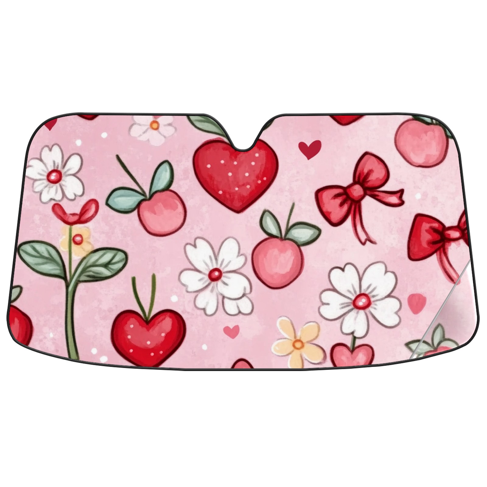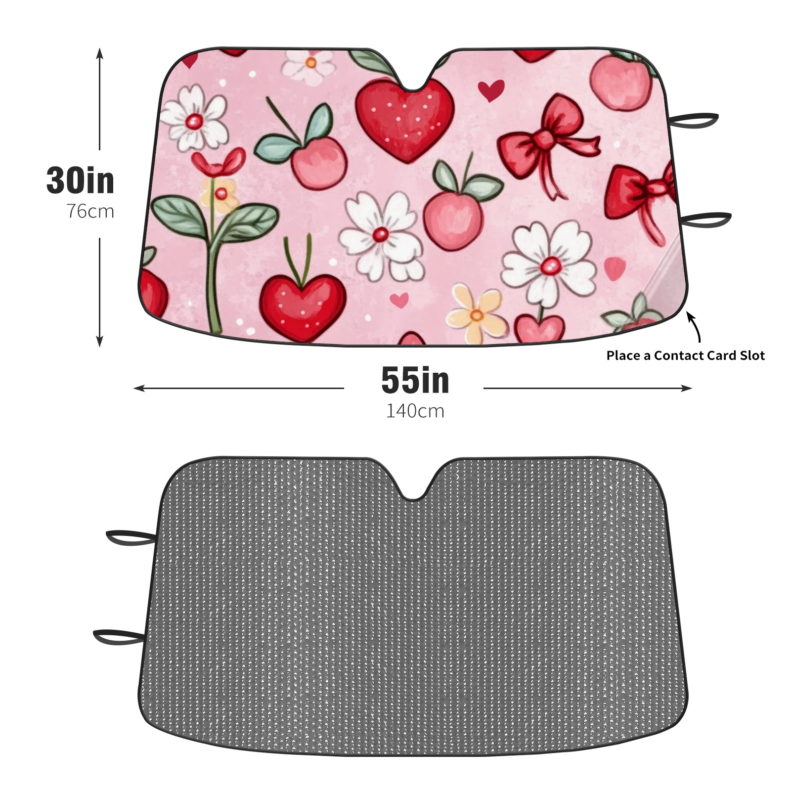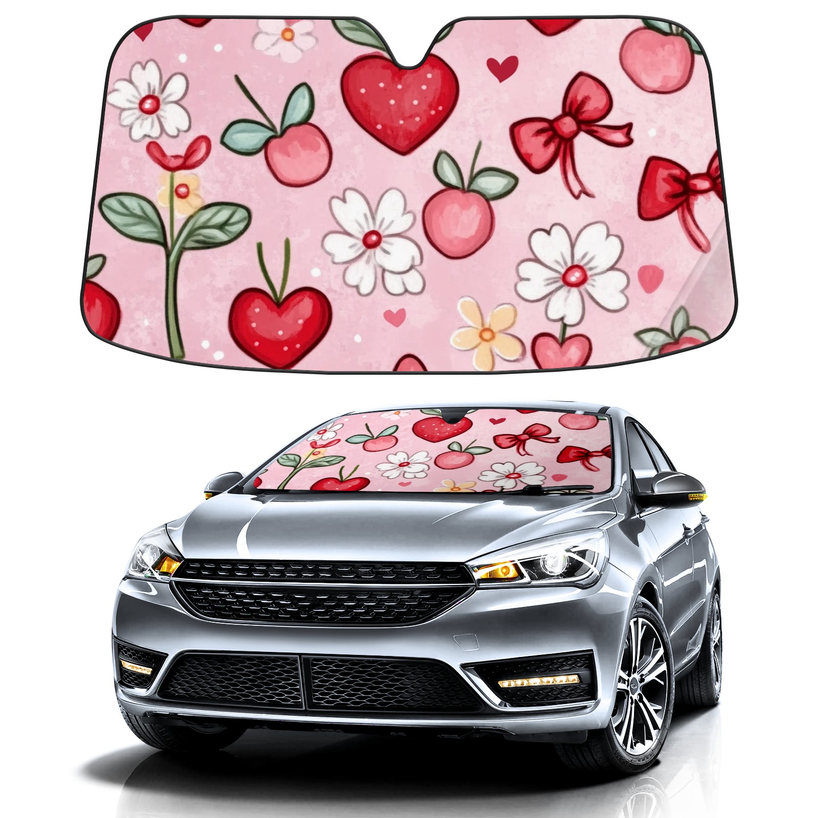 Red And White Hearts Car Sun Shade UV Protection Foldable Sunshade for Windshield Heat Insulation Portable Sun Shield for Car Interior Protection Automotive Window Protector