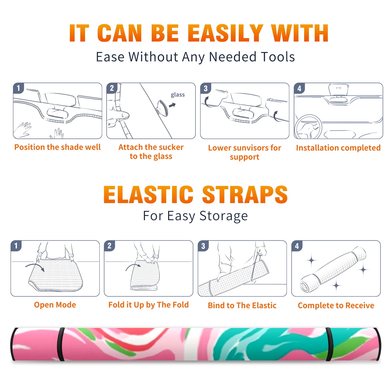 • <p><b>Foldable Premium Car Windshield Sunshade is your great solution to reduce your car’s interior temperature dramatically! This is definitely a must-have item for your summer travel!</b></p><p><b>【Precision Fit, Stylish Protection】</b></p><p>55"x30" (140x76cm) universal size with 3cm flexible margins fits curved windshields of most sedans/SUVs.</p><p><b>【Blocking Uv Rays &amp; Heat Insulation】</b></p><p>Our vehicle sunshade provides effective UV, sun, and summer heat protection, preventing leather fading and plastic cracking to keep your car interior pristine.</p><p><b>【Zero-Mark Installation &amp; Space-Saving】</b></p><p>Equipped with dual scratch-free silicone suction cups + adjustable straps: Medical-grade silicone cups hold firmly yet remove cleanly. Folds to A3 size (42x30cm x &lt;2cm thick), tucks discreetly into glove compartments or door pockets.&nbsp;</p>