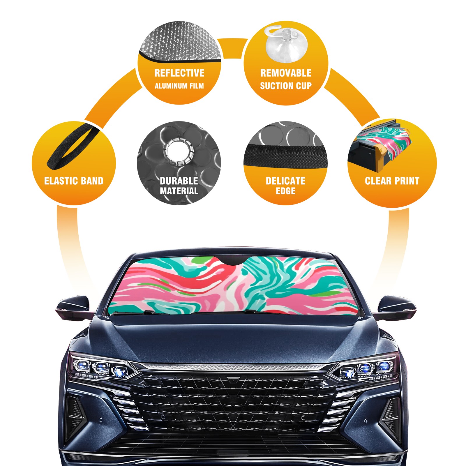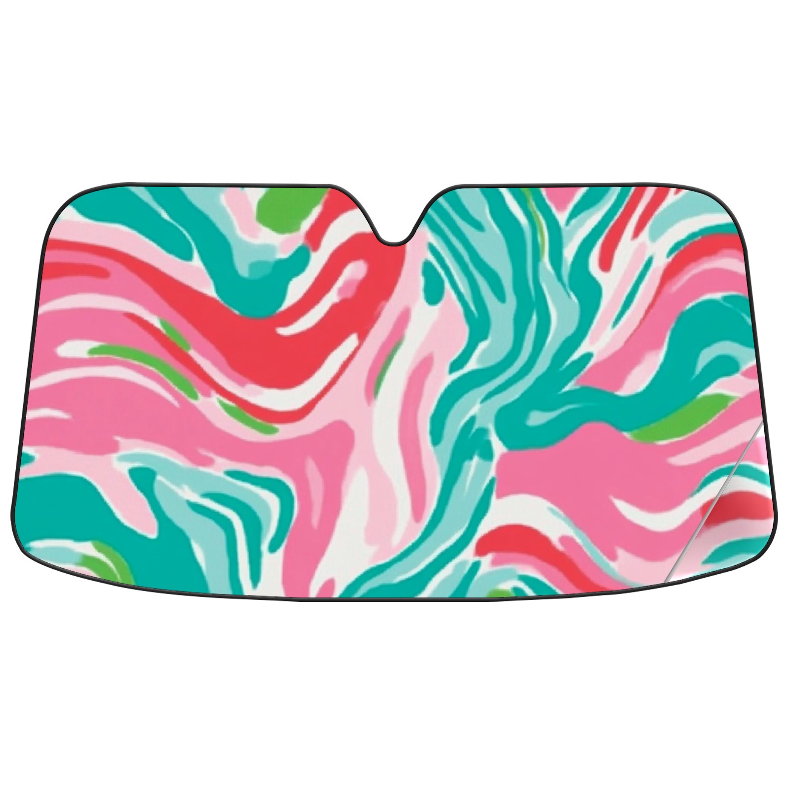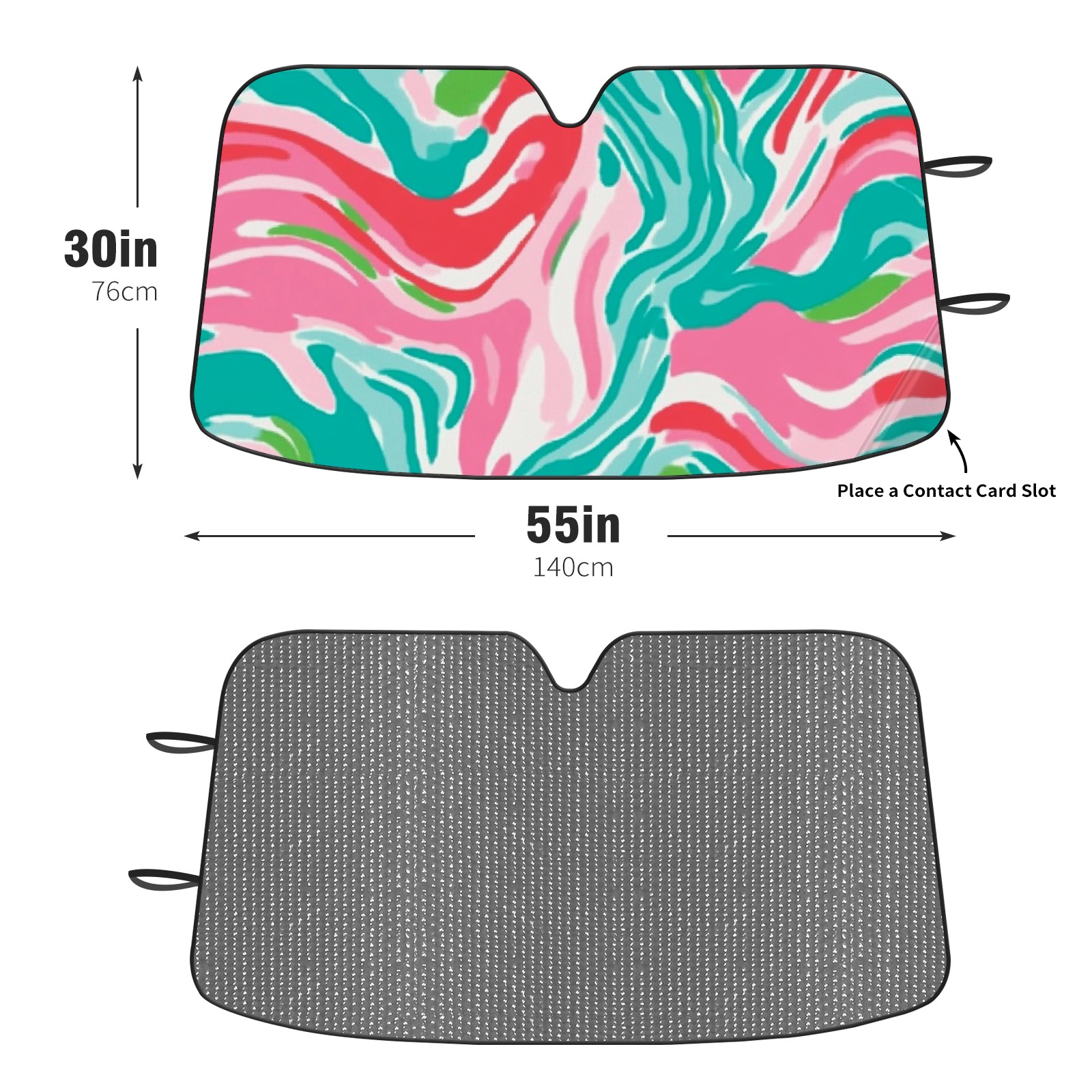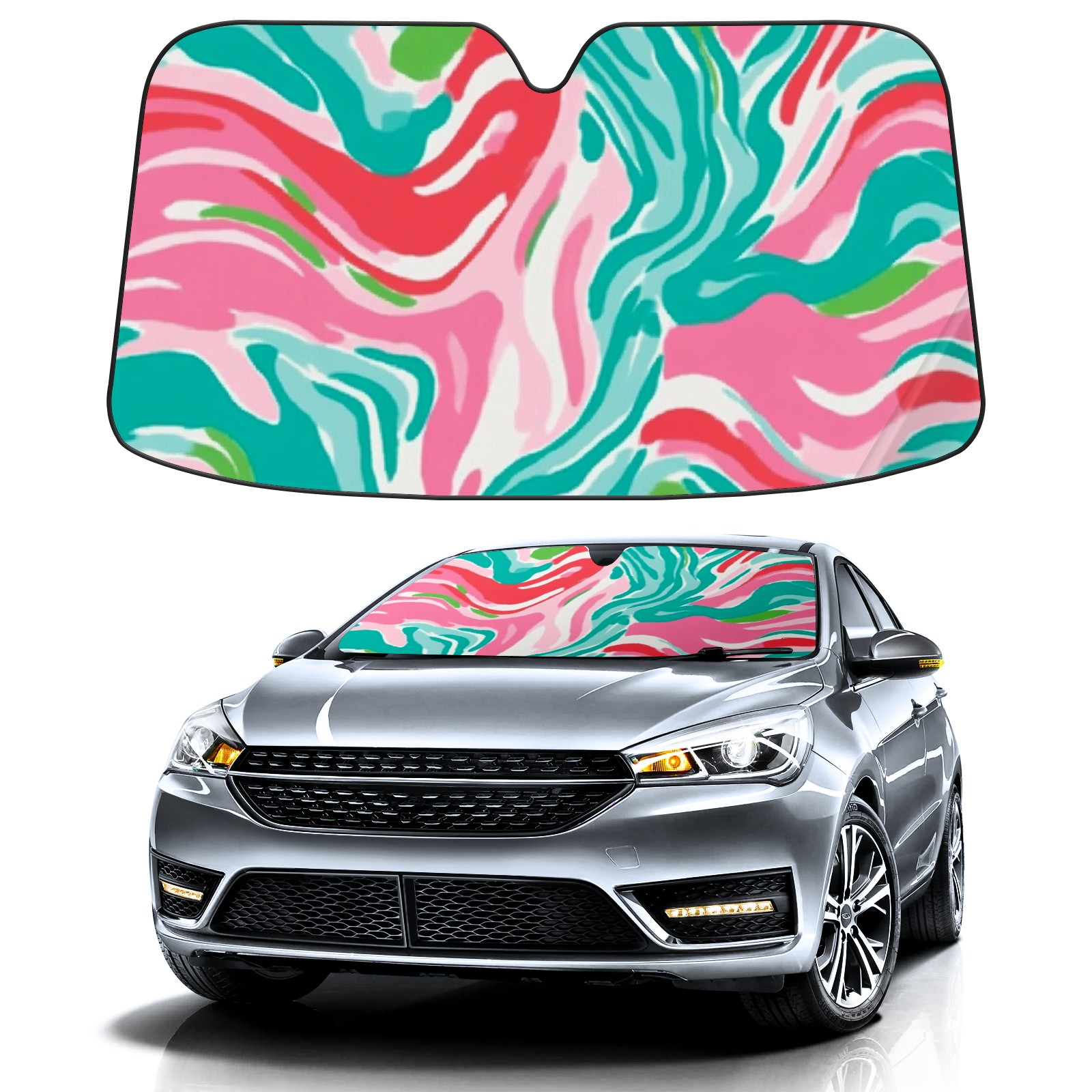 Pink And Teal Abstract Waves Car Sun Shade UV Protection Foldable Sunshade for Windshield Heat Insulation Portable Sun Shield for Car Interior Protection Automotive Window Protector