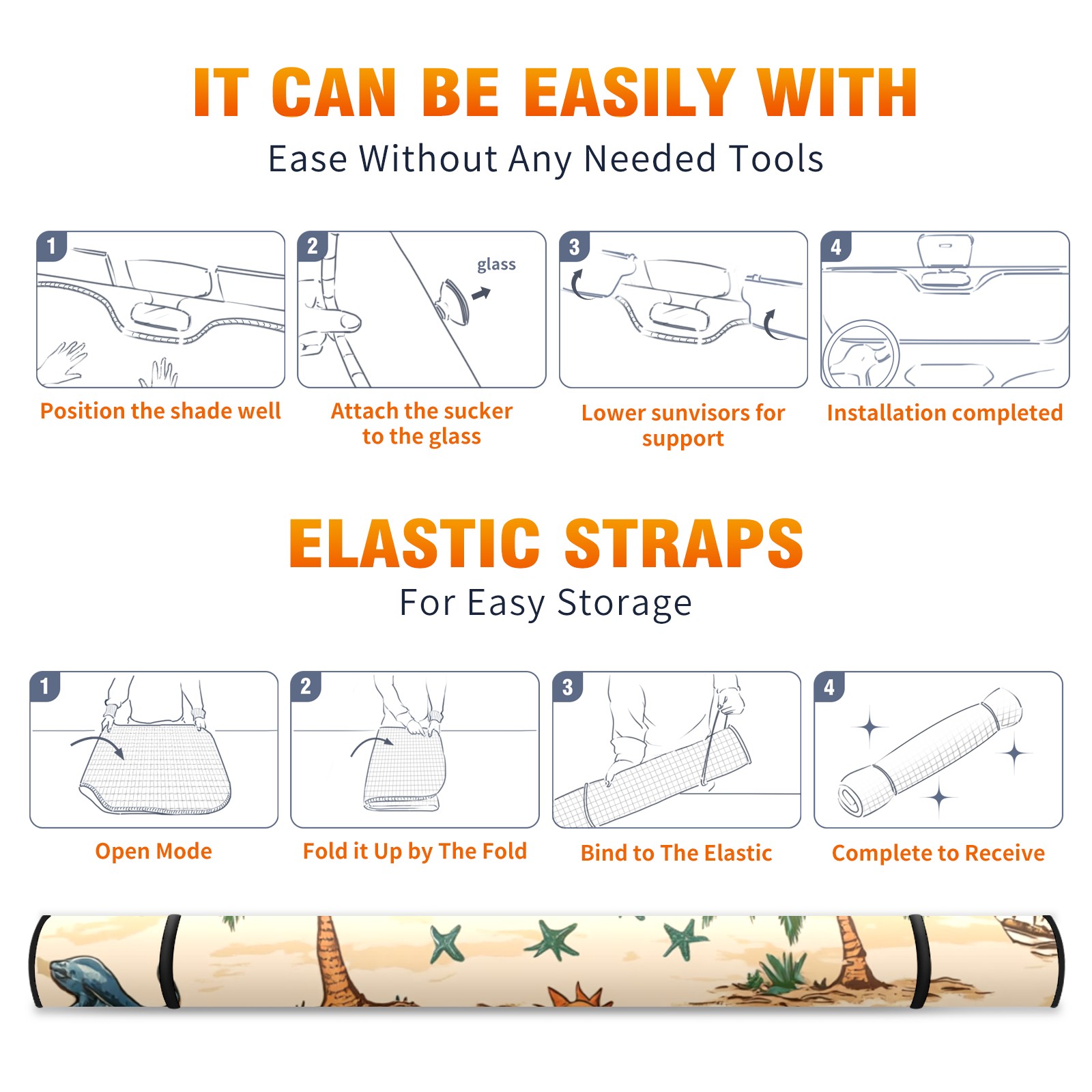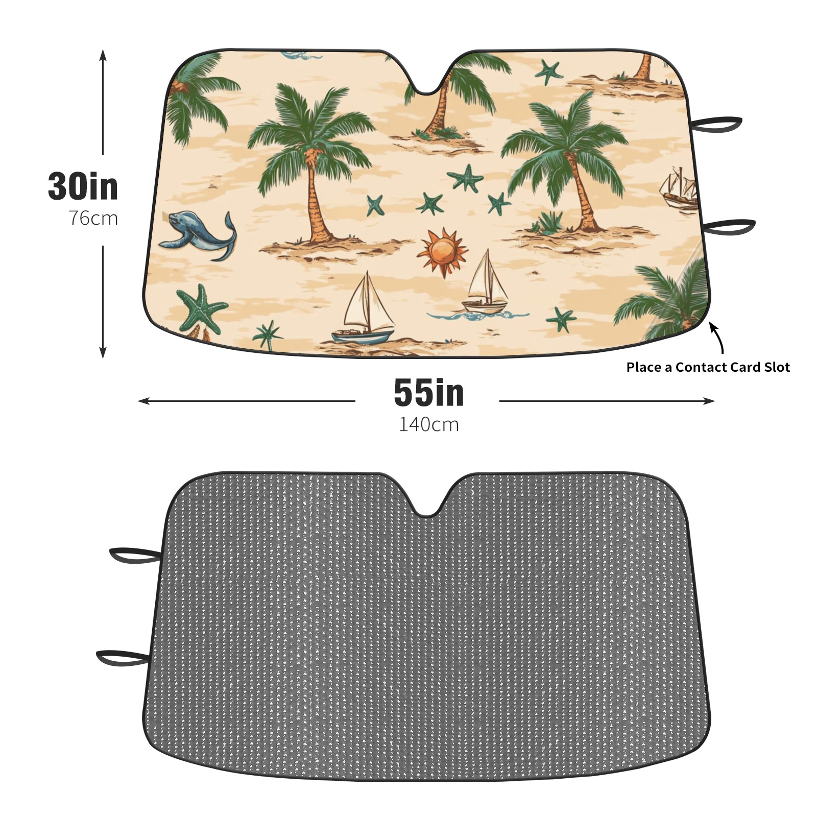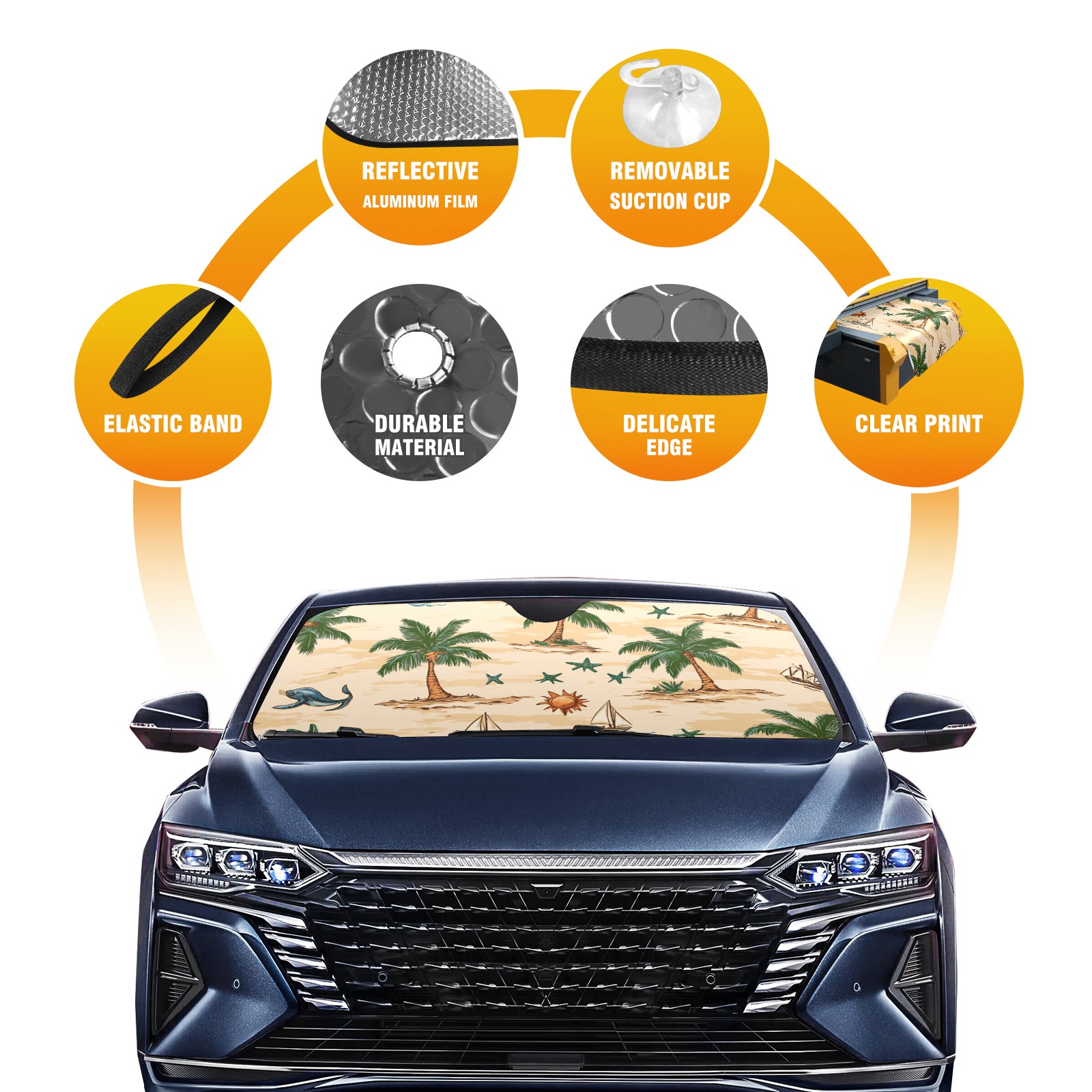 • <p><b>Foldable Premium Car Windshield Sunshade is your great solution to reduce your car’s interior temperature dramatically! This is definitely a must-have item for your summer travel!</b></p><p><b>【Precision Fit, Stylish Protection】</b></p><p>55"x30" (140x76cm) universal size with 3cm flexible margins fits curved windshields of most sedans/SUVs.</p><p><b>【Blocking Uv Rays &amp; Heat Insulation】</b></p><p>Our vehicle sunshade provides effective UV, sun, and summer heat protection, preventing leather fading and plastic cracking to keep your car interior pristine.</p><p><b>【Zero-Mark Installation &amp; Space-Saving】</b></p><p>Equipped with dual scratch-free silicone suction cups + adjustable straps: Medical-grade silicone cups hold firmly yet remove cleanly. Folds to A3 size (42x30cm x &lt;2cm thick), tucks discreetly into glove compartments or door pockets.&nbsp;</p>