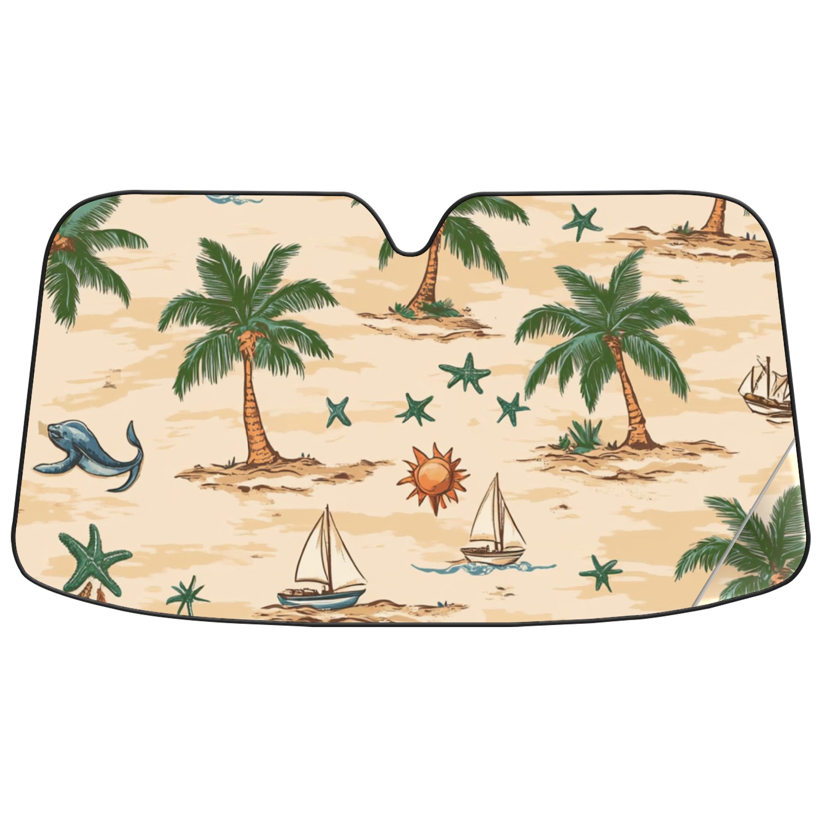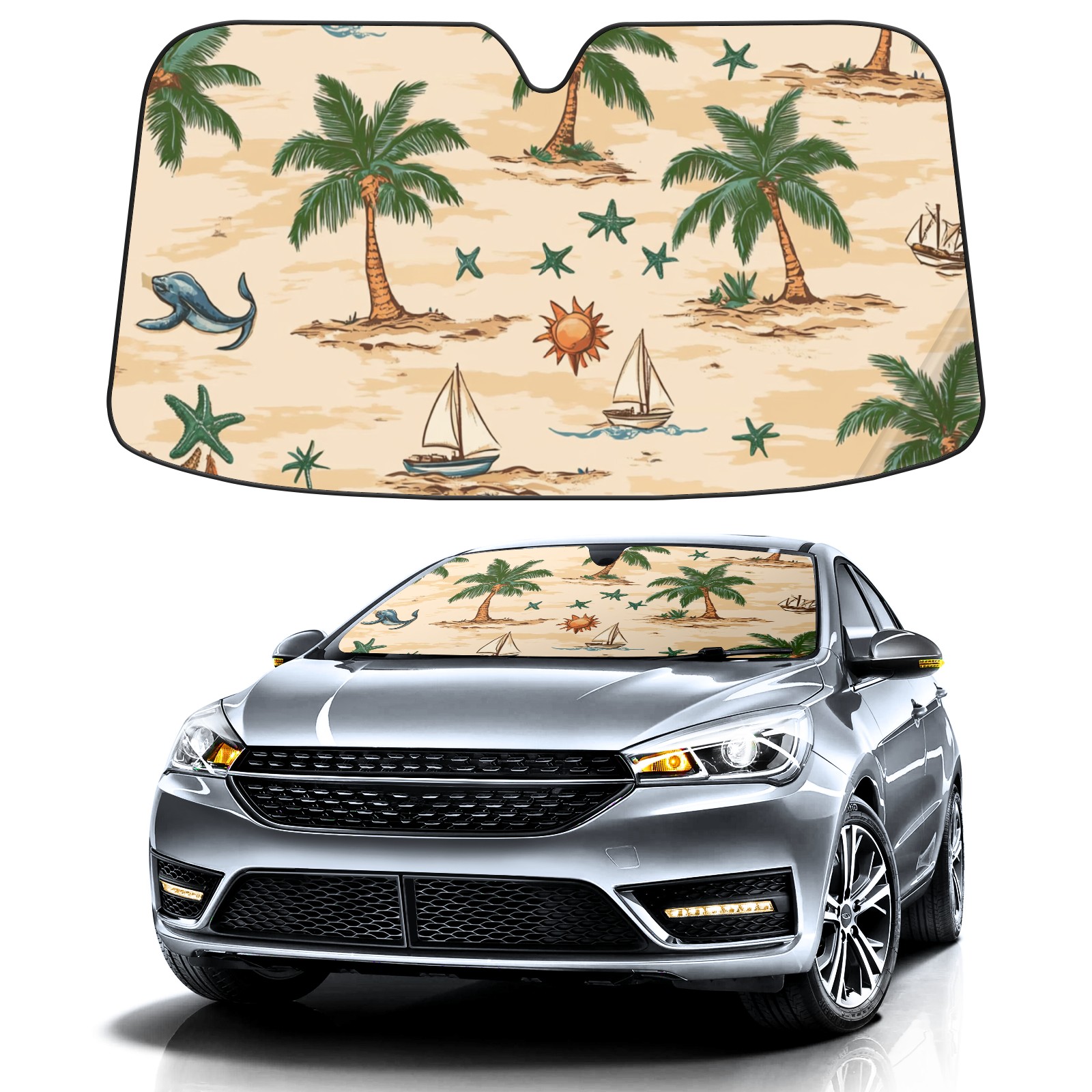 Palm Trees Suns And Starfish Car Sun Shade UV Protection Foldable Sunshade for Windshield Heat Insulation Portable Sun Shield for Car Interior Protection Automotive Window Protector