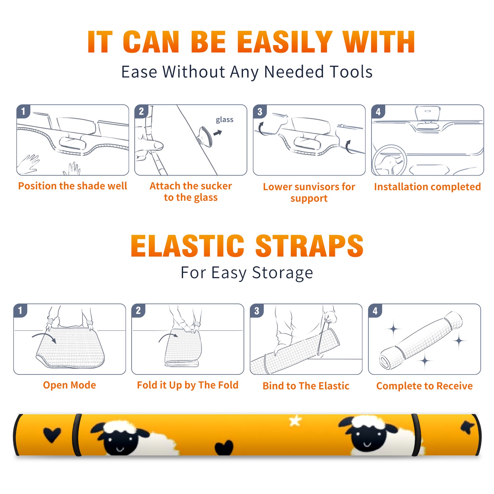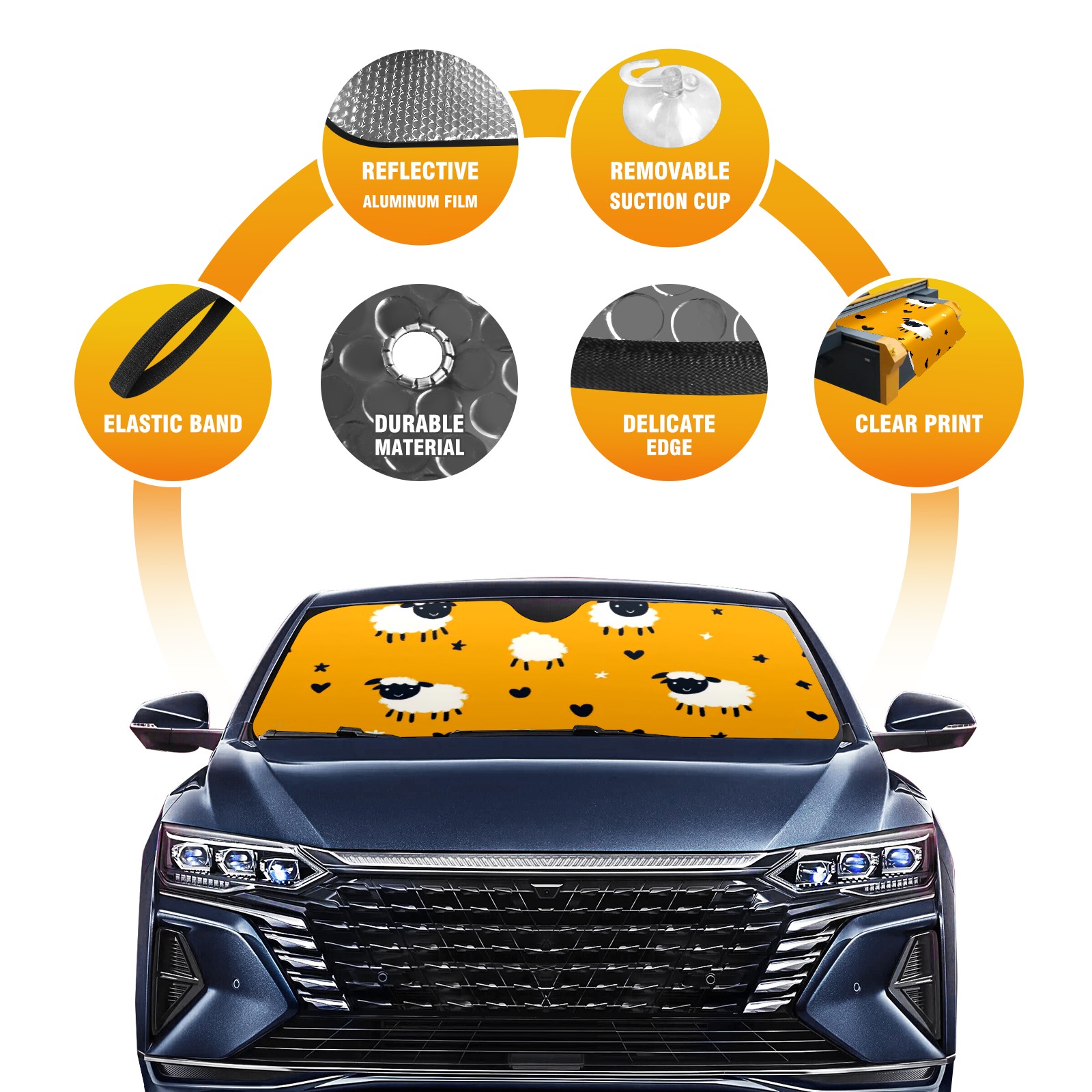 Yellow Sheep Car Sun Shade UV Protection Foldable Sunshade for Windshield Heat Insulation Portable Sun Shield for Car Interior Protection Automotive Window Protector