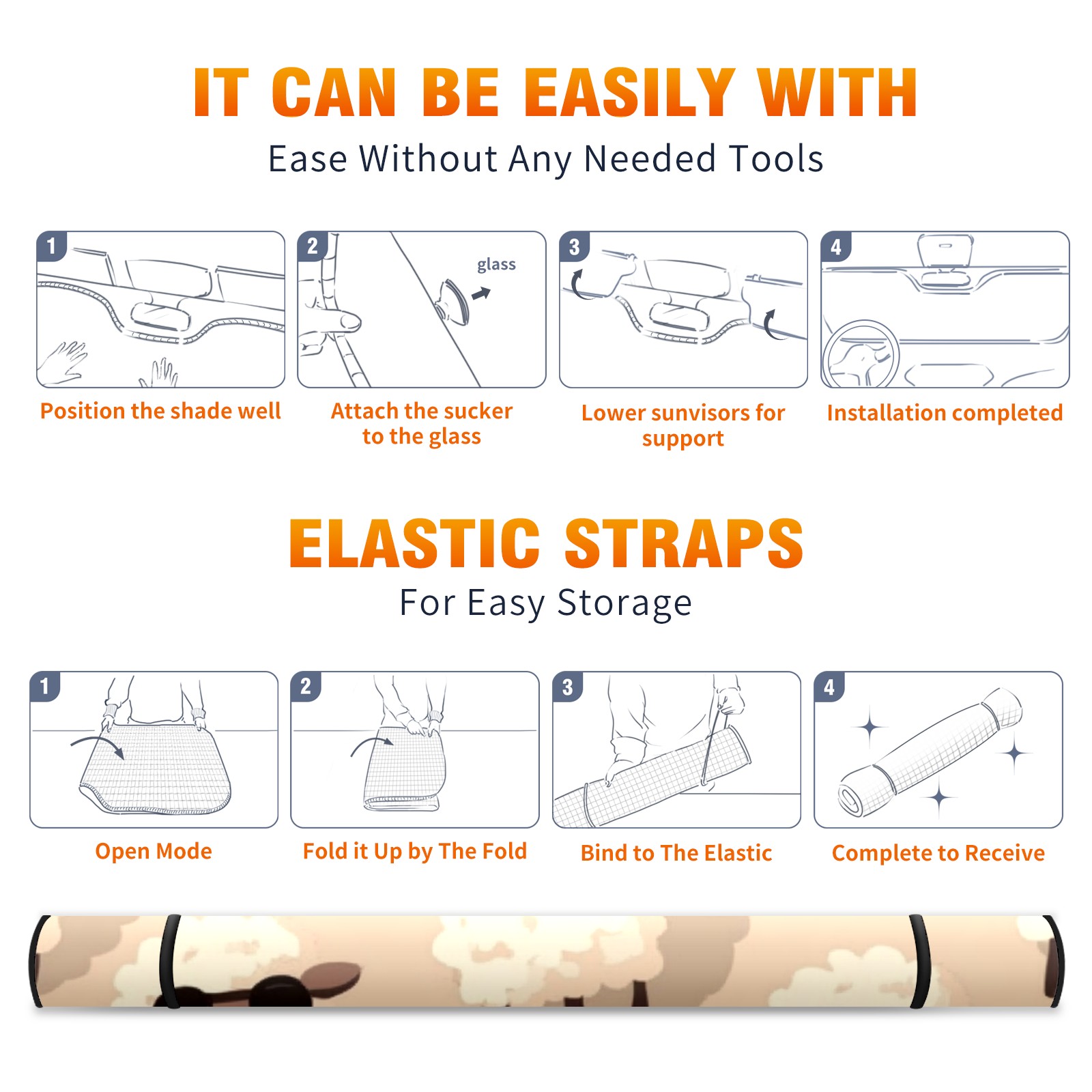 <p><b>Foldable Premium Car Windshield Sunshade is your great solution to reduce your car’s interior temperature dramatically! This is definitely a must-have item for your summer travel!</b></p><p><b>【Precision Fit, Stylish Protection】</b></p><p>55"x30" (140x76cm) universal size with 3cm flexible margins fits curved windshields of most sedans/SUVs.</p><p><b>【Blocking Uv Rays &amp; Heat Insulation】</b></p><p>Our vehicle sunshade provides effective UV, sun, and summer heat protection, preventing leather fading and plastic cracking to keep your car interior pristine.</p><p><b>【Zero-Mark Installation &amp; Space-Saving】</b></p><p>Equipped with dual scratch-free silicone suction cups + adjustable straps: Medical-grade silicone cups hold firmly yet remove cleanly. Folds to A3 size (42x30cm x &lt;2cm thick), tucks discreetly into glove compartments or door pockets.&nbsp;</p>