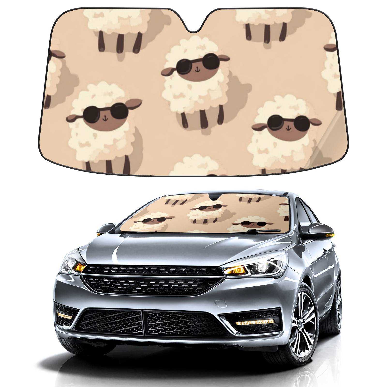 Sheep Car Sun Shade UV Protection Foldable Sunshade for Windshield Heat Insulation Portable Sun Shield for Car Interior Protection Automotive Window Protector