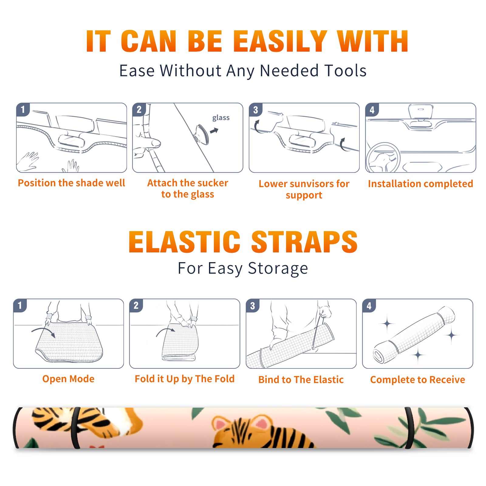 • <p><b>Foldable Premium Car Windshield Sunshade is your great solution to reduce your car’s interior temperature dramatically! This is definitely a must-have item for your summer travel!</b></p><p><b>【Precision Fit, Stylish Protection】</b></p><p>55"x30" (140x76cm) universal size with 3cm flexible margins fits curved windshields of most sedans/SUVs.</p><p><b>【Blocking Uv Rays &amp; Heat Insulation】</b></p><p>Our vehicle sunshade provides effective UV, sun, and summer heat protection, preventing leather fading and plastic cracking to keep your car interior pristine.</p><p><b>【Zero-Mark Installation &amp; Space-Saving】</b></p><p>Equipped with dual scratch-free silicone suction cups + adjustable straps: Medical-grade silicone cups hold firmly yet remove cleanly. Folds to A3 size (42x30cm x &lt;2cm thick), tucks discreetly into glove compartments or door pockets.&nbsp;</p>