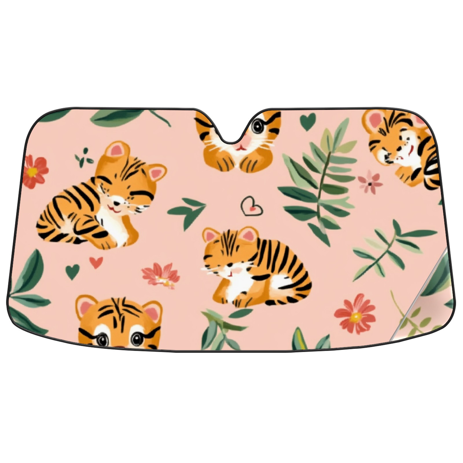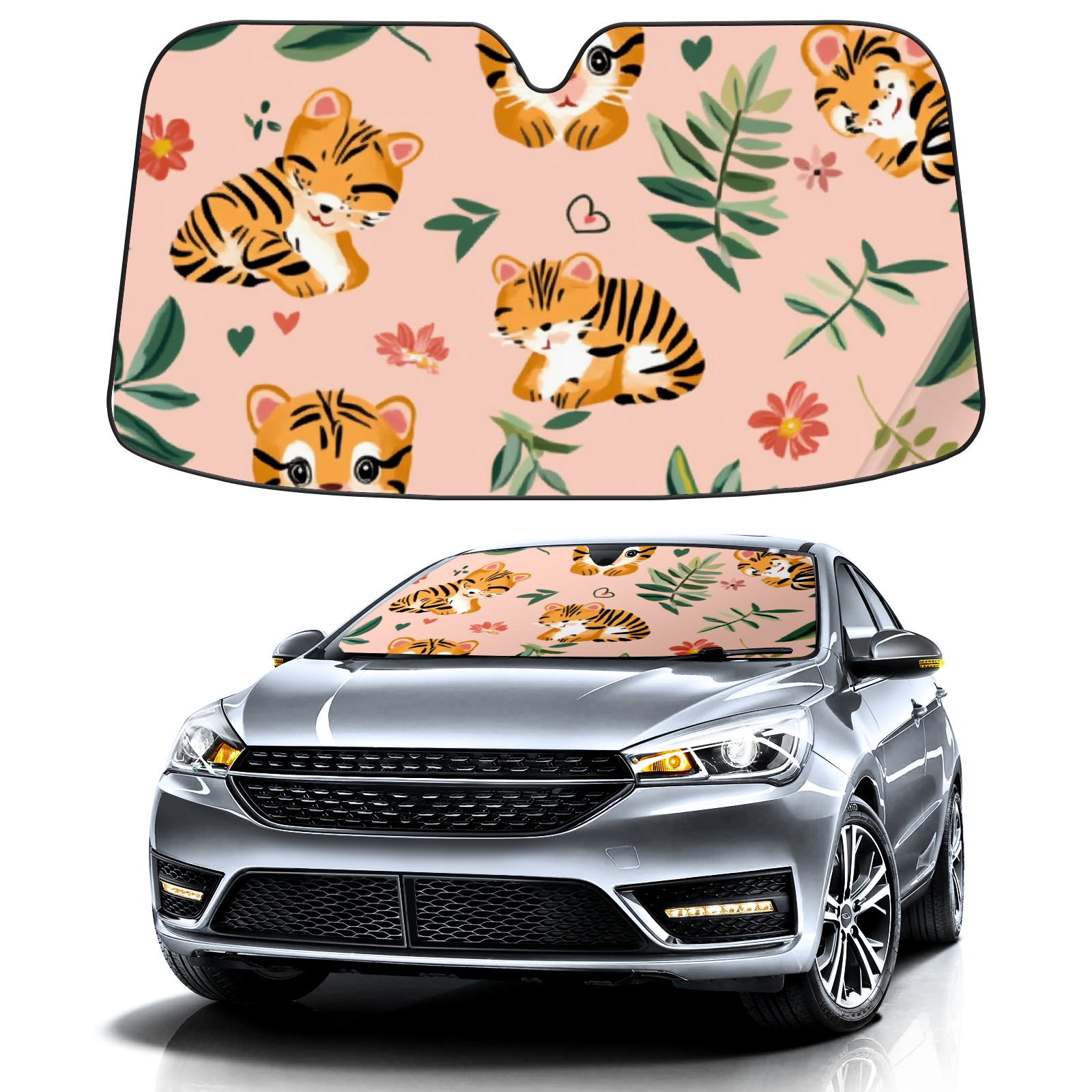 Tiger Car Sun Shade UV Protection Foldable Sunshade for Windshield Heat Insulation Portable Sun Shield for Car Interior Protection Automotive Window Protector