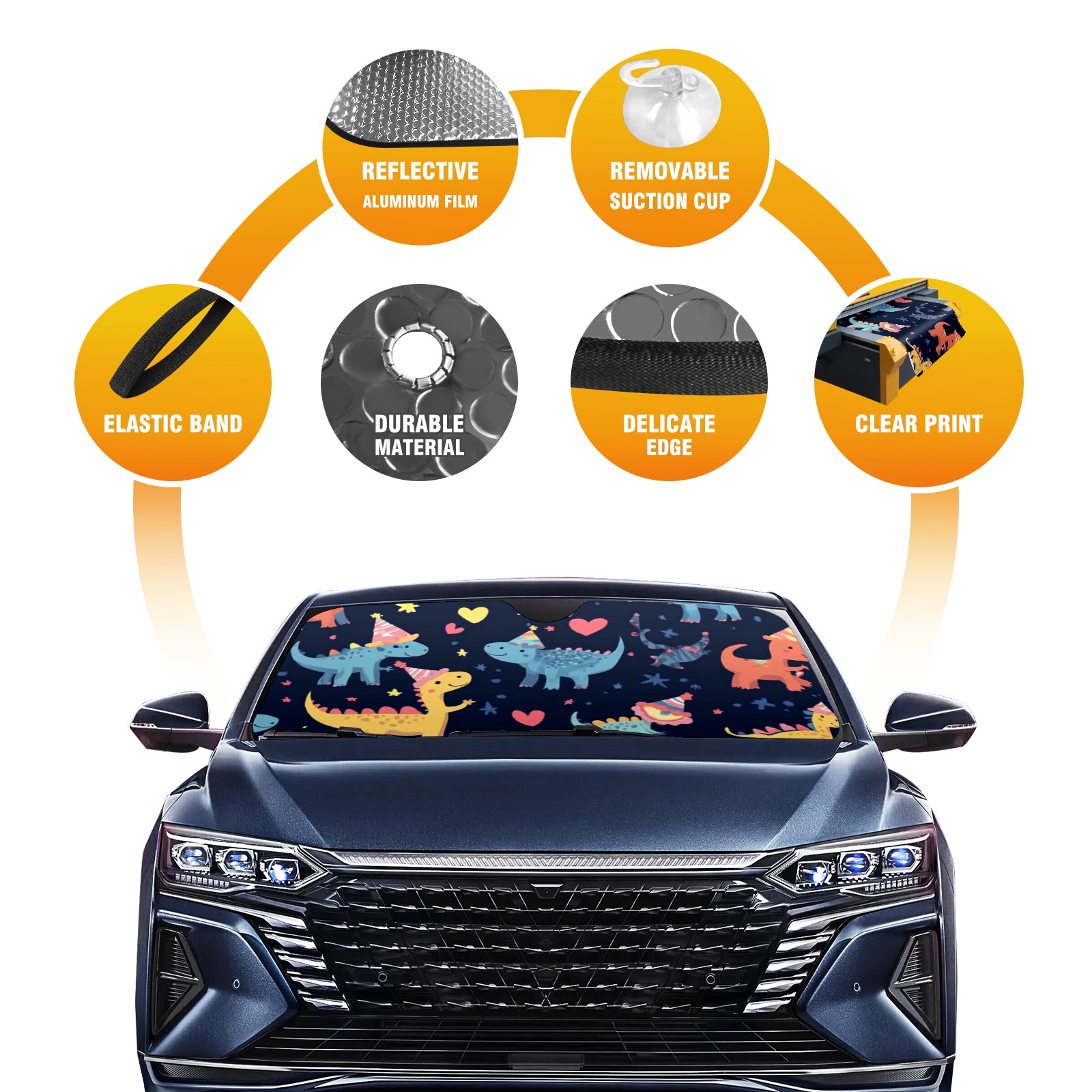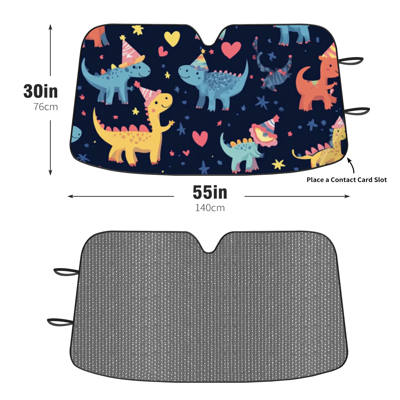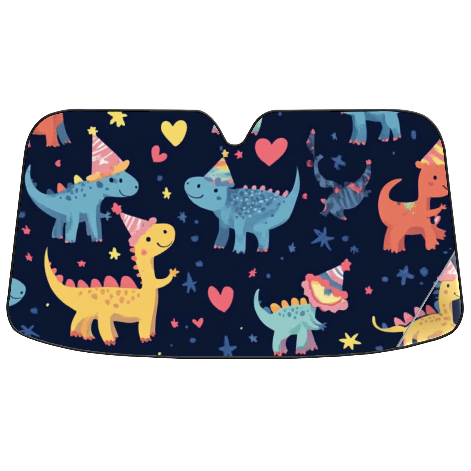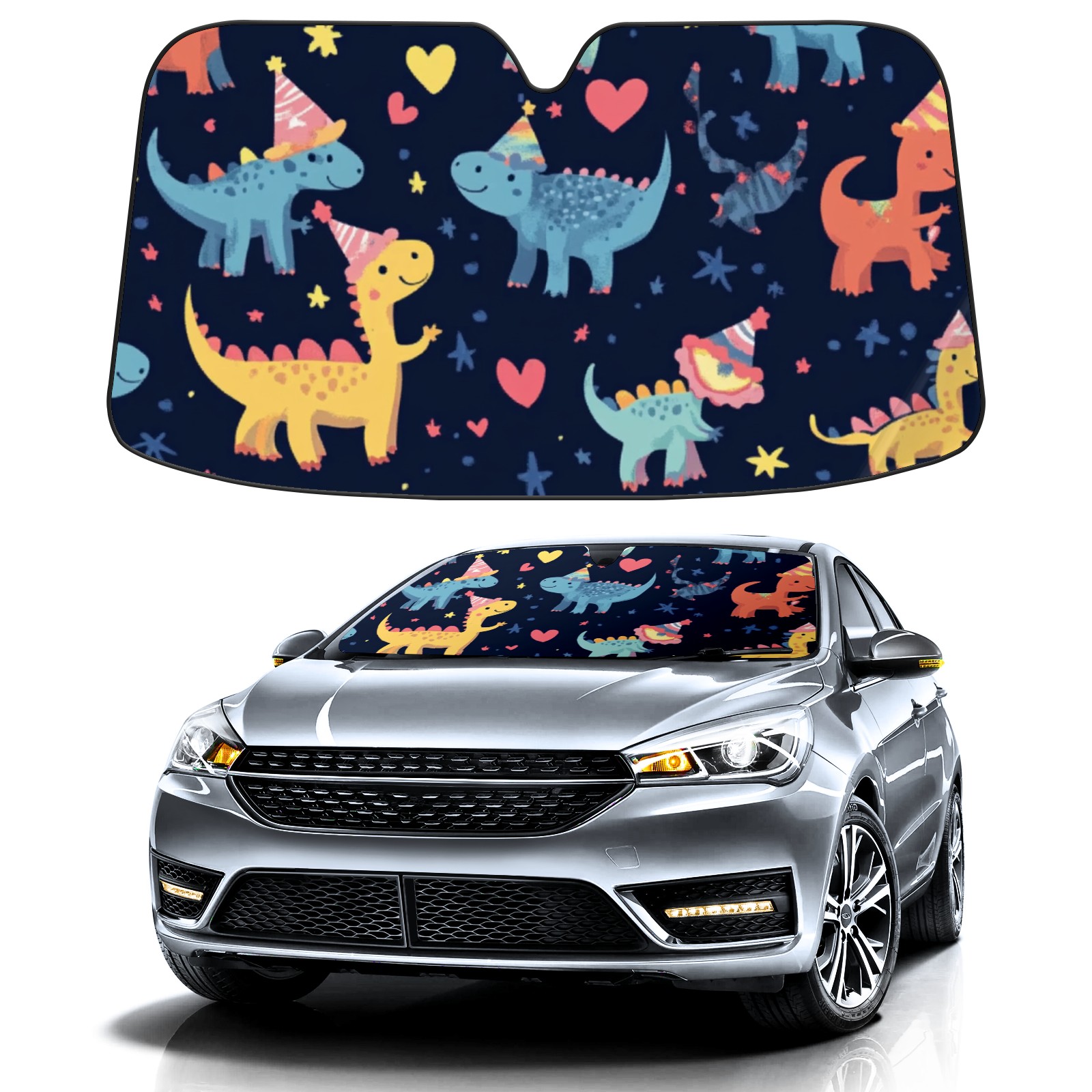 Playful Dinosaurs Car Sun Shade UV Protection Foldable Sunshade for Windshield Heat Insulation Portable Sun Shield for Car Interior Protection Automotive Window Protector