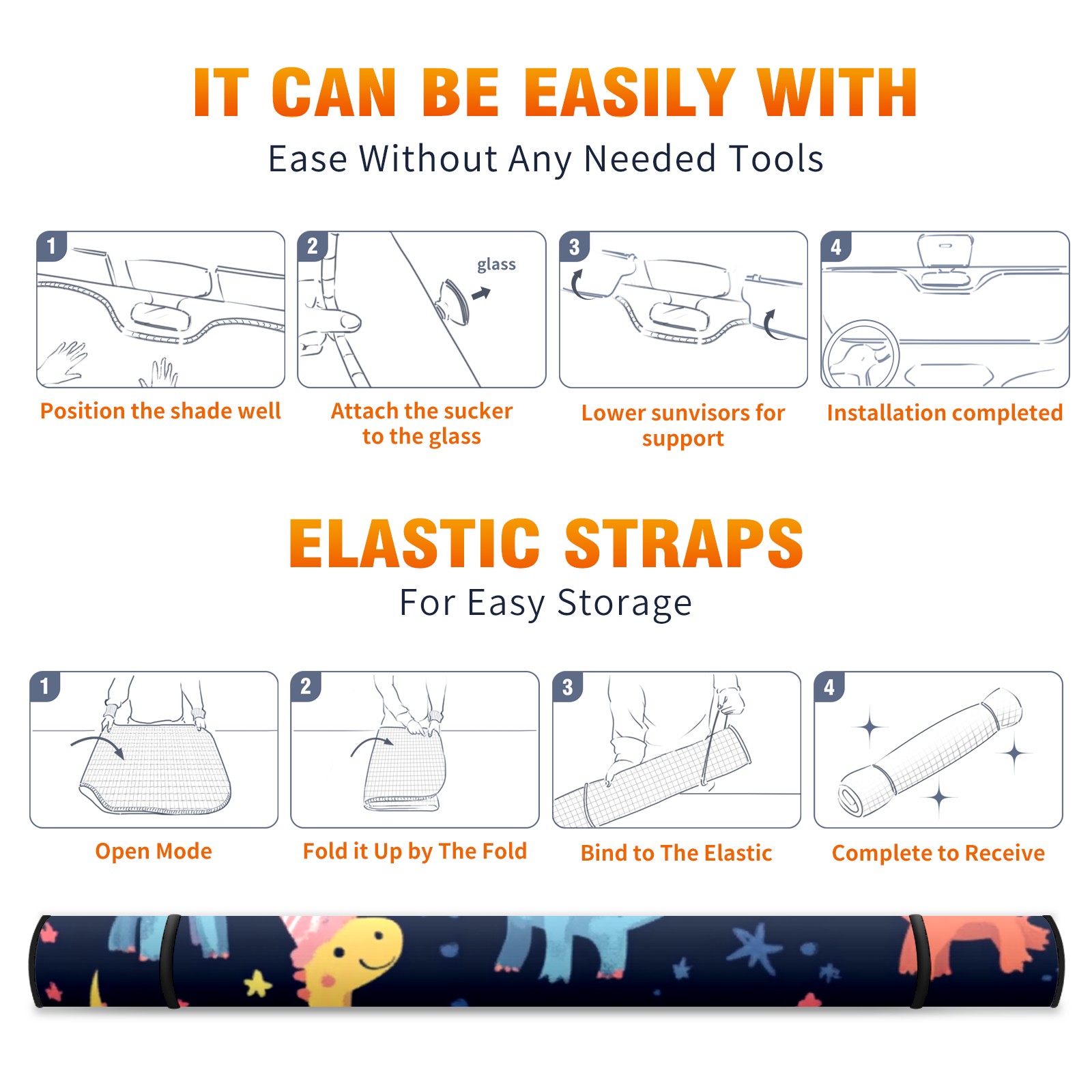 • <p><b>Foldable Premium Car Windshield Sunshade is your great solution to reduce your car’s interior temperature dramatically! This is definitely a must-have item for your summer travel!</b></p><p><b>【Precision Fit, Stylish Protection】</b></p><p>55"x30" (140x76cm) universal size with 3cm flexible margins fits curved windshields of most sedans/SUVs.</p><p><b>【Blocking Uv Rays &amp; Heat Insulation】</b></p><p>Our vehicle sunshade provides effective UV, sun, and summer heat protection, preventing leather fading and plastic cracking to keep your car interior pristine.</p><p><b>【Zero-Mark Installation &amp; Space-Saving】</b></p><p>Equipped with dual scratch-free silicone suction cups + adjustable straps: Medical-grade silicone cups hold firmly yet remove cleanly. Folds to A3 size (42x30cm x &lt;2cm thick), tucks discreetly into glove compartments or door pockets.&nbsp;</p>