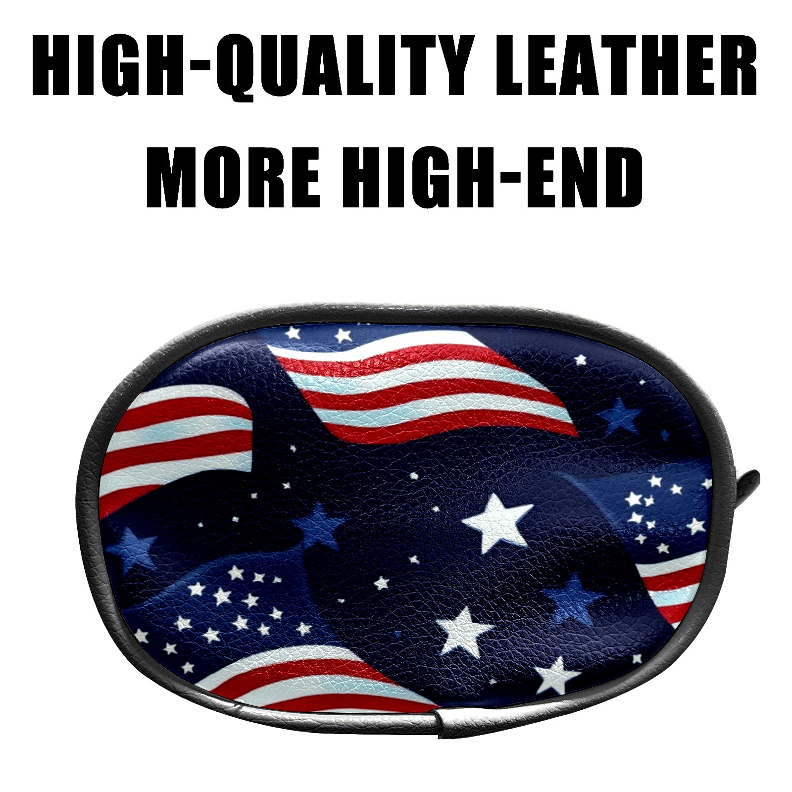 Golf Ball Waist Bag PU Leather Golf Ball Pouch with Belt Clip, Portable Golf Tee Holder & Golf Accessories for Men Women, Golfing Fanny Pack for Balls Tees Valuables (Realistic Waving American Flags)