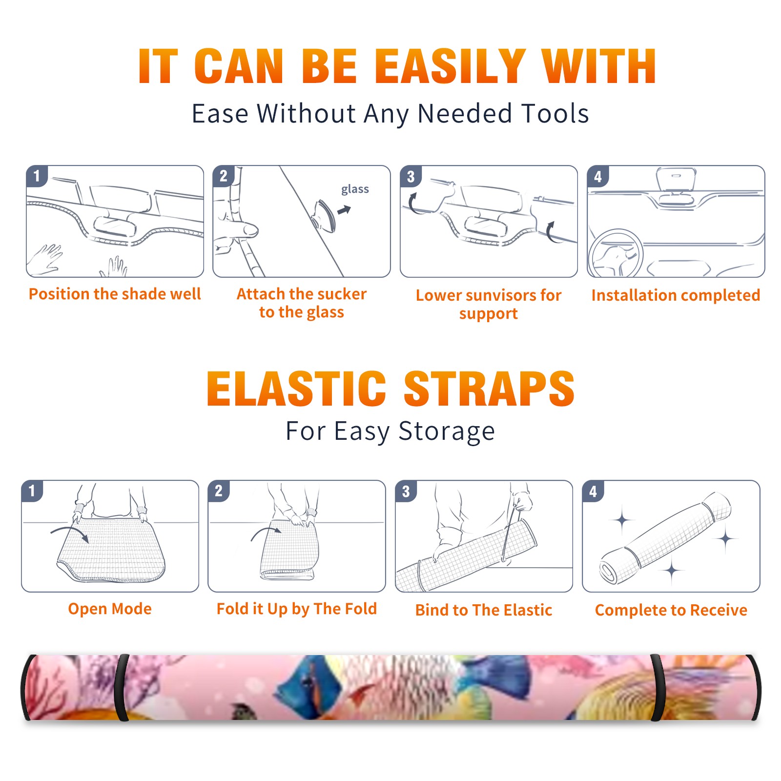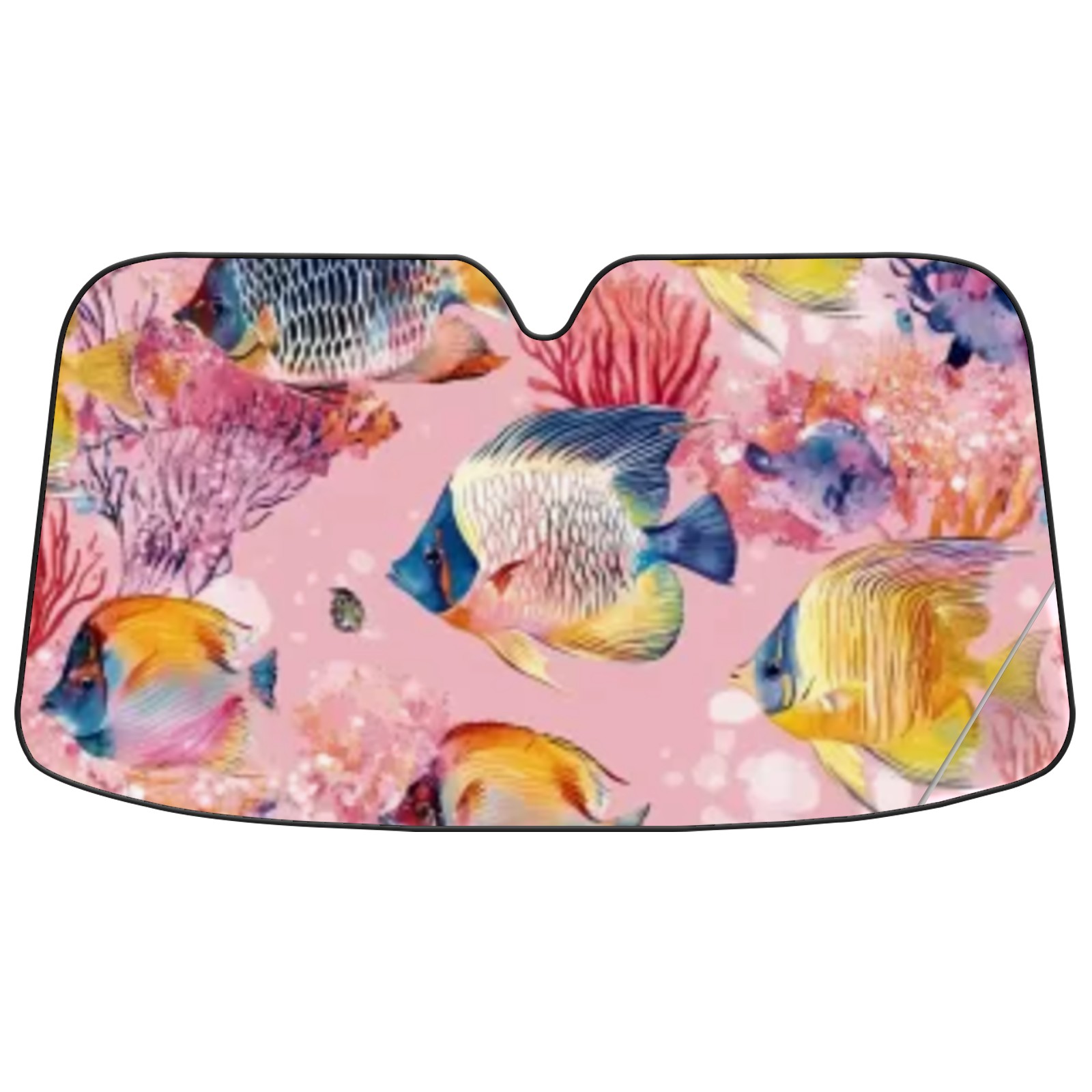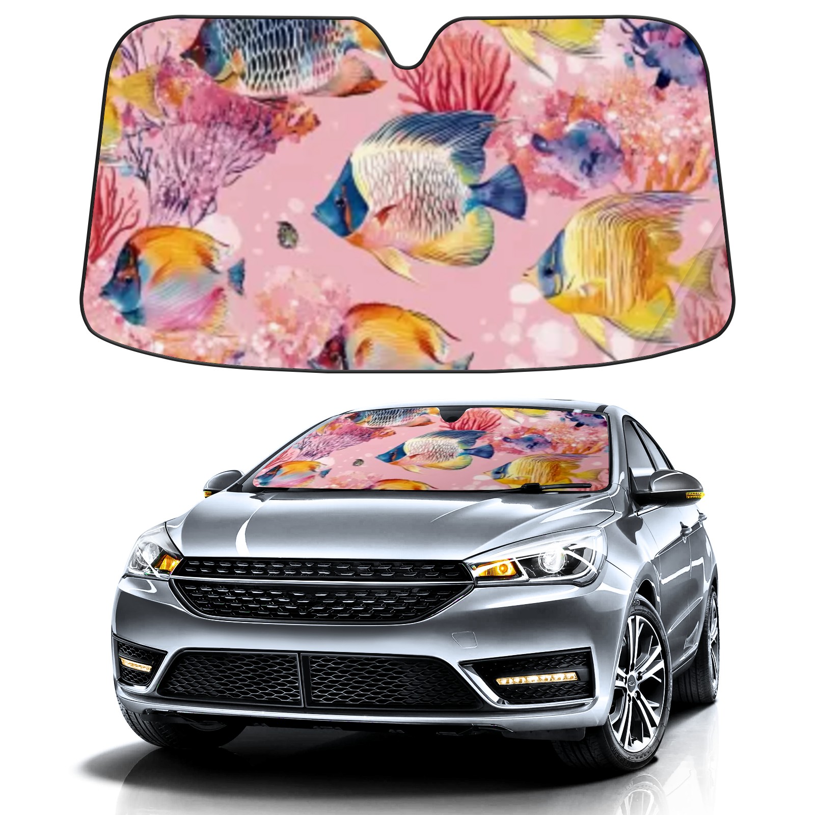 Tropical Fish Car Sun Shade UV Protection Foldable Sunshade for Windshield Heat Insulation Portable Sun Shield for Car Interior Protection Automotive Window Protector