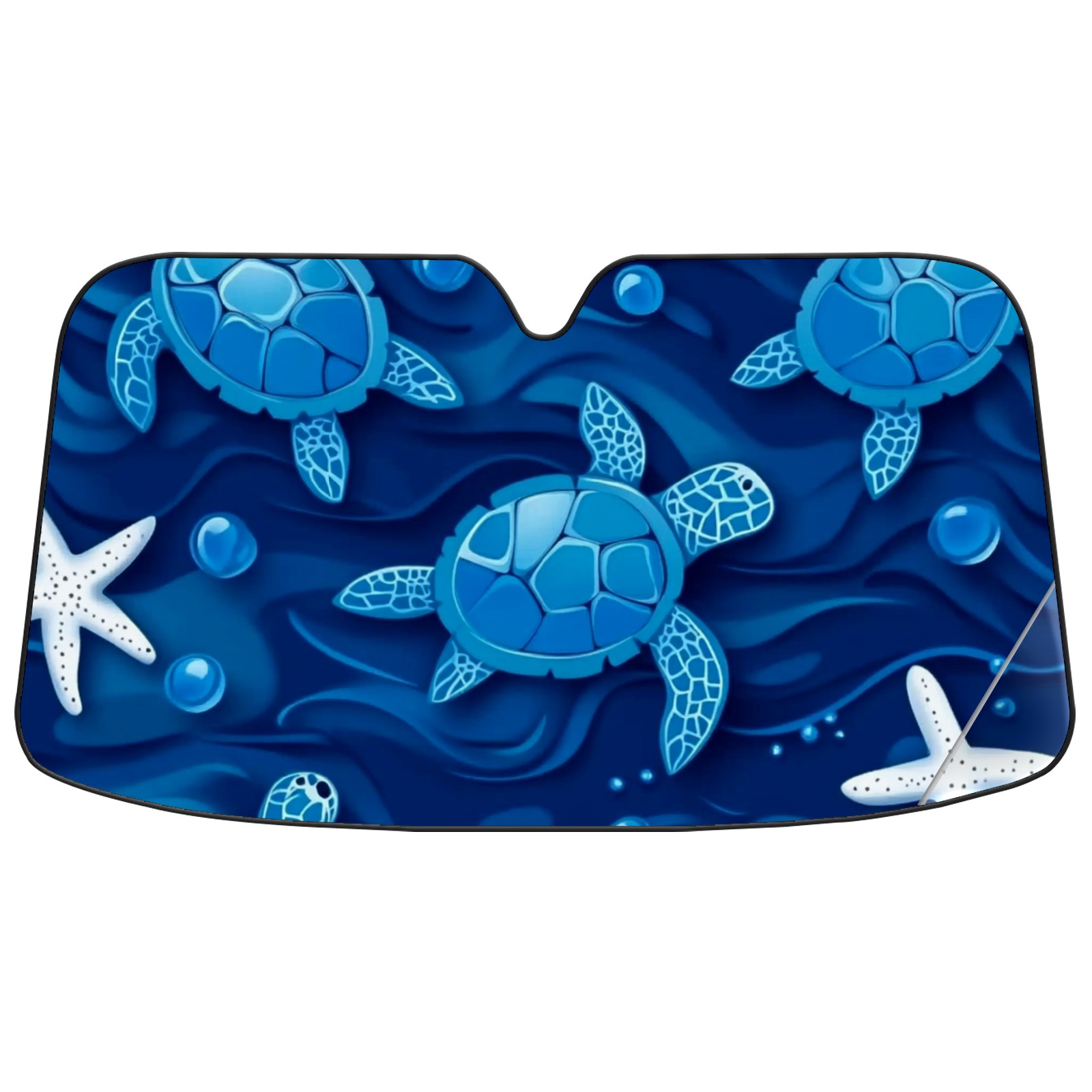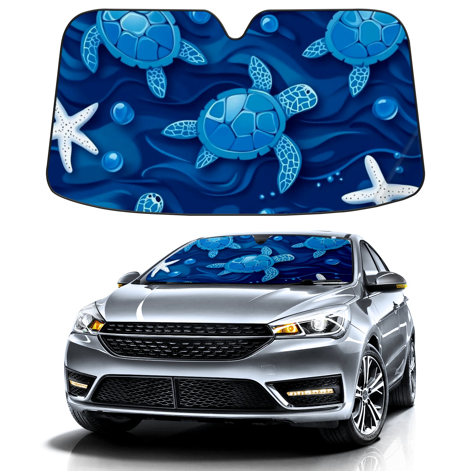 Blue Sea Turtles And White Starfish Car Sun Shade UV Protection Foldable Sunshade for Windshield Heat Insulation Portable Sun Shield for Car Interior Protection Automotive Window Protector