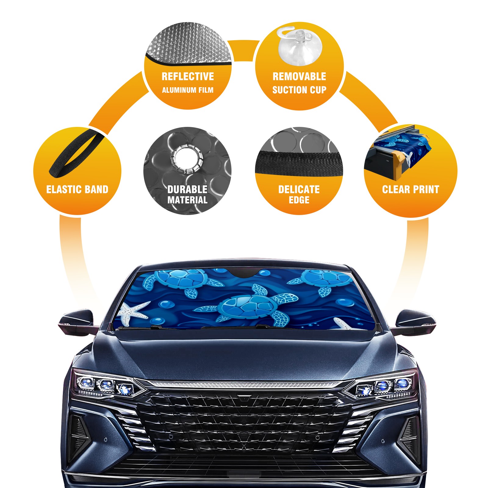 • <p><b>Foldable Premium Car Windshield Sunshade is your great solution to reduce your car’s interior temperature dramatically! This is definitely a must-have item for your summer travel!</b></p><p><b>【Precision Fit, Stylish Protection】</b></p><p>55"x30" (140x76cm) universal size with 3cm flexible margins fits curved windshields of most sedans/SUVs.</p><p><b>【Blocking Uv Rays &amp; Heat Insulation】</b></p><p>Our vehicle sunshade provides effective UV, sun, and summer heat protection, preventing leather fading and plastic cracking to keep your car interior pristine.</p><p><b>【Zero-Mark Installation &amp; Space-Saving】</b></p><p>Equipped with dual scratch-free silicone suction cups + adjustable straps: Medical-grade silicone cups hold firmly yet remove cleanly. Folds to A3 size (42x30cm x &lt;2cm thick), tucks discreetly into glove compartments or door pockets.&nbsp;</p>