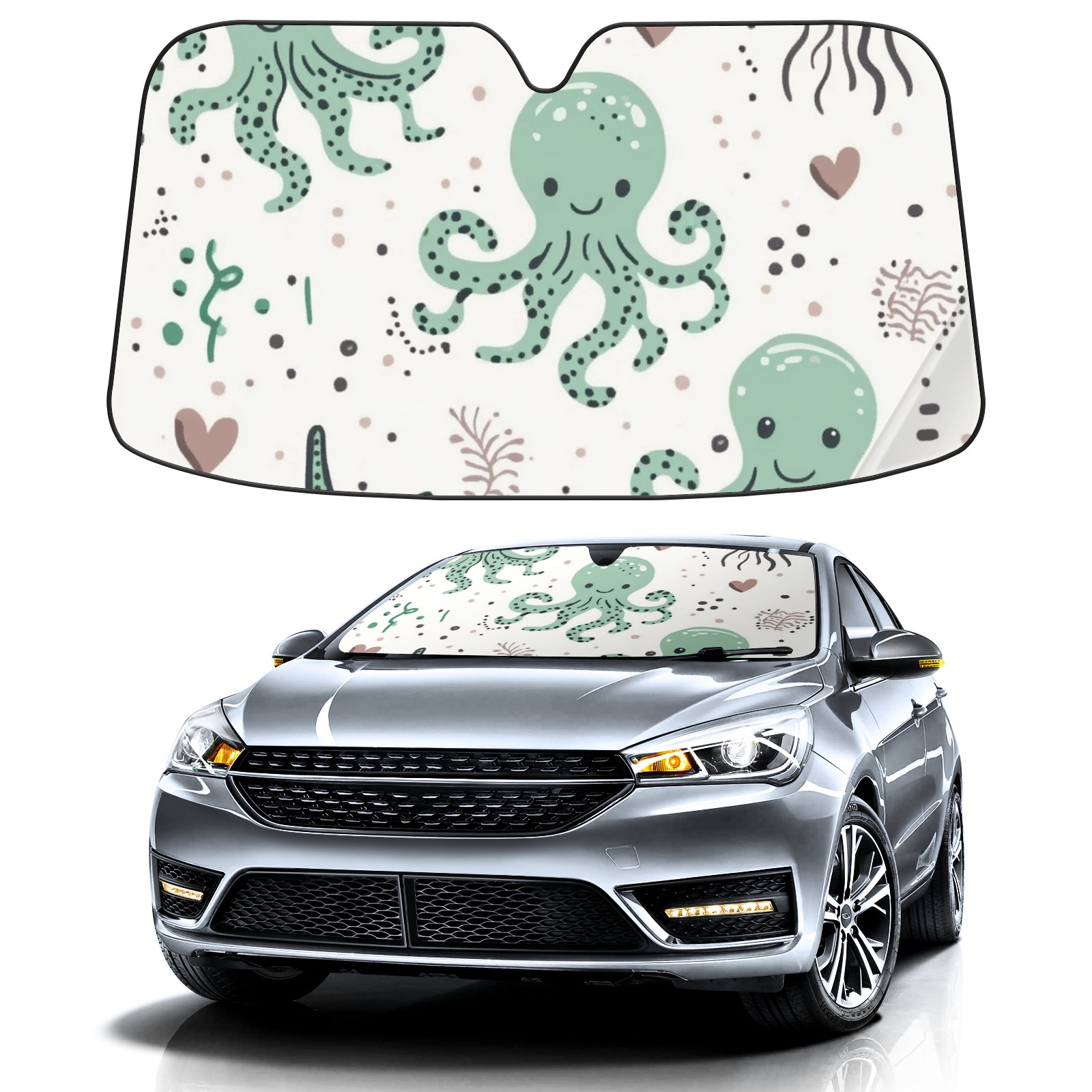 Cute Octopuses Car Sun Shade UV Protection Foldable Sunshade for Windshield Heat Insulation Portable Sun Shield for Car Interior Protection Automotive Window Protector