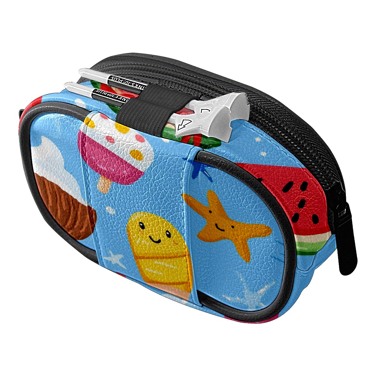 Golf Ball Waist Bag PU Leather Golf Ball Pouch with Belt Clip, Portable Golf Tee Holder & Golf Accessories for Men Women, Golfing Fanny Pack for Balls Tees Valuables (Ice Cream And Watermelon)