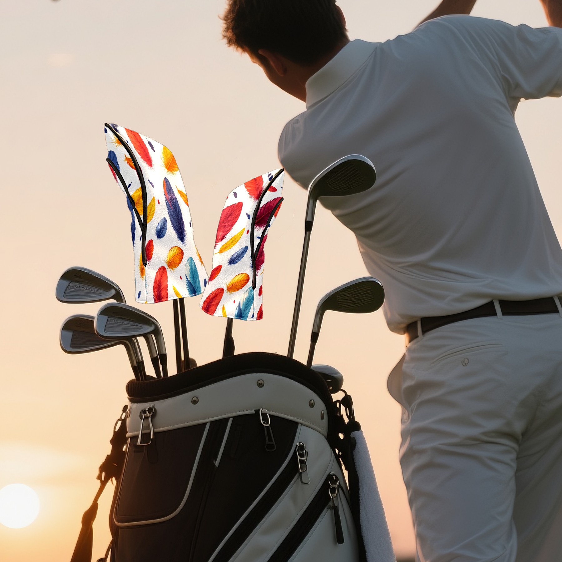 <p>The cover of our golf clubs is made of high quality PU leather, which gives the cover a sleek and smooth appearance, and the tough and wear-resistant characteristics make it fearless of long-term use and all kinds of complicated environments, as well as excellent waterproof and stain-resistant performance, and always maintains a delicate appearance. The soft velvet lining inside is the guardian of the clubs, the delicate material can effectively cushion the impact of the outside world, and always protect the clubs from scratches and abrasions, to ensure that the clubs are in as good as new condition every time you play. It's also easy to clean and care for, with a simple wipe to remove surface stains and keep the clubs' cover looking polished for years to come. In the design, we have fully considered the needs of different clubs, 15x36cm and 11x26cm two carefully planned sizes, perfect fit for all types of clubs, tightly wrapped without loosening, whether it is carried in the process of shaking, or intense game use, can be a stable guard head of the clubs, providing all-round protection. It is not only a practical club protection equipment, but also a fashionable accessory to show your taste. The simple and atmospheric design adds a touch of unique charm to the golf bag.</p>