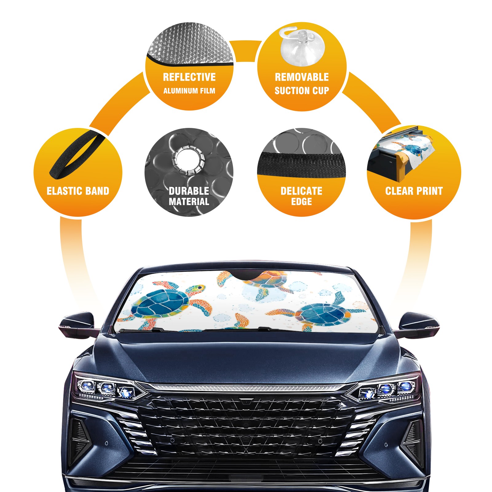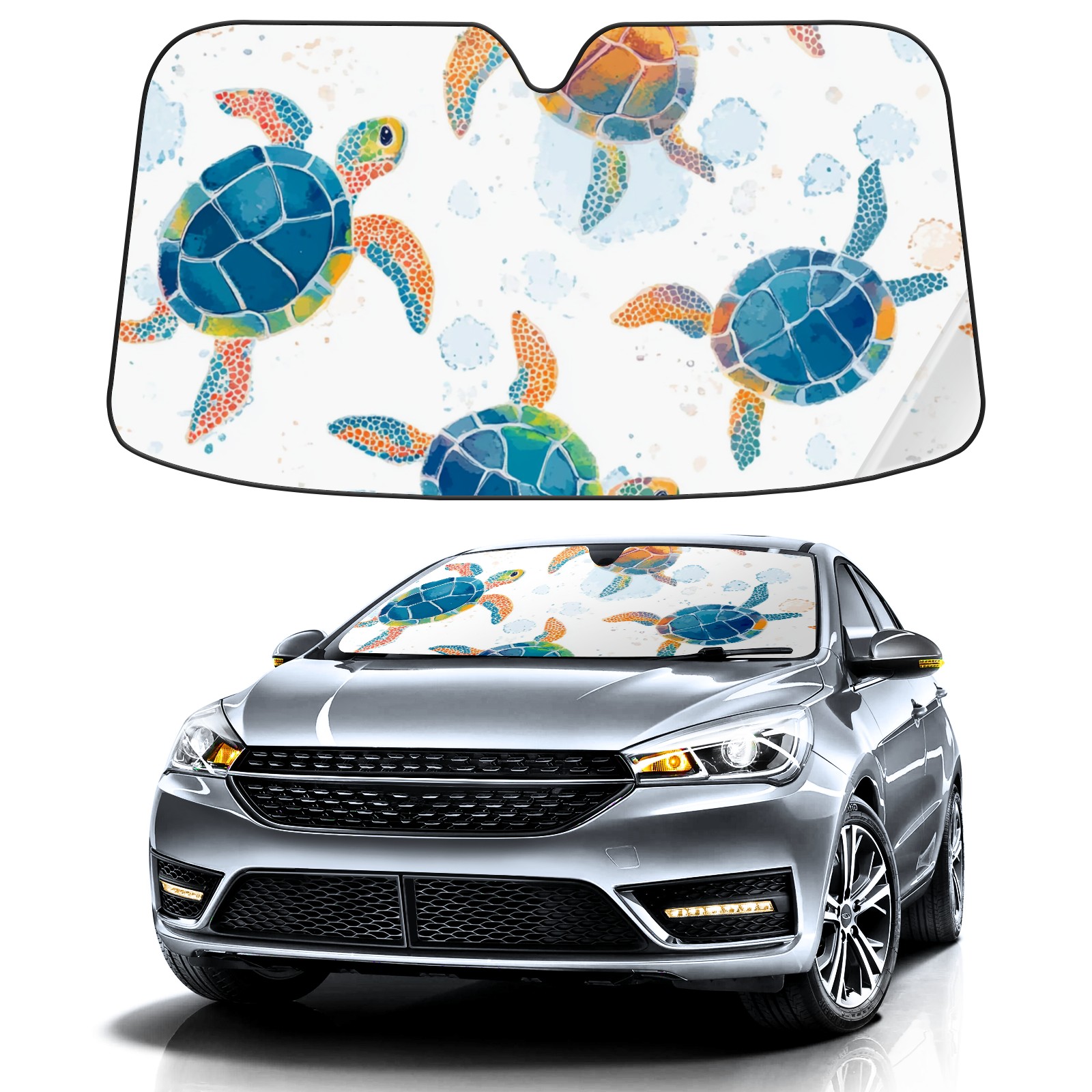 Colorful Sea Turtles Car Sun Shade UV Protection Foldable Sunshade for Windshield Heat Insulation Portable Sun Shield for Car Interior Protection Automotive Window Protector