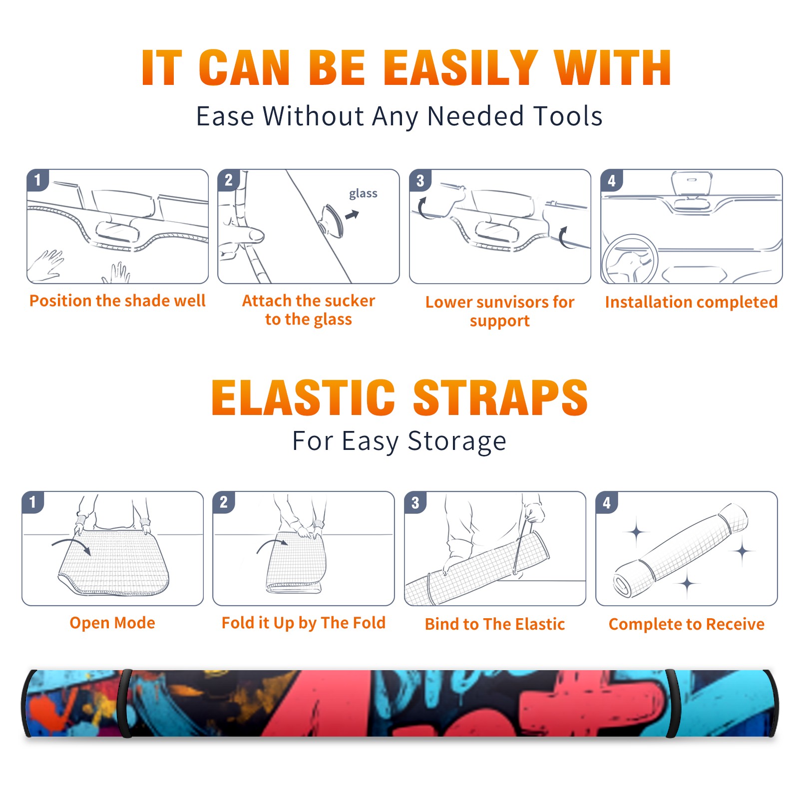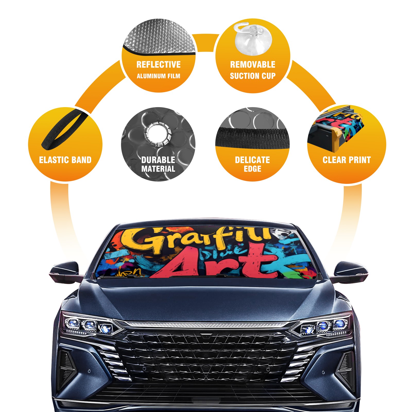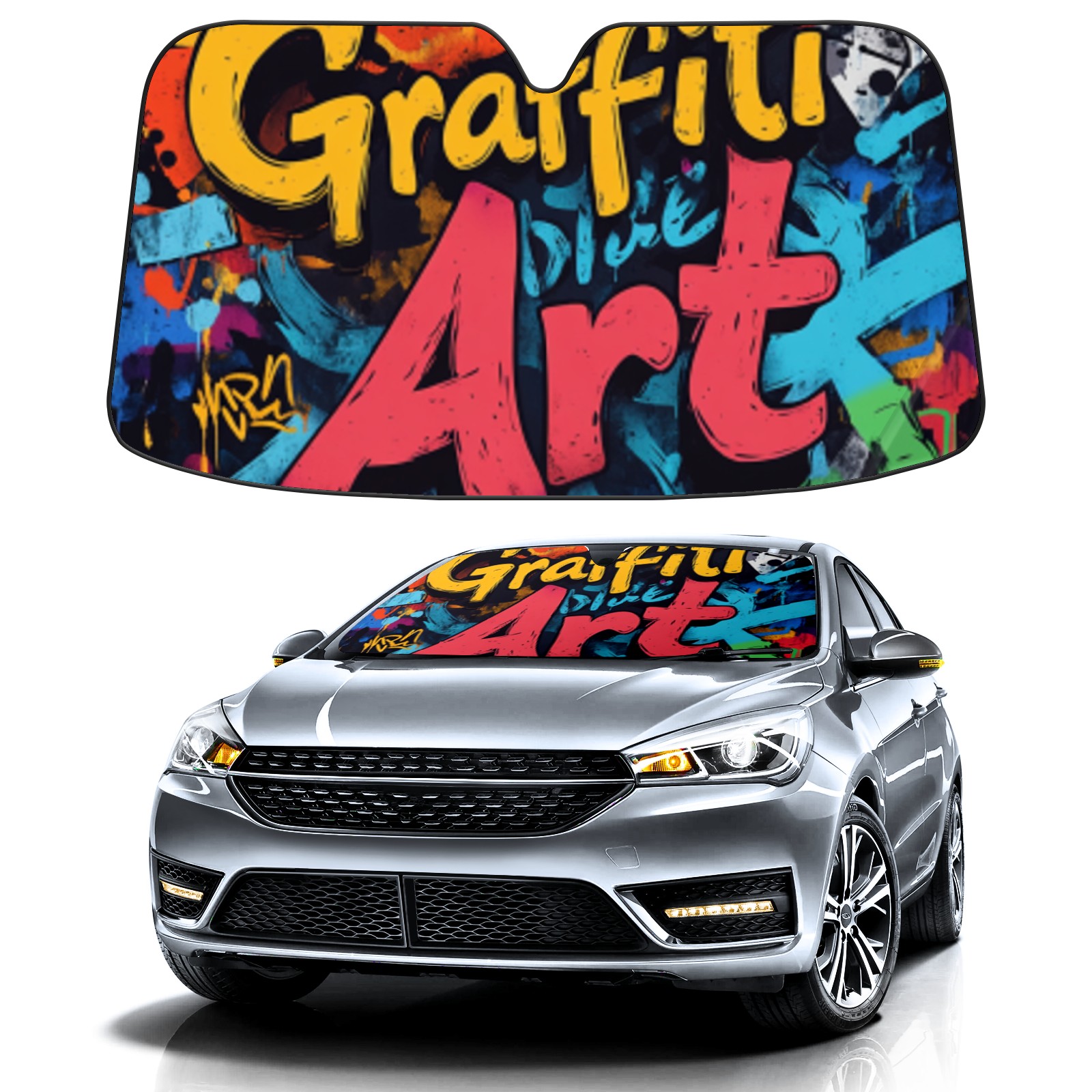 Graffiti Car Sun Shade UV Protection Foldable Sunshade for Windshield Heat Insulation Portable Sun Shield for Car Interior Protection Automotive Window Protector