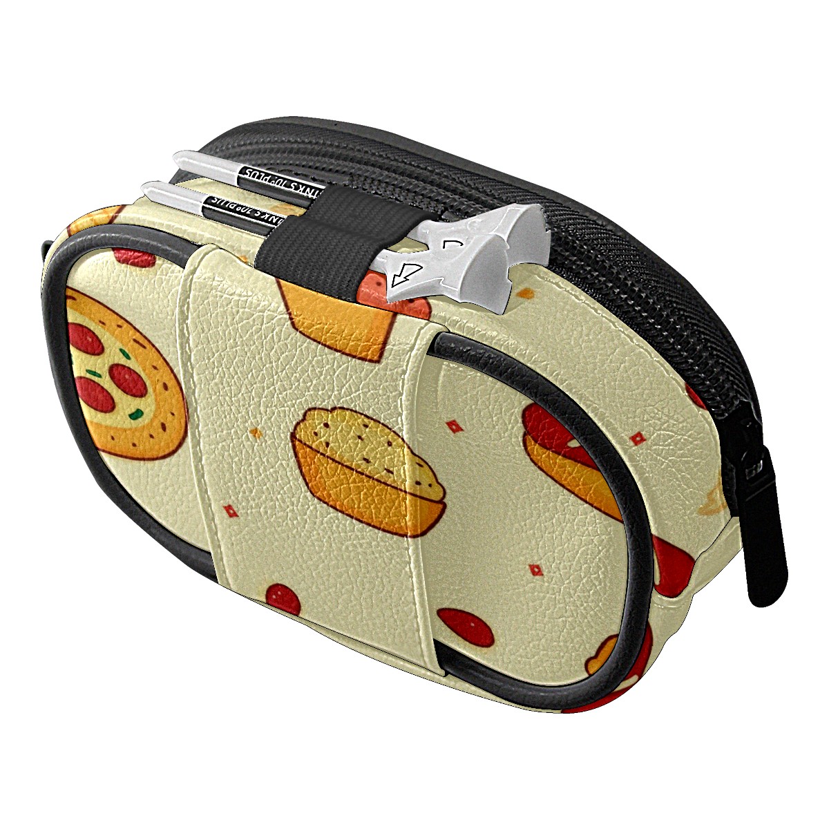 Golf Ball Waist Bag PU Leather Golf Ball Pouch with Belt Clip, Portable Golf Tee Holder & Golf Accessories for Men Women, Golfing Fanny Pack for Balls Tees Valuables (Pizza And Hot Dog)
