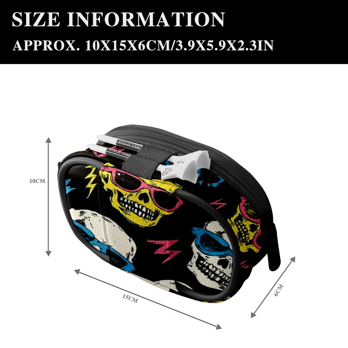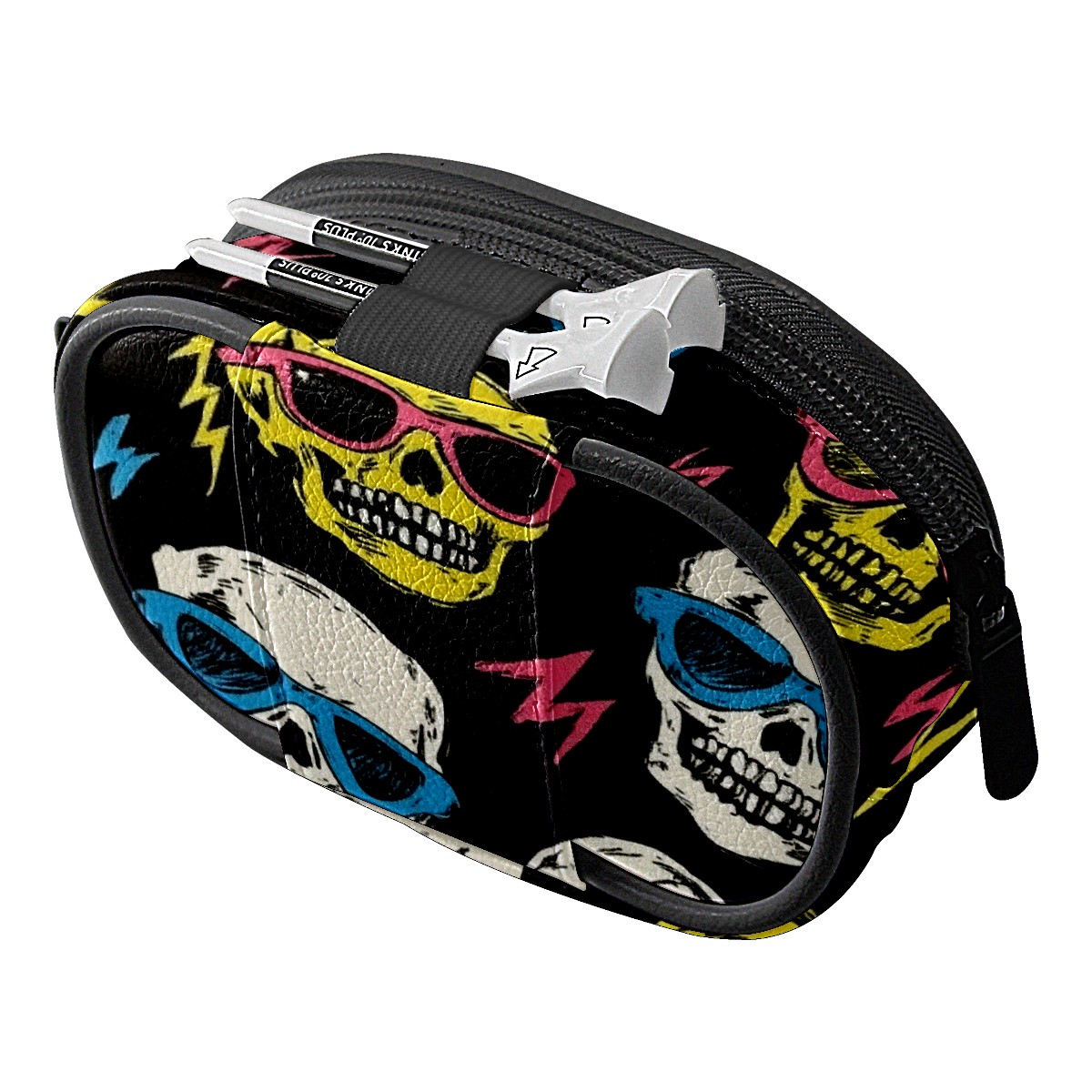 Golf Ball Waist Bag PU Leather Golf Ball Pouch with Belt Clip, Portable Golf Tee Holder & Golf Accessories for Men Women, Golfing Fanny Pack for Balls Tees Valuables (Colorful Cartoon Skulls)