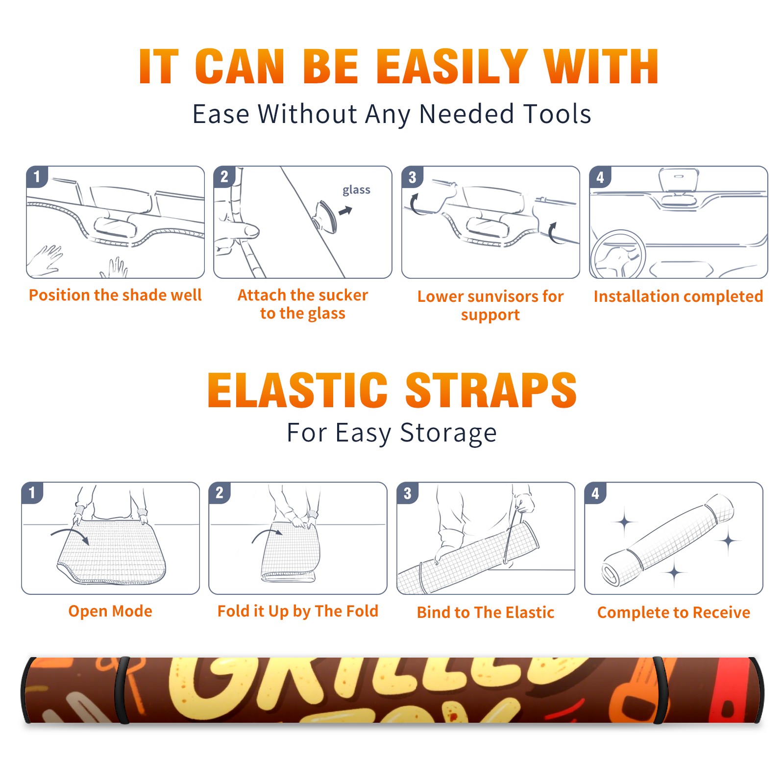 Food Car Sun Shade UV Protection Foldable Sunshade for Windshield Heat Insulation Portable Sun Shield for Car Interior Protection Automotive Window Protector