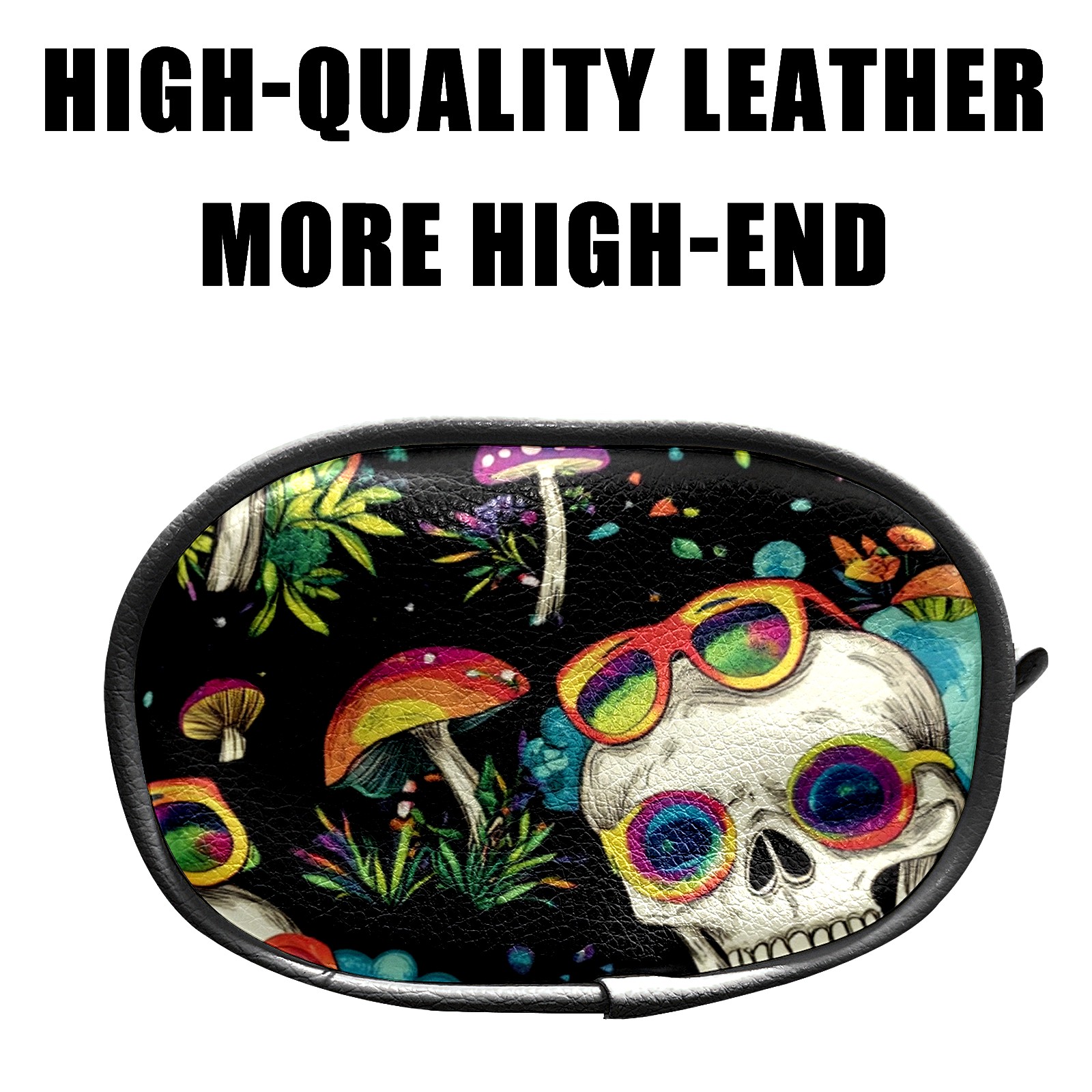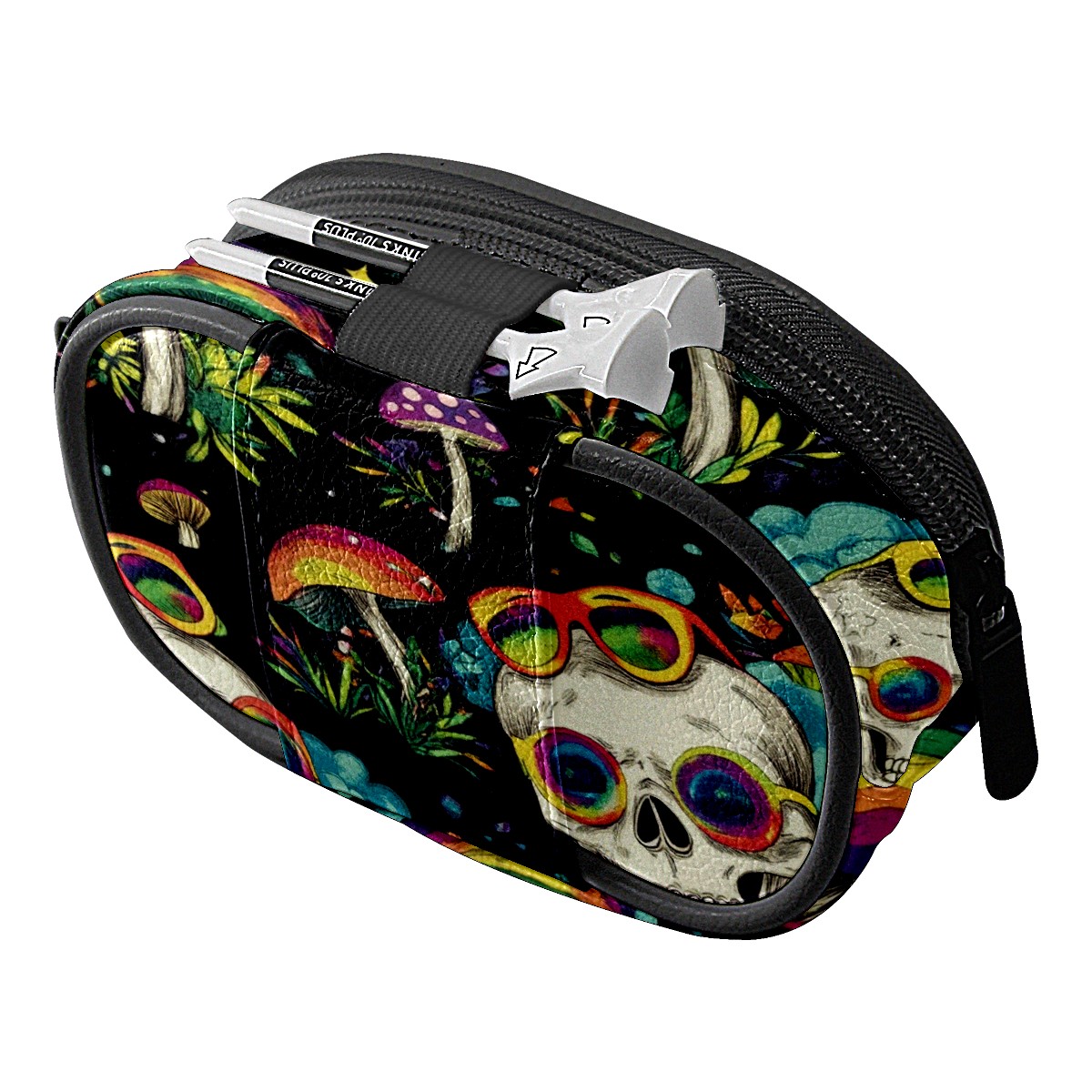 Golf Ball Waist Bag PU Leather Golf Ball Pouch with Belt Clip, Portable Golf Tee Holder & Golf Accessories for Men Women, Golfing Fanny Pack for Balls Tees Valuables (Skulls With Rainbow Eyes)
