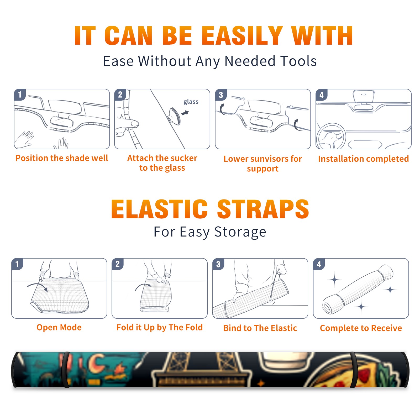 <p><b>Foldable Premium Car Windshield Sunshade is your great solution to reduce your car’s interior temperature dramatically! This is definitely a must-have item for your summer travel!</b></p><p><b>【Precision Fit, Stylish Protection】</b></p><p>55"x30" (140x76cm) universal size with 3cm flexible margins fits curved windshields of most sedans/SUVs.</p><p><b>【Blocking Uv Rays &amp; Heat Insulation】</b></p><p>Our vehicle sunshade provides effective UV, sun, and summer heat protection, preventing leather fading and plastic cracking to keep your car interior pristine.</p><p><b>【Zero-Mark Installation &amp; Space-Saving】</b></p><p>Equipped with dual scratch-free silicone suction cups + adjustable straps: Medical-grade silicone cups hold firmly yet remove cleanly. Folds to A3 size (42x30cm x &lt;2cm thick), tucks discreetly into glove compartments or door pockets.&nbsp;</p>