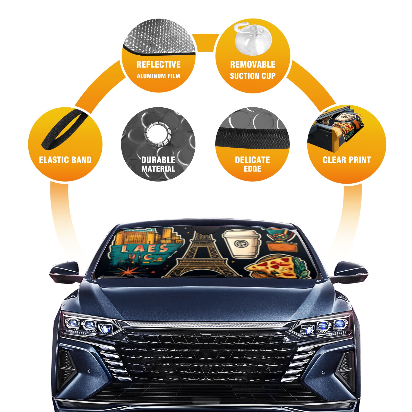 • <p><b>Foldable Premium Car Windshield Sunshade is your great solution to reduce your car’s interior temperature dramatically! This is definitely a must-have item for your summer travel!</b></p><p><b>【Precision Fit, Stylish Protection】</b></p><p>55"x30" (140x76cm) universal size with 3cm flexible margins fits curved windshields of most sedans/SUVs.</p><p><b>【Blocking Uv Rays &amp; Heat Insulation】</b></p><p>Our vehicle sunshade provides effective UV, sun, and summer heat protection, preventing leather fading and plastic cracking to keep your car interior pristine.</p><p><b>【Zero-Mark Installation &amp; Space-Saving】</b></p><p>Equipped with dual scratch-free silicone suction cups + adjustable straps: Medical-grade silicone cups hold firmly yet remove cleanly. Folds to A3 size (42x30cm x &lt;2cm thick), tucks discreetly into glove compartments or door pockets.&nbsp;</p>