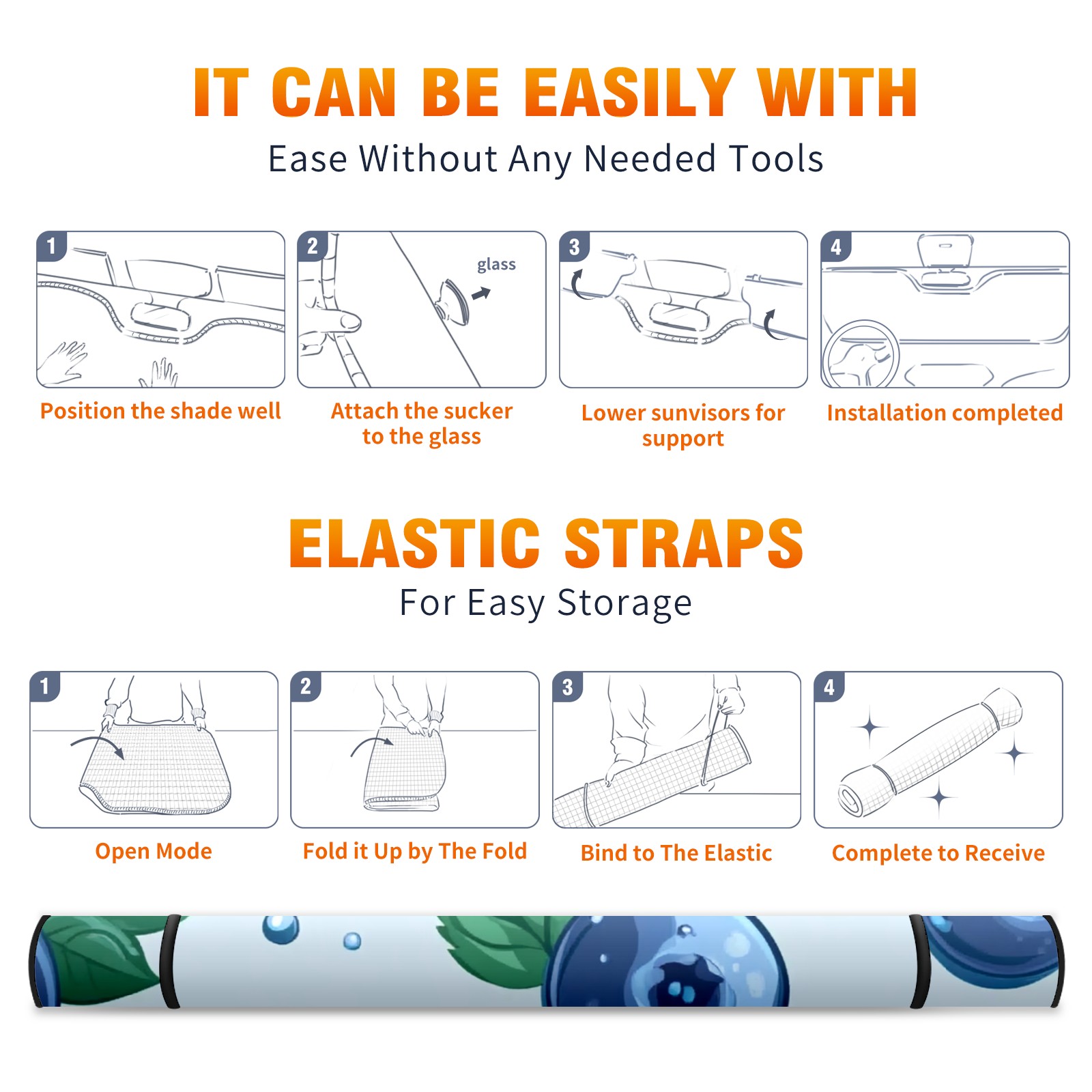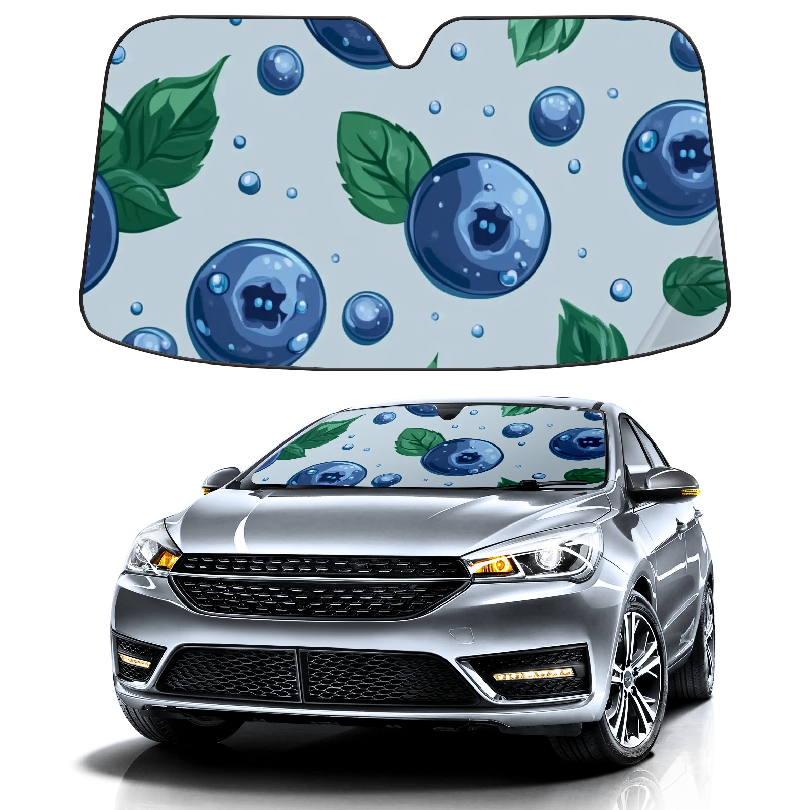 Blueberry Car Sun Shade UV Protection Foldable Sunshade for Windshield Heat Insulation Portable Sun Shield for Car Interior Protection Automotive Window Protector