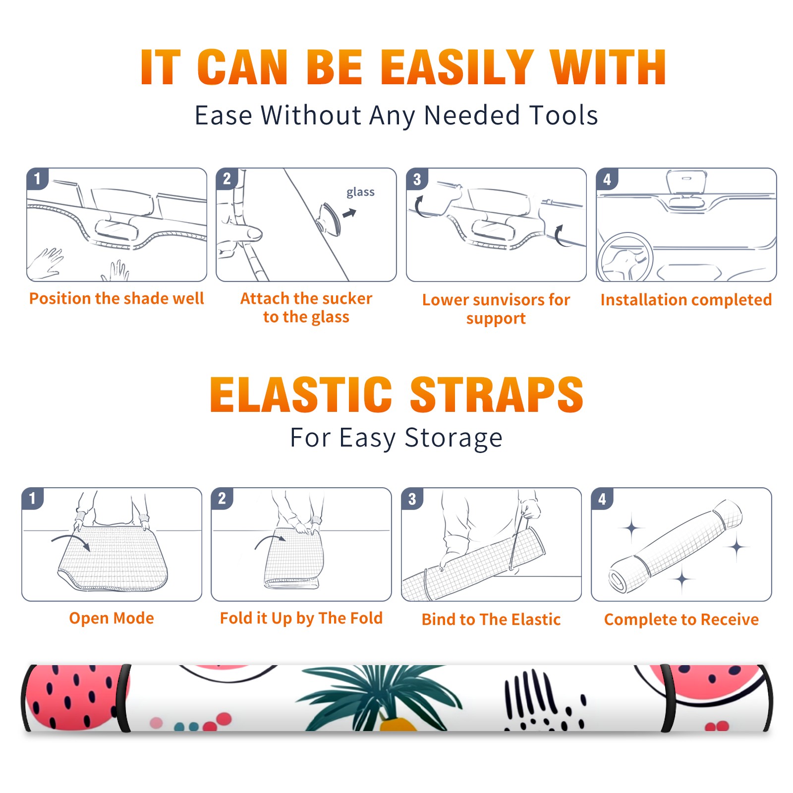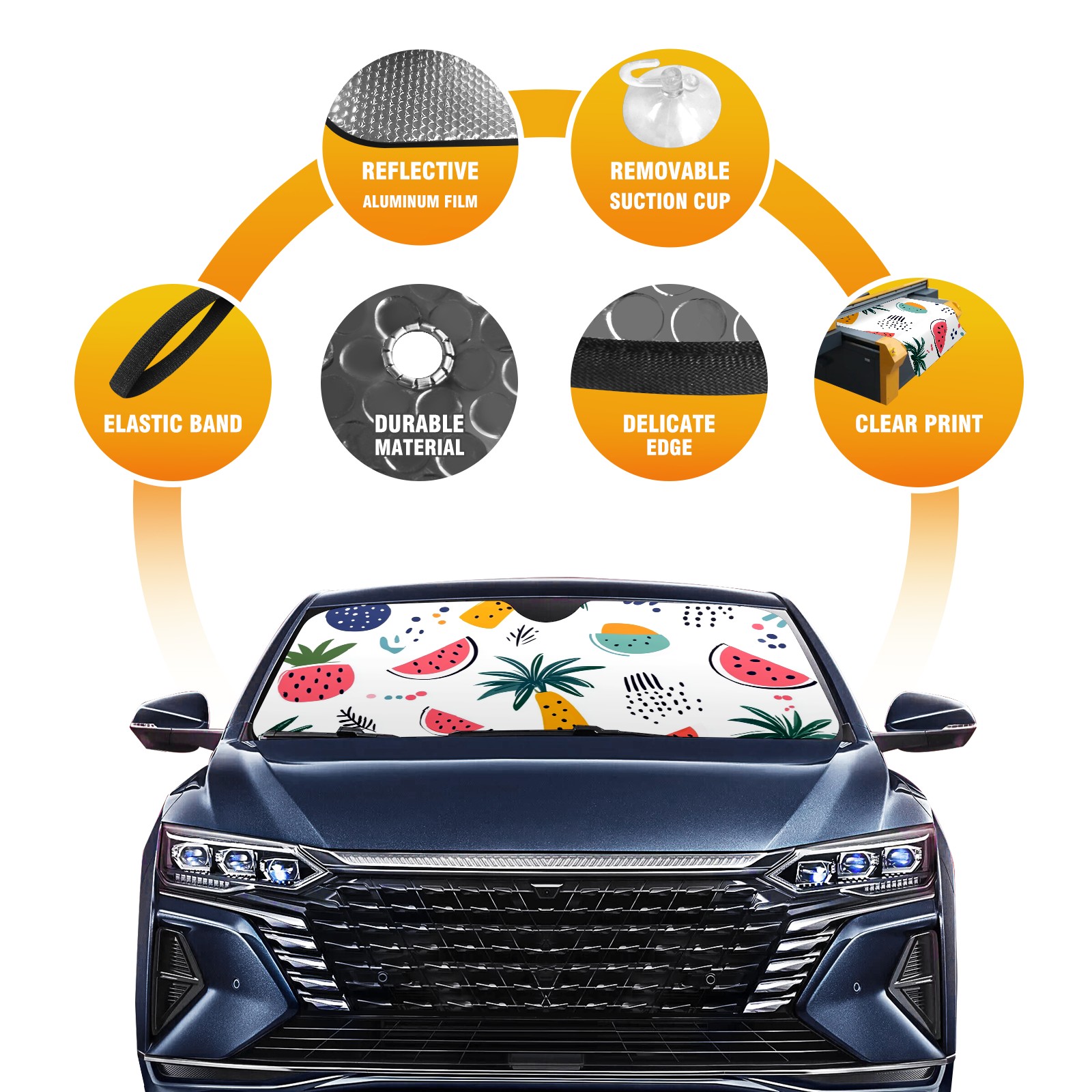 • <p><b>Foldable Premium Car Windshield Sunshade is your great solution to reduce your car’s interior temperature dramatically! This is definitely a must-have item for your summer travel!</b></p><p><b>【Precision Fit, Stylish Protection】</b></p><p>55"x30" (140x76cm) universal size with 3cm flexible margins fits curved windshields of most sedans/SUVs.</p><p><b>【Blocking Uv Rays &amp; Heat Insulation】</b></p><p>Our vehicle sunshade provides effective UV, sun, and summer heat protection, preventing leather fading and plastic cracking to keep your car interior pristine.</p><p><b>【Zero-Mark Installation &amp; Space-Saving】</b></p><p>Equipped with dual scratch-free silicone suction cups + adjustable straps: Medical-grade silicone cups hold firmly yet remove cleanly. Folds to A3 size (42x30cm x &lt;2cm thick), tucks discreetly into glove compartments or door pockets.&nbsp;</p>