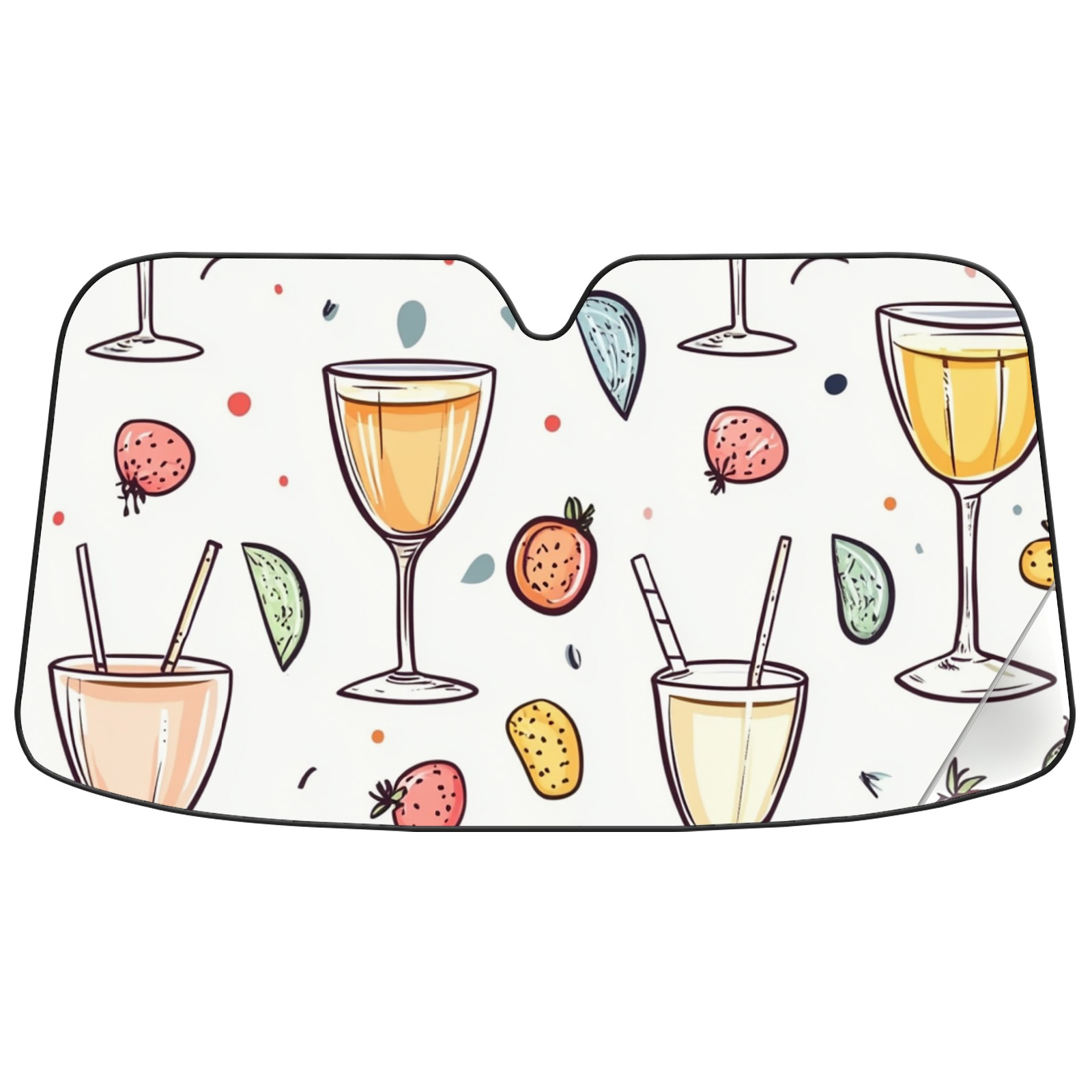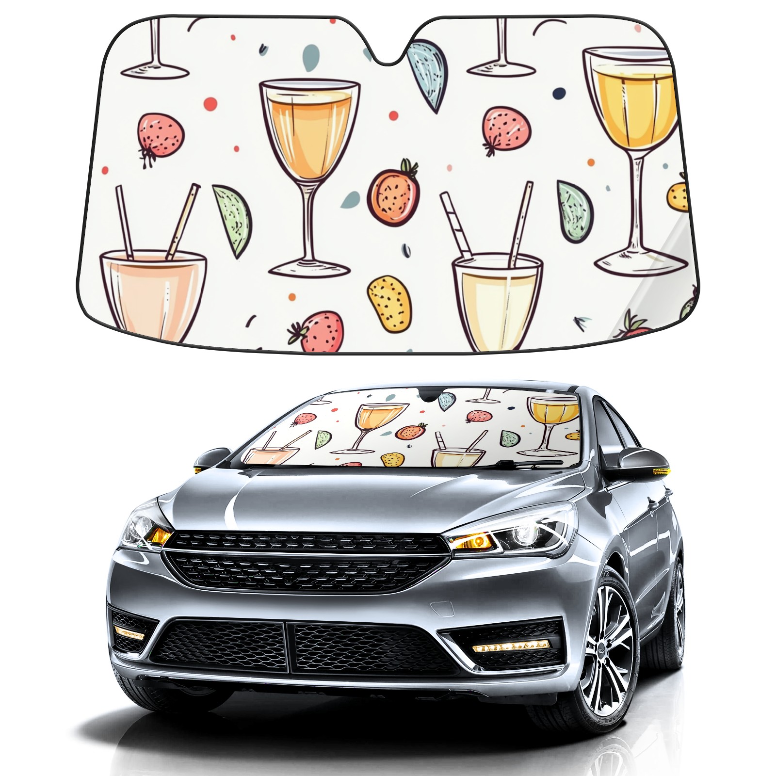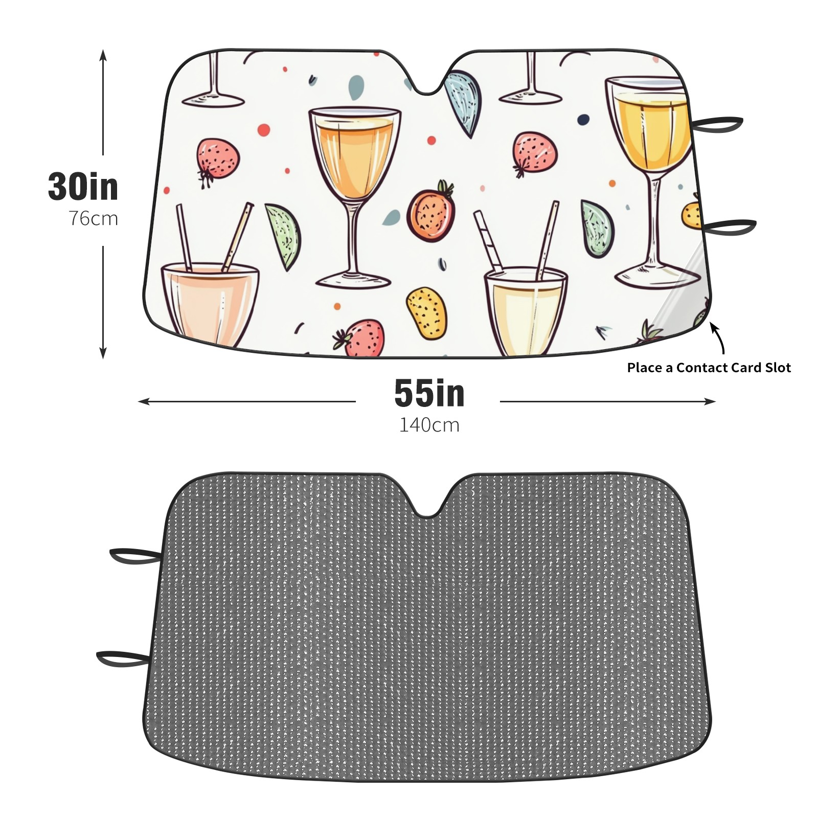 Champagne Glasses Pattern Car Sun Shade UV Protection Foldable Sunshade for Windshield Heat Insulation Portable Sun Shield for Car Interior Protection Automotive Window Protector
