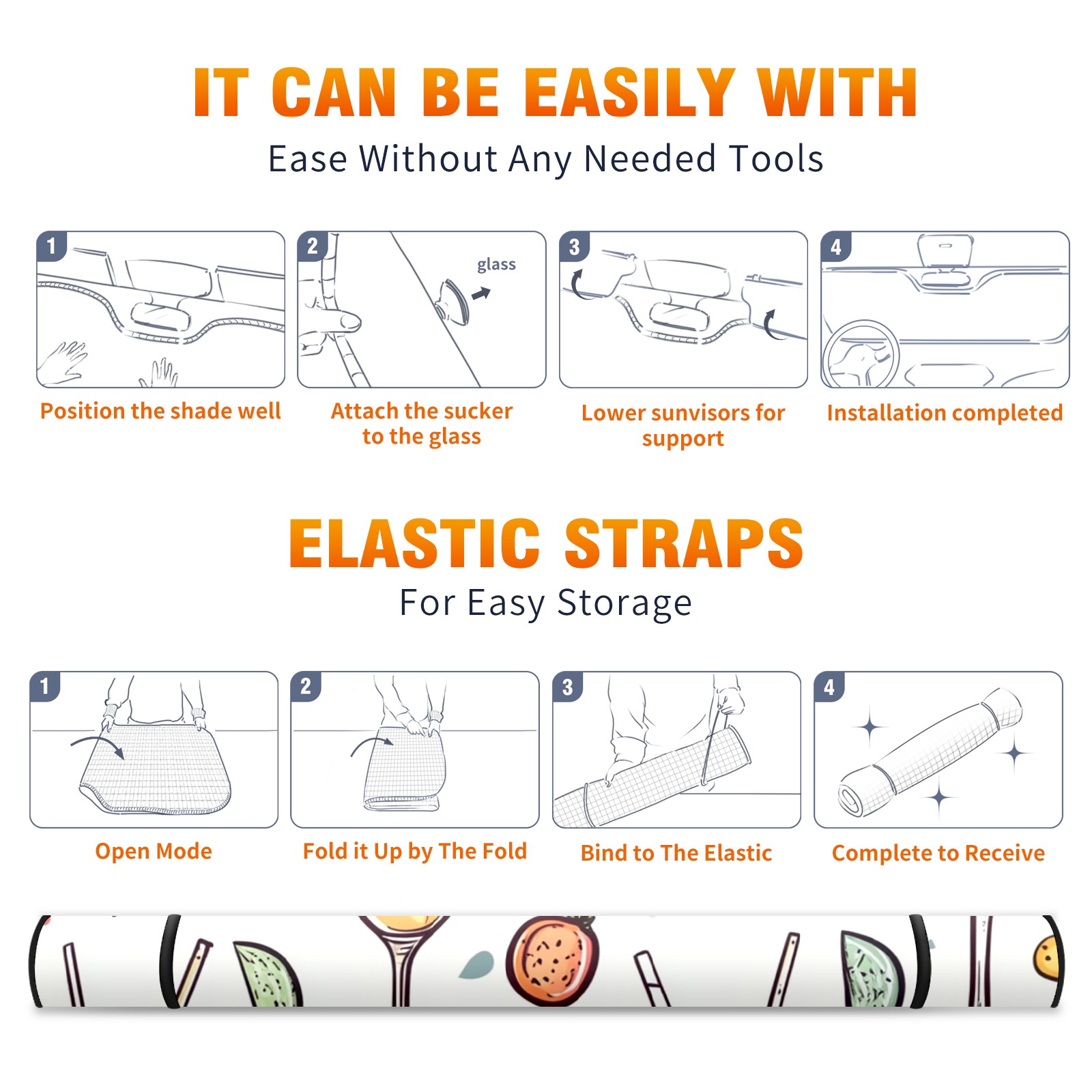 • <p><b>Foldable Premium Car Windshield Sunshade is your great solution to reduce your car’s interior temperature dramatically! This is definitely a must-have item for your summer travel!</b></p><p><b>【Precision Fit, Stylish Protection】</b></p><p>55"x30" (140x76cm) universal size with 3cm flexible margins fits curved windshields of most sedans/SUVs.</p><p><b>【Blocking Uv Rays &amp; Heat Insulation】</b></p><p>Our vehicle sunshade provides effective UV, sun, and summer heat protection, preventing leather fading and plastic cracking to keep your car interior pristine.</p><p><b>【Zero-Mark Installation &amp; Space-Saving】</b></p><p>Equipped with dual scratch-free silicone suction cups + adjustable straps: Medical-grade silicone cups hold firmly yet remove cleanly. Folds to A3 size (42x30cm x &lt;2cm thick), tucks discreetly into glove compartments or door pockets.&nbsp;</p>