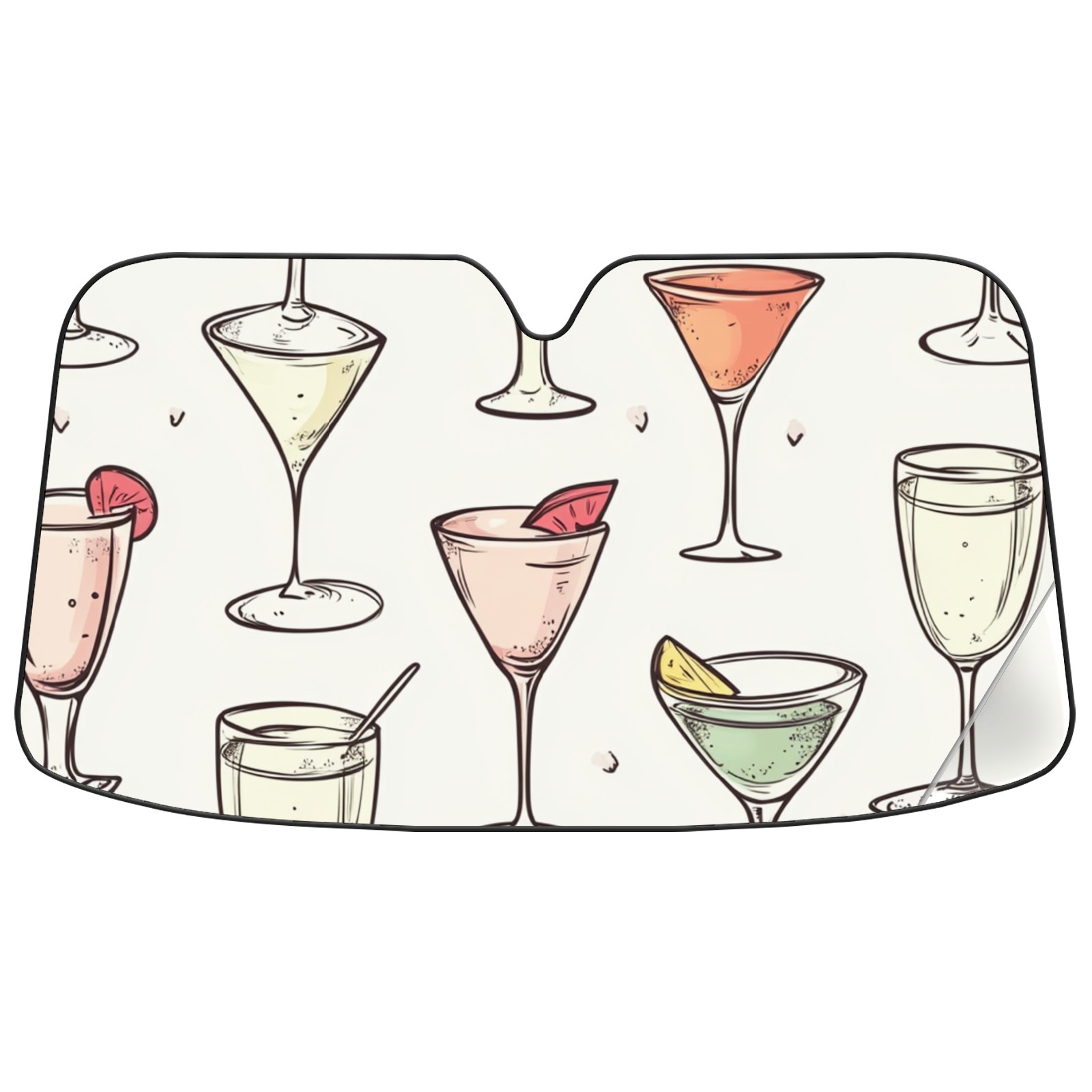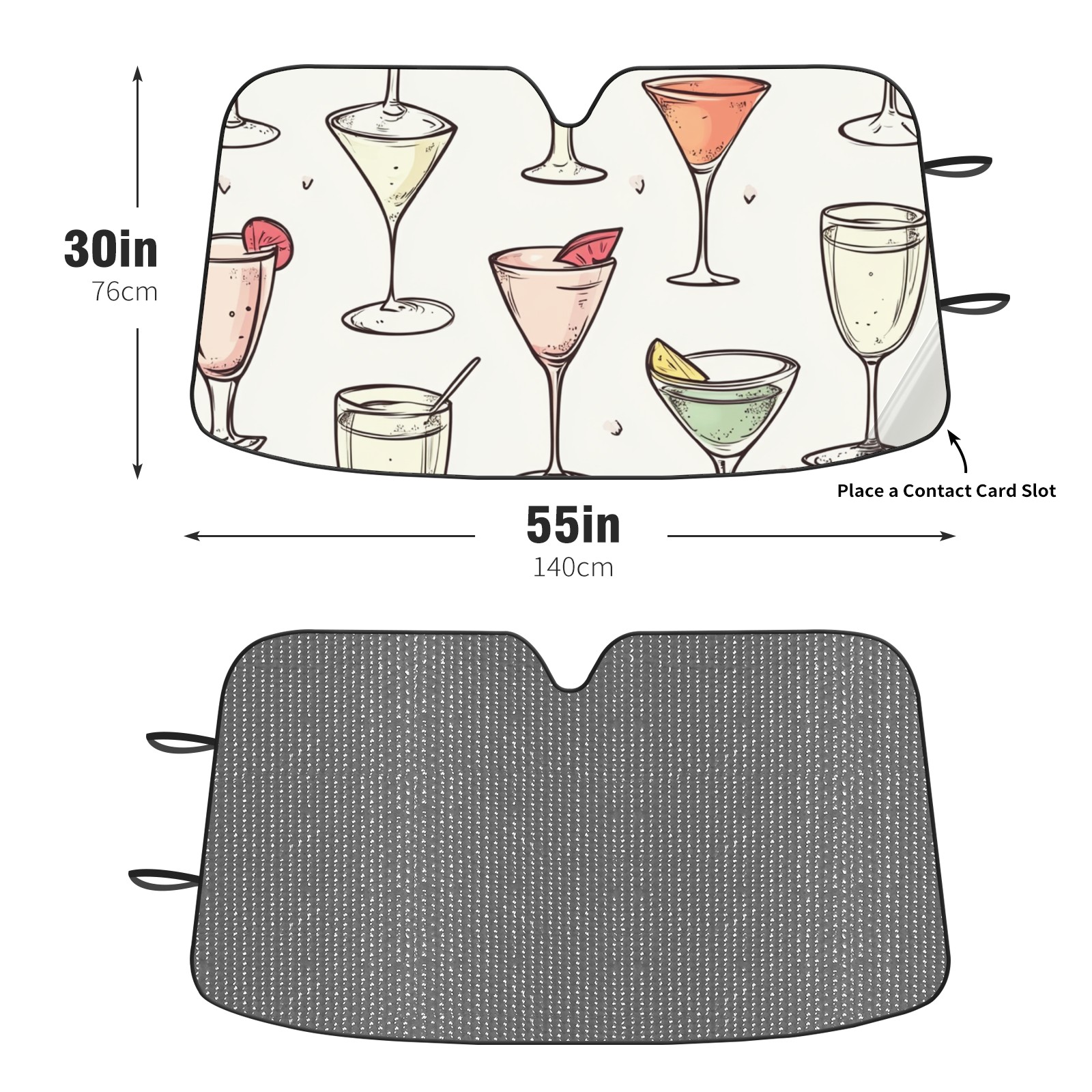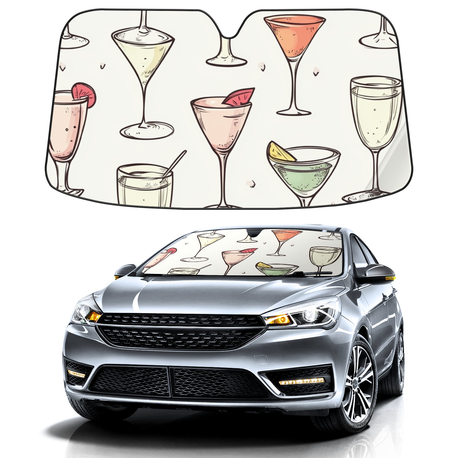 Champagne Glasses Car Sun Shade UV Protection Foldable Sunshade for Windshield Heat Insulation Portable Sun Shield for Car Interior Protection Automotive Window Protector