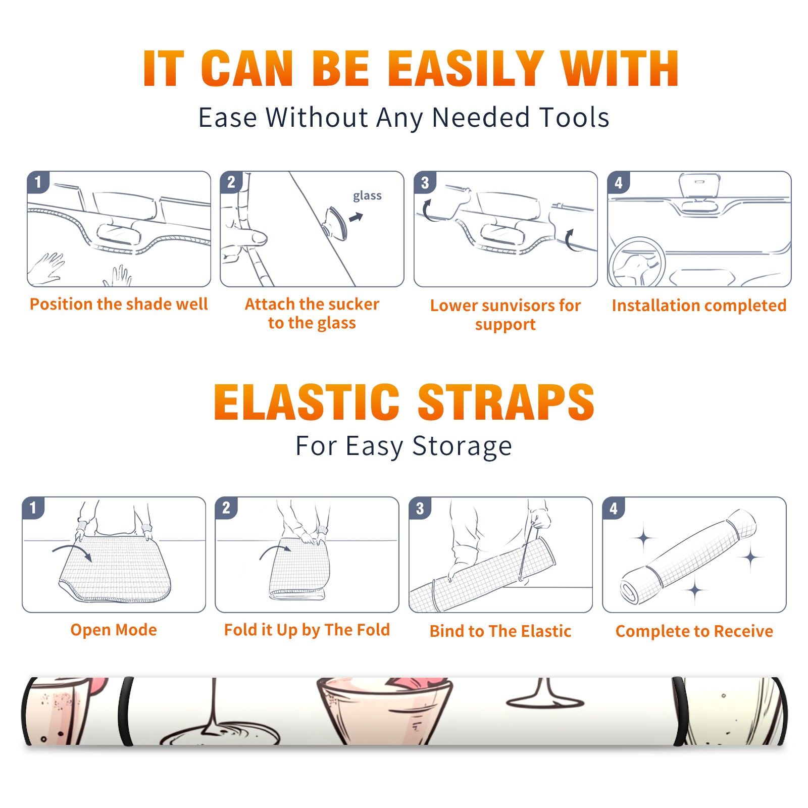 • <p><b>Foldable Premium Car Windshield Sunshade is your great solution to reduce your car’s interior temperature dramatically! This is definitely a must-have item for your summer travel!</b></p><p><b>【Precision Fit, Stylish Protection】</b></p><p>55"x30" (140x76cm) universal size with 3cm flexible margins fits curved windshields of most sedans/SUVs.</p><p><b>【Blocking Uv Rays &amp; Heat Insulation】</b></p><p>Our vehicle sunshade provides effective UV, sun, and summer heat protection, preventing leather fading and plastic cracking to keep your car interior pristine.</p><p><b>【Zero-Mark Installation &amp; Space-Saving】</b></p><p>Equipped with dual scratch-free silicone suction cups + adjustable straps: Medical-grade silicone cups hold firmly yet remove cleanly. Folds to A3 size (42x30cm x &lt;2cm thick), tucks discreetly into glove compartments or door pockets.&nbsp;</p>