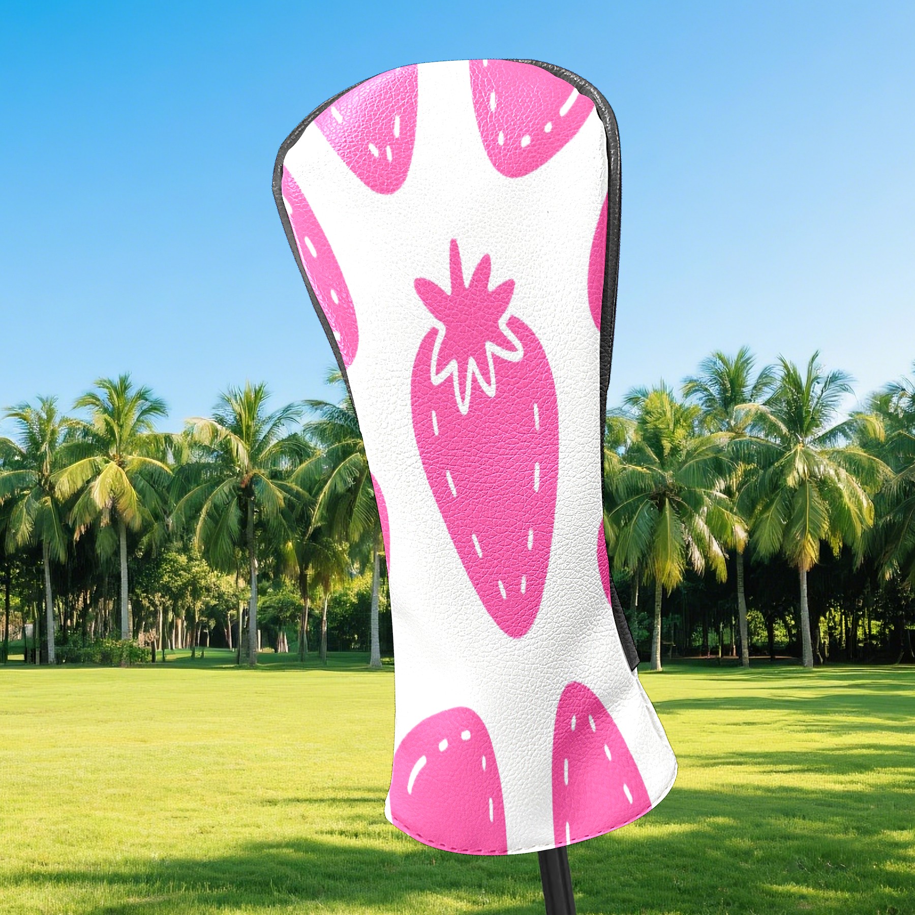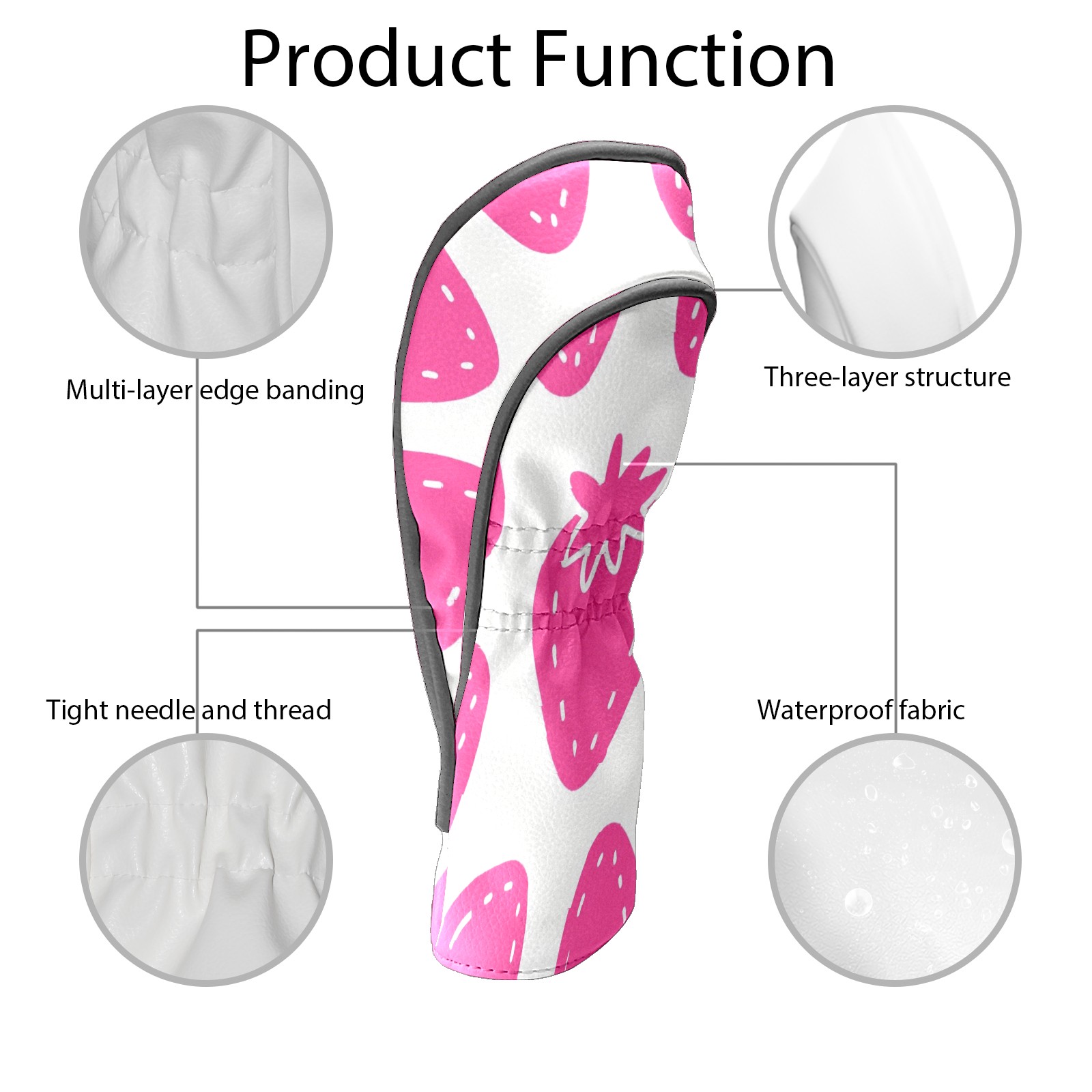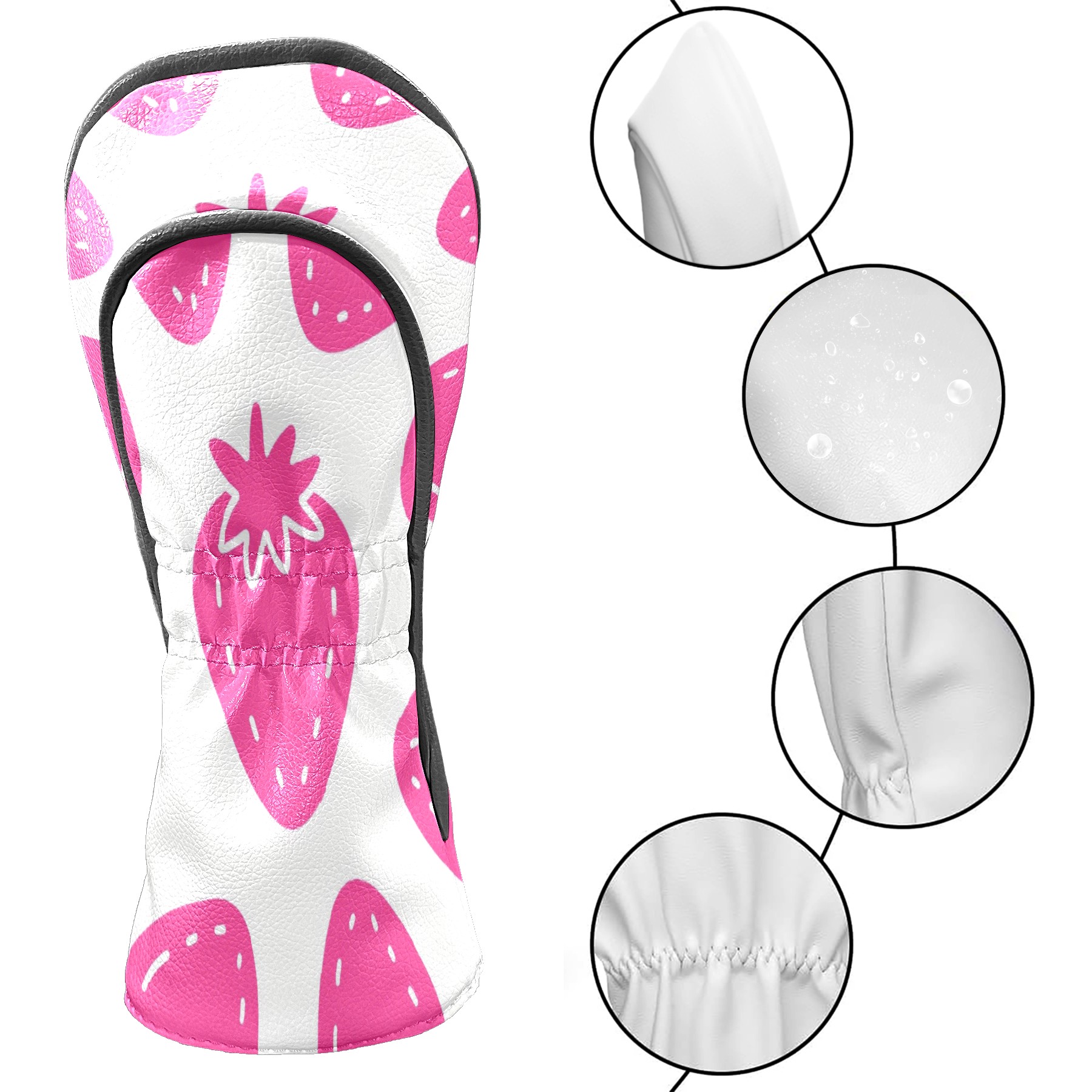 Golf Club Head Cover Waterproof Leather Golf Club Cover Driver Headcover for Women Men Strawberry